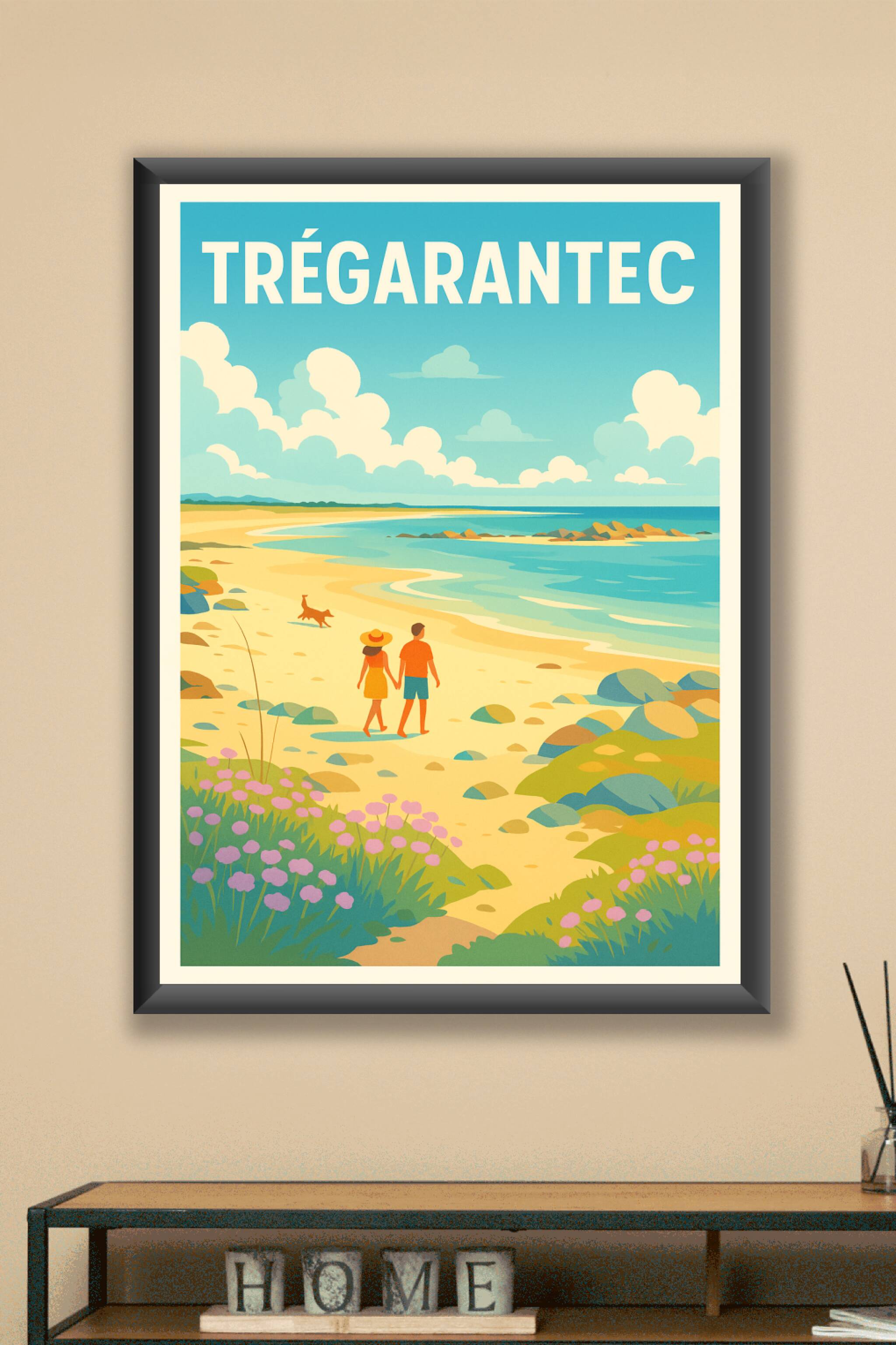 Offrez-vous un souffle d'air marin avec cette superbe affiche illustrée représentant une promenade paisible sur la plage de Trégarantec. Les couleu...