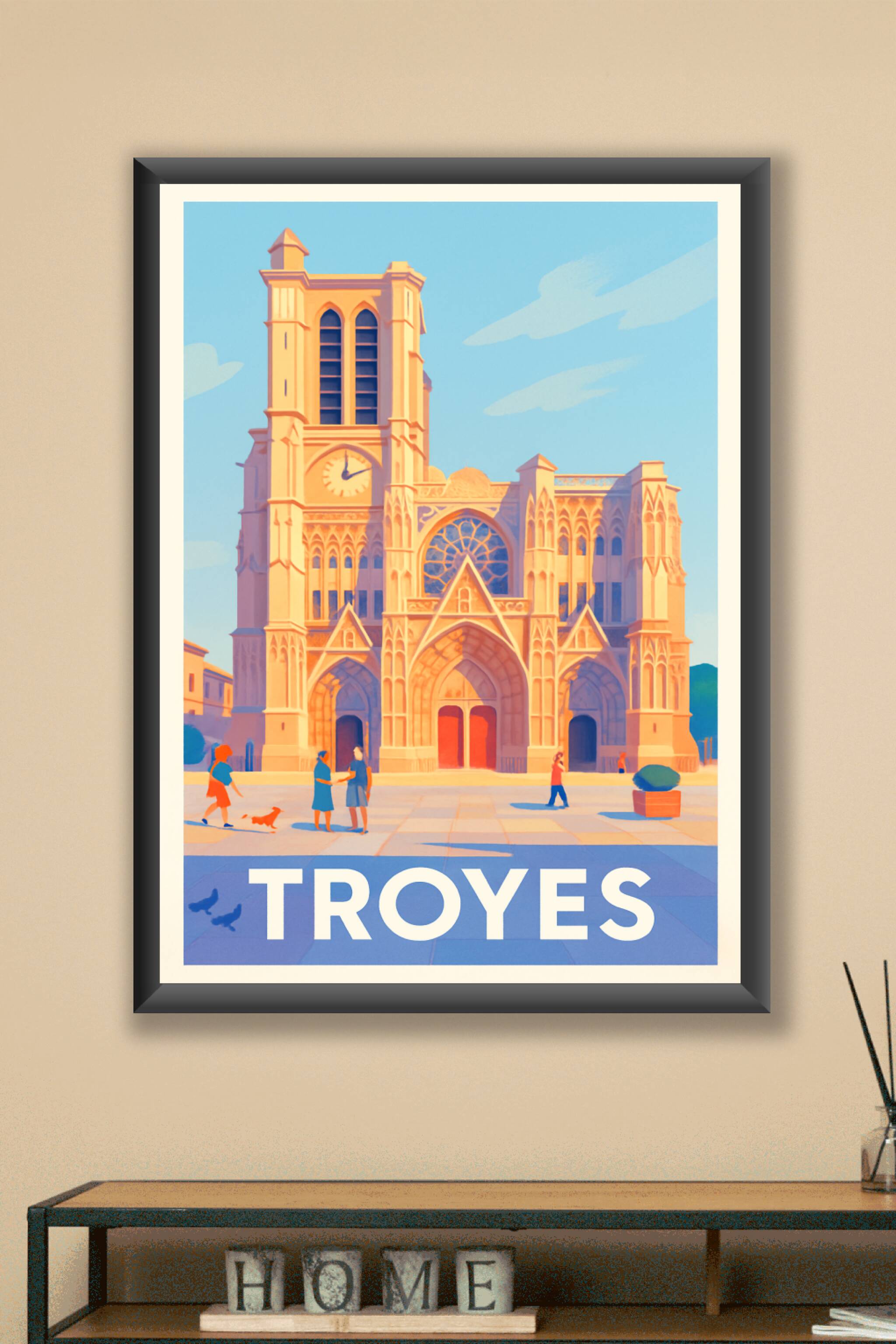 Découvrez la majesté de Troyes à travers cette affiche représentant l'emblématique cathédrale Saint-Pierre-et-Saint-Paul sous une lumière douce et ...
