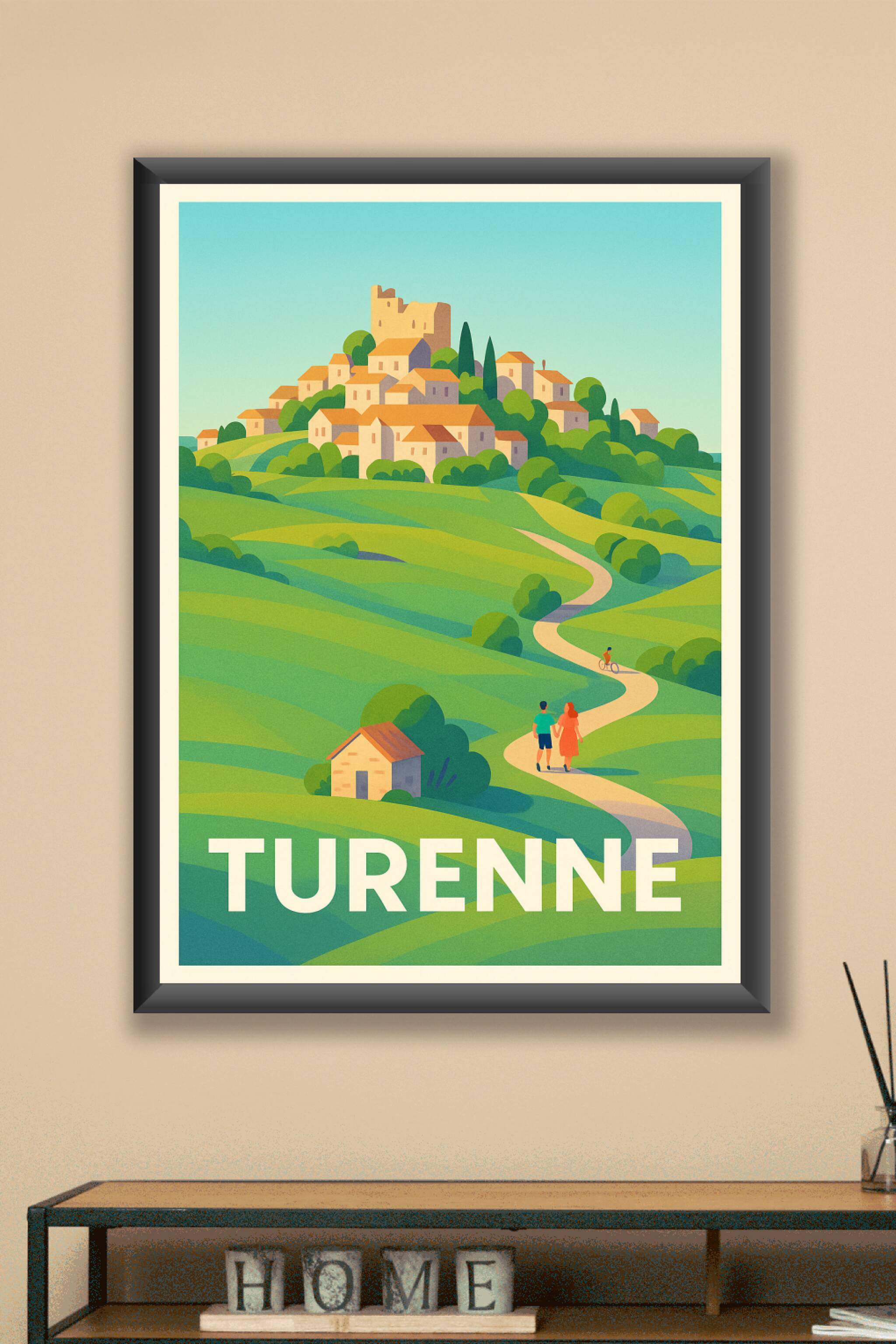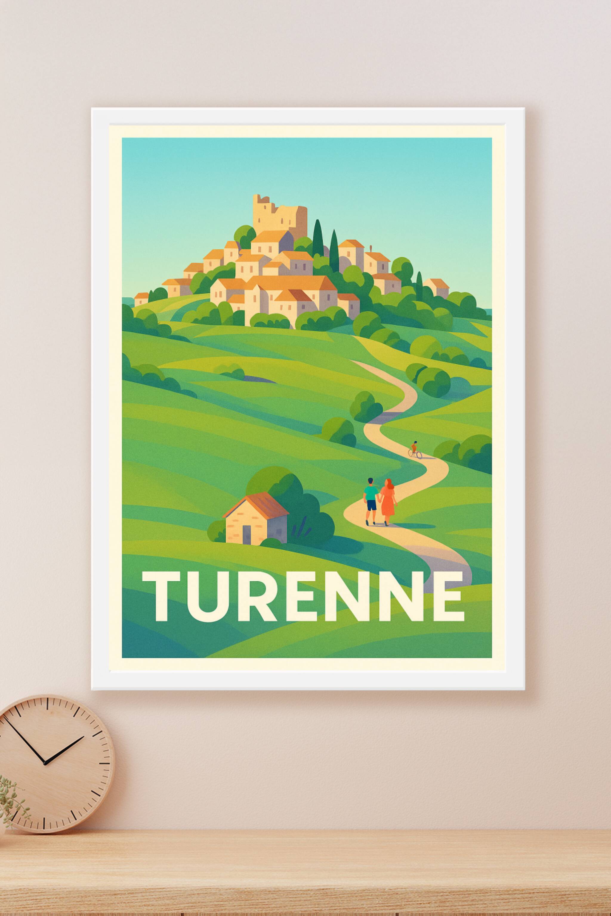 Découvrez l'élégance et le charme intemporel de Turenne à travers cette affiche illustrée qui met en lumière ses maisons de pierre et son paysage v...