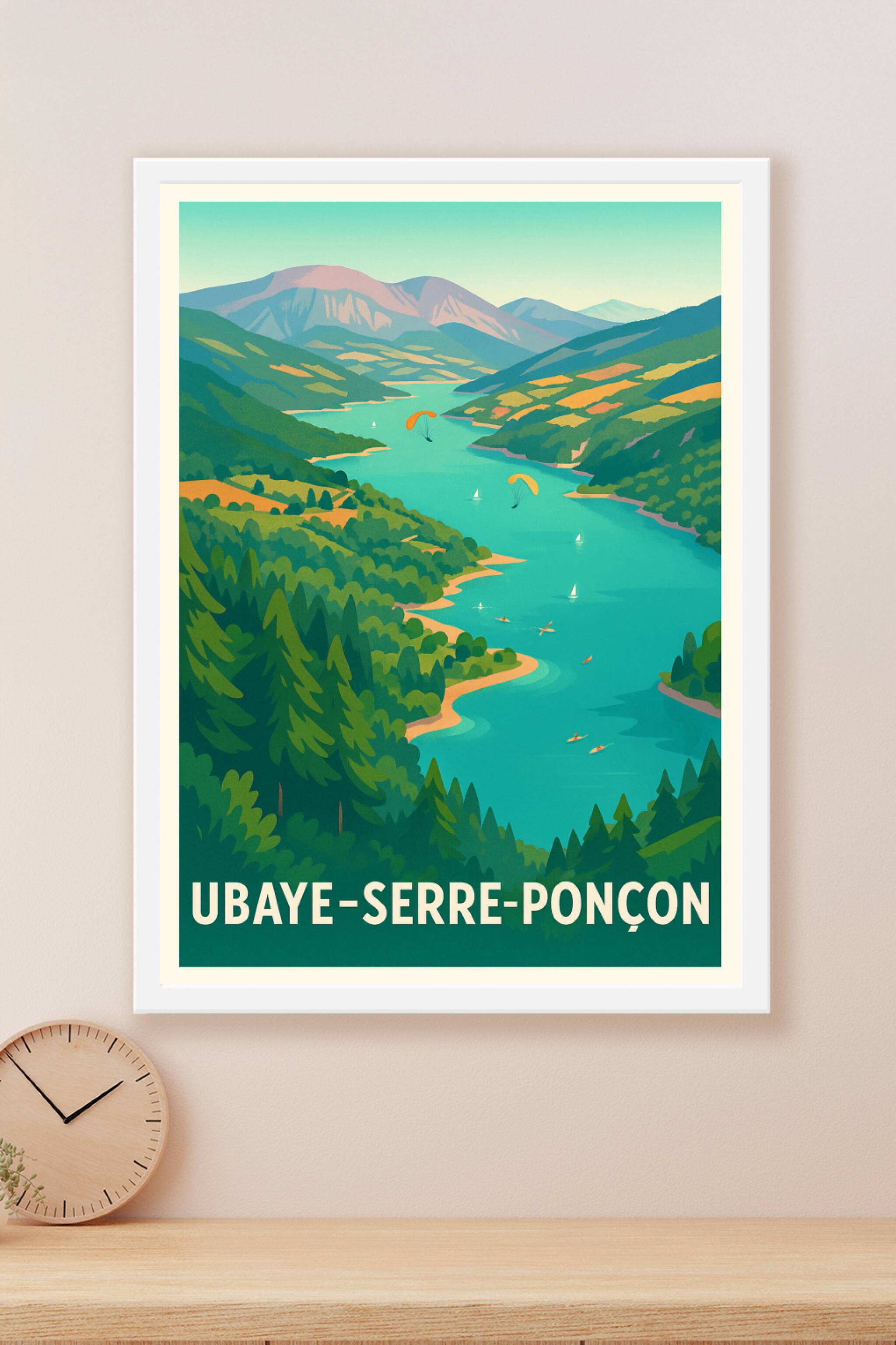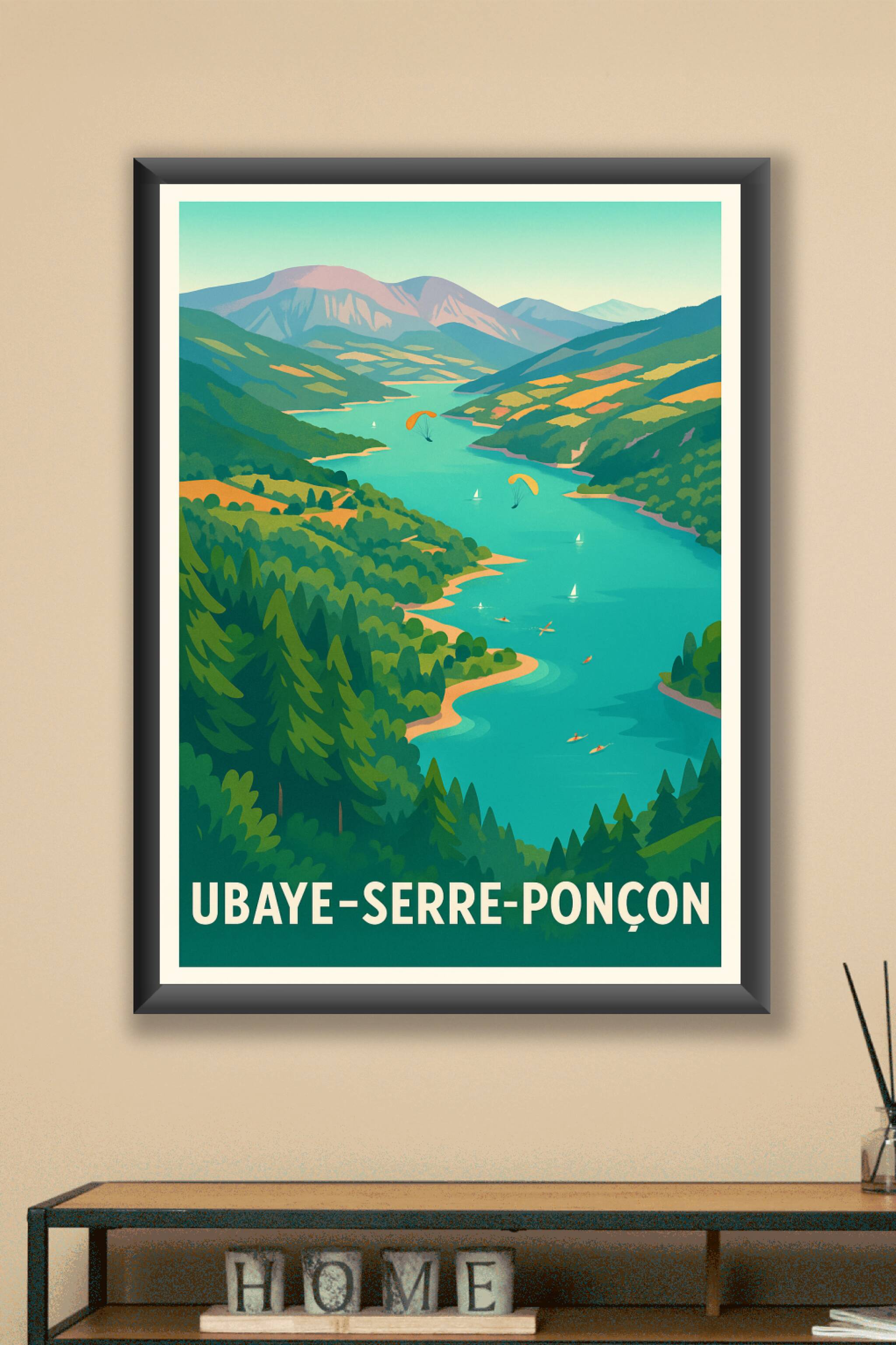 Découvrez la beauté spectaculaire du lac de Serre-Ponçon et de la vallée de l'Ubaye avec cette affiche au style vintage moderne. Ce poster reflète ...