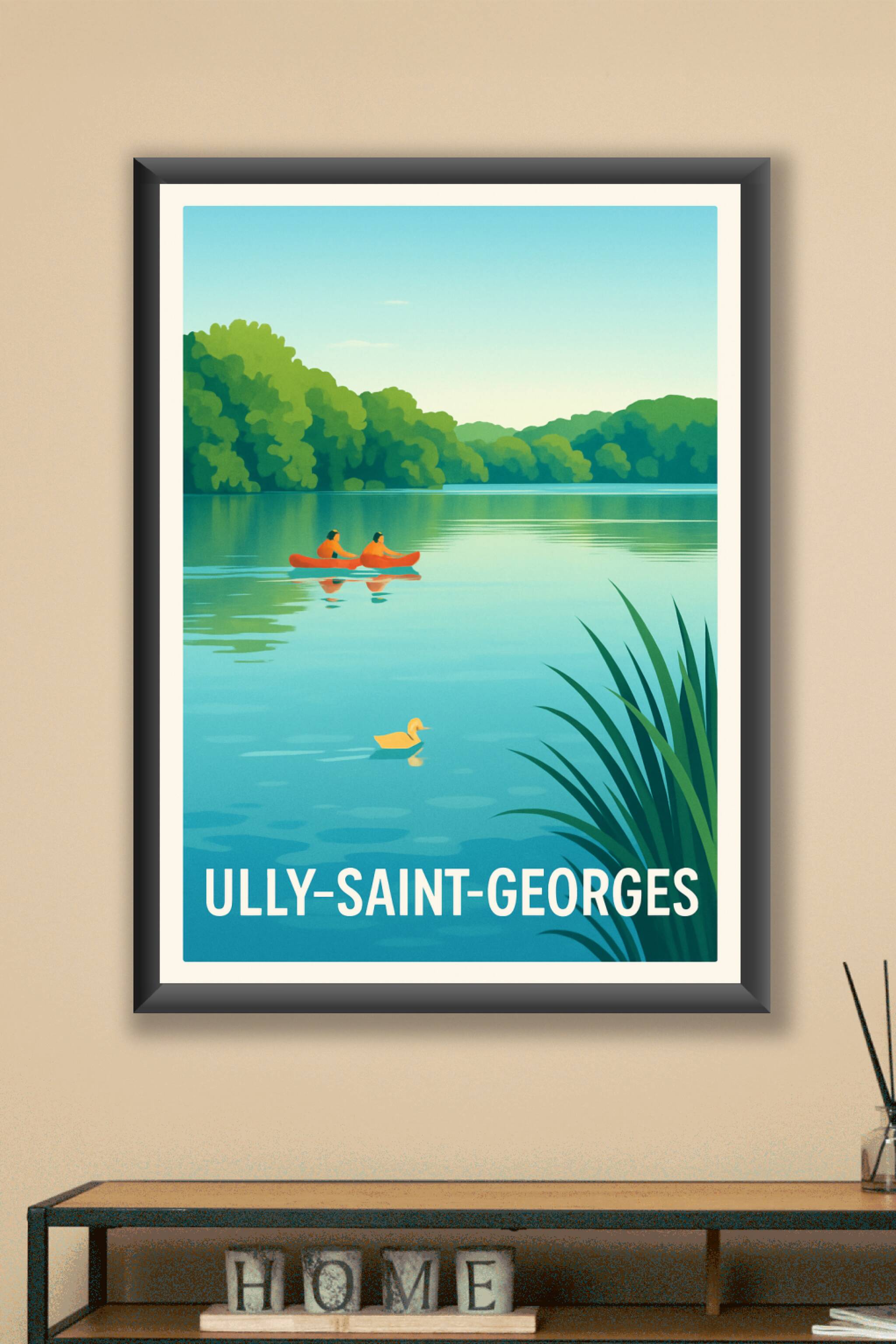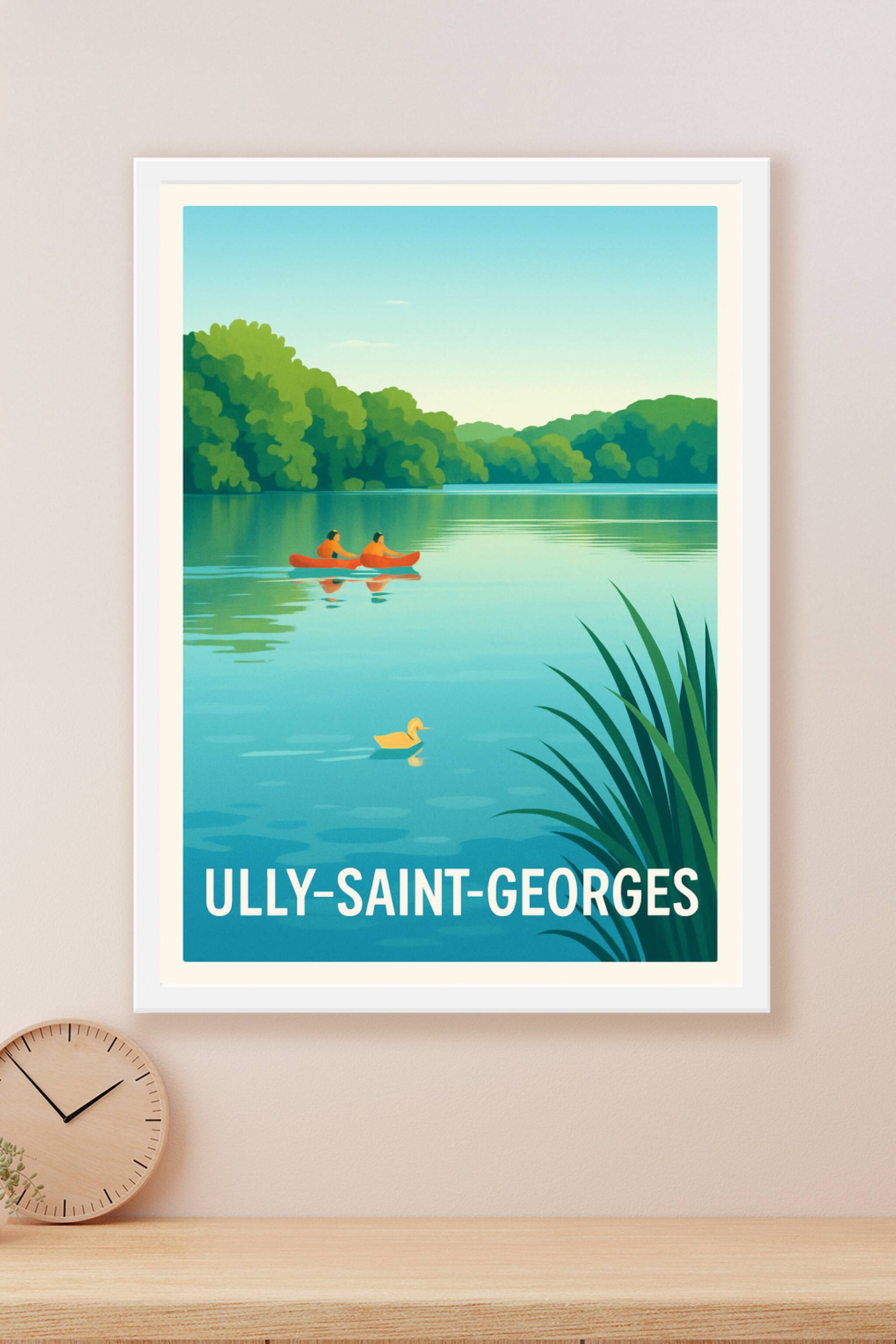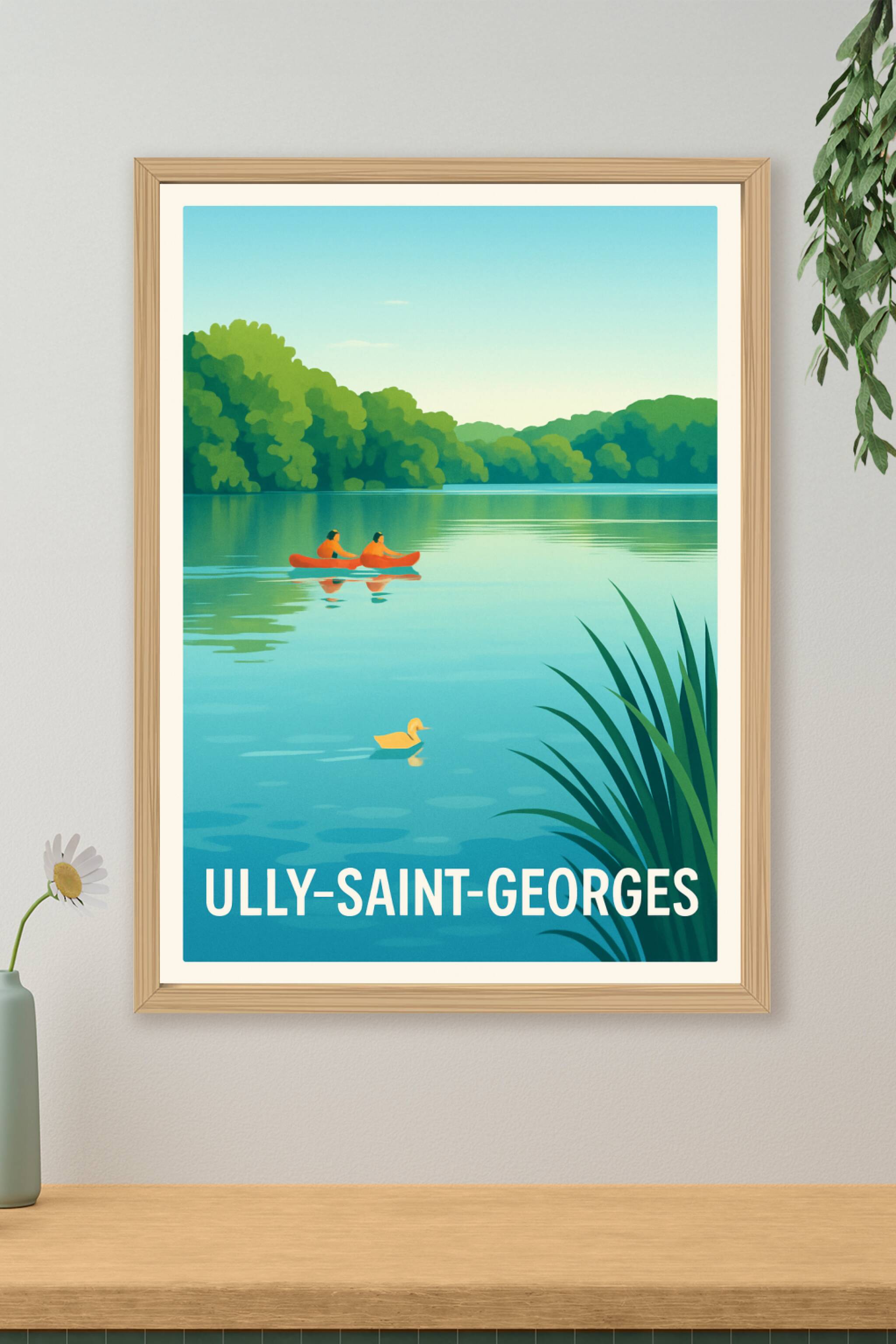 Découvrez la sérénité d'Ully-Saint-Georges à travers ce poster qui capture un moment paisible sur les eaux calmes, où deux kayakistes glissent entr...