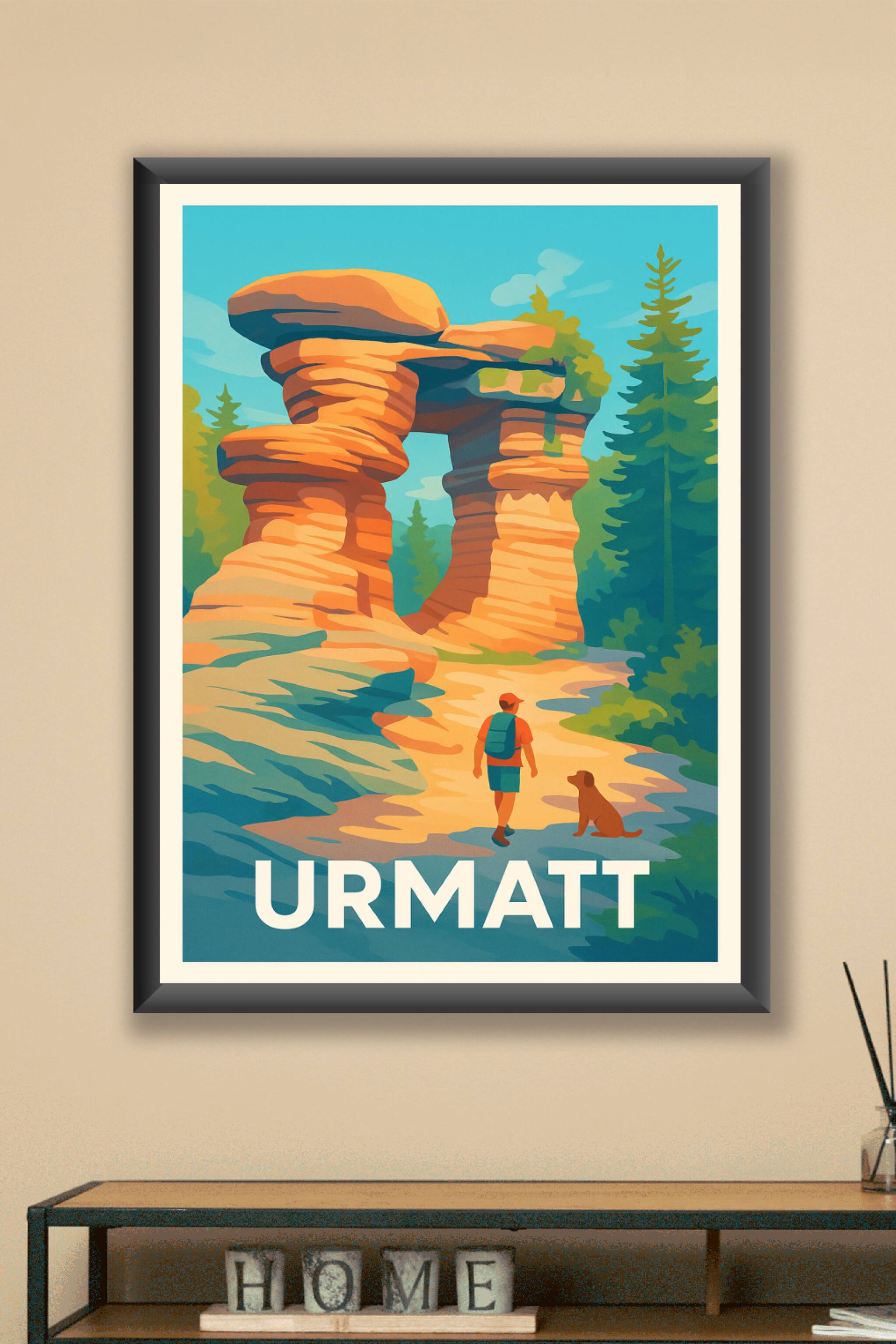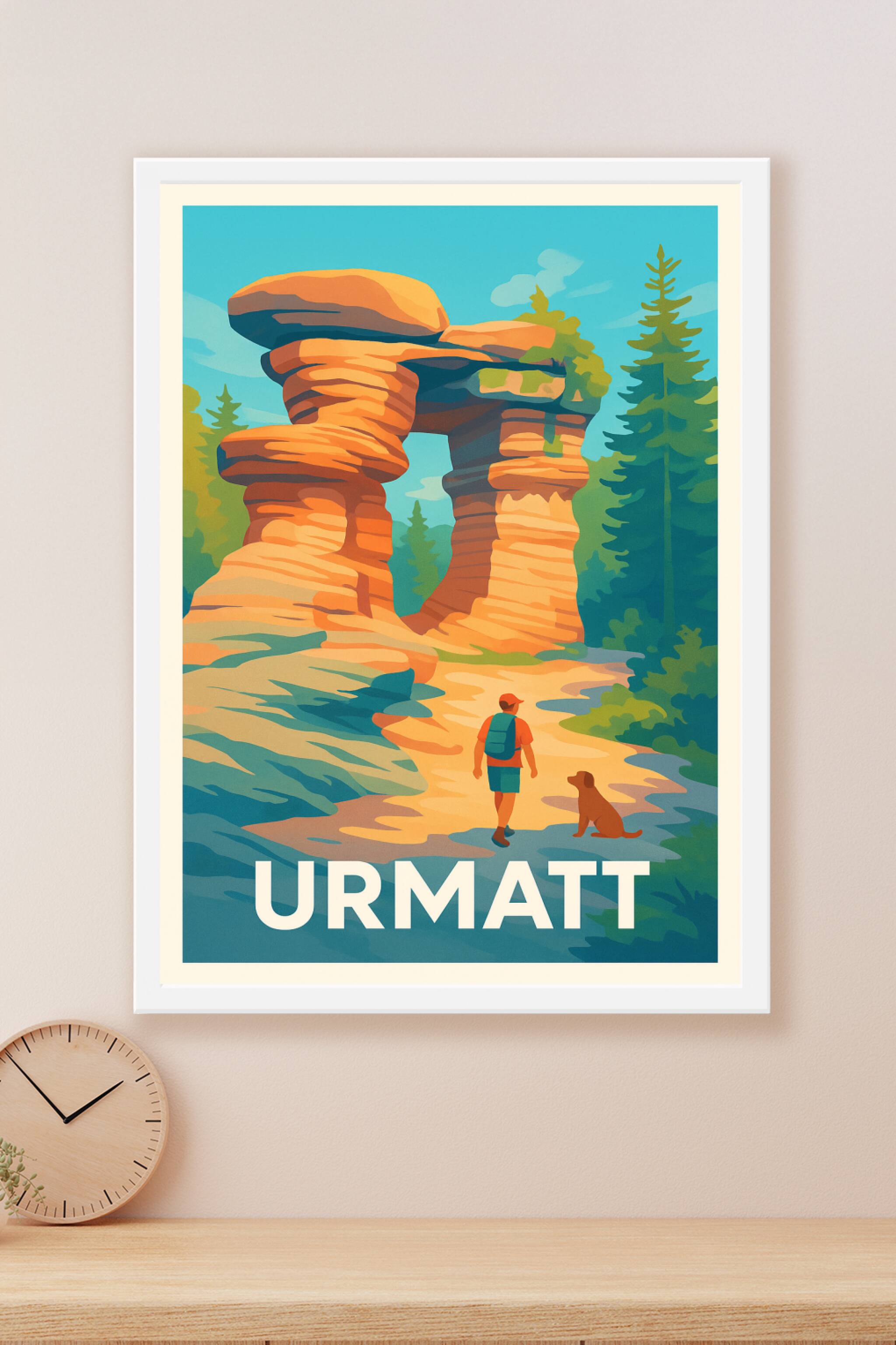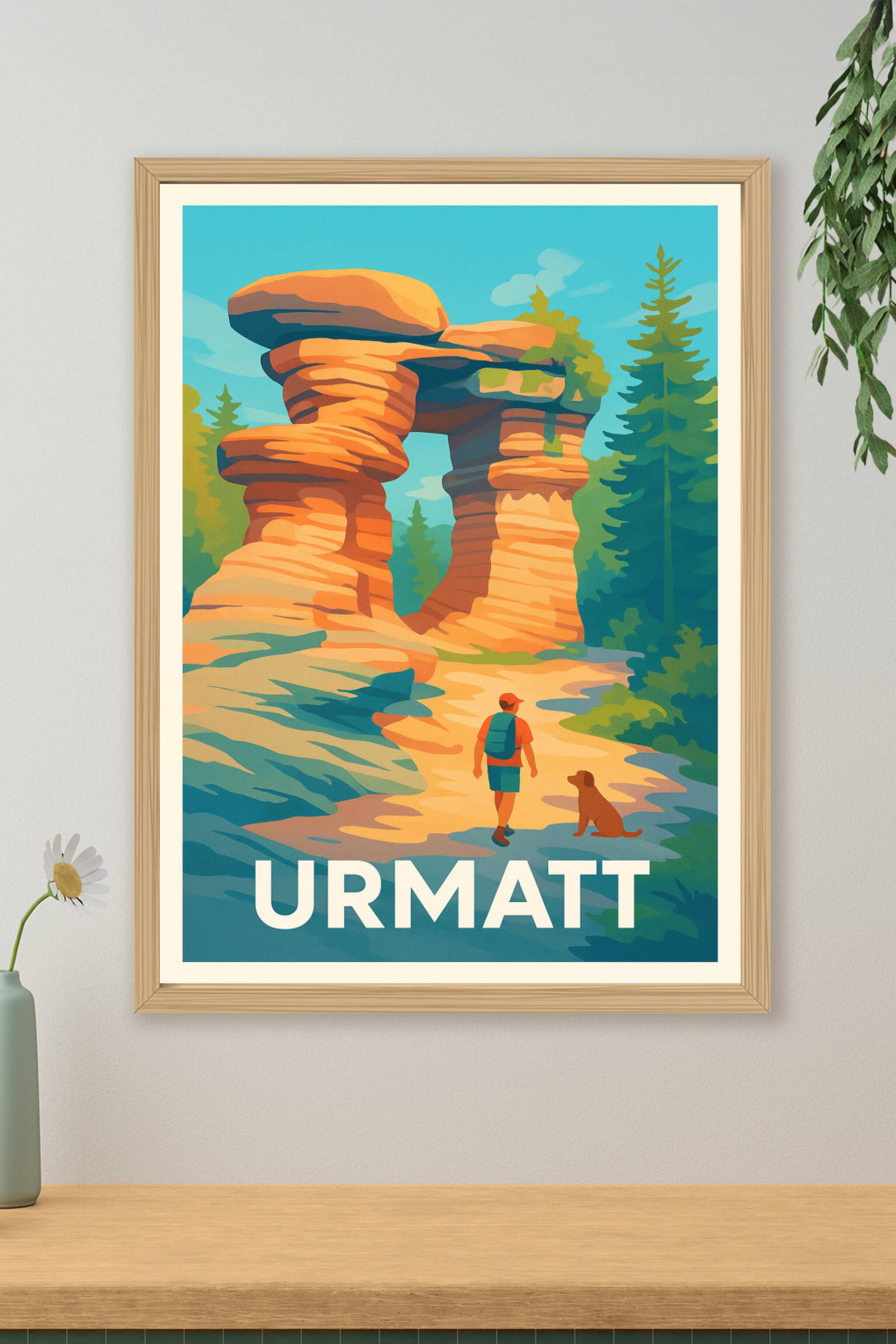 Découvrez l'impressionnante arche rocheuse d'Urmatt à travers ce poster vibrant aux couleurs chaleureuses et naturelles. Cette affiche illustre un ...