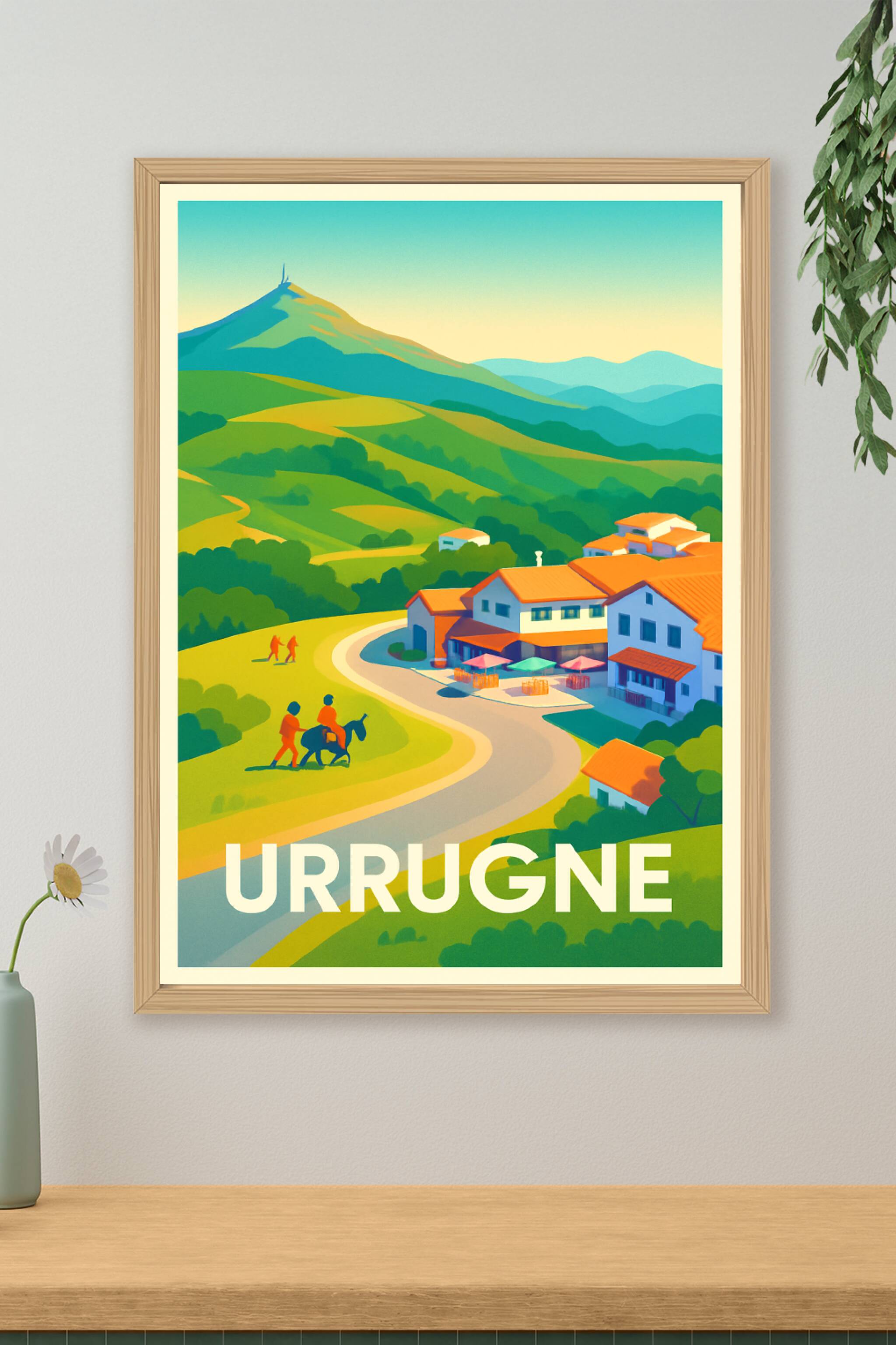 Découvrez la douceur et la sérénité d'Urrugne avec cette affiche lumineuse et colorée au style vintage. Cette représentation artistique met en valeur les collines verdoyantes, les maisons au toit orangé typique et l'ambiance chaleureuse de ce charmant village basque. Ce poster est imprimé en tirage "Fine Art" sur papier coton 305g, garantissant des couleurs éclatantes et une durée de vie exceptionnelle.Le poster est disponible en formats A1 à A4, avec ou sans cadre, pour s'adapter parfaitement à votre intérieur. Que ce soit pour embellir votre salon, bureau ou offrir un cadeau raffiné, cette affiche de qualité premium 100% fabriquée en France sublimera votre décoration intérieure.