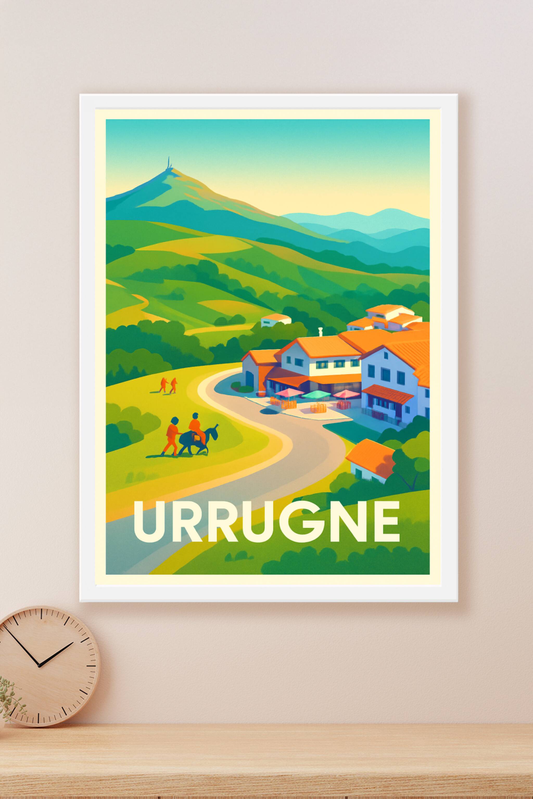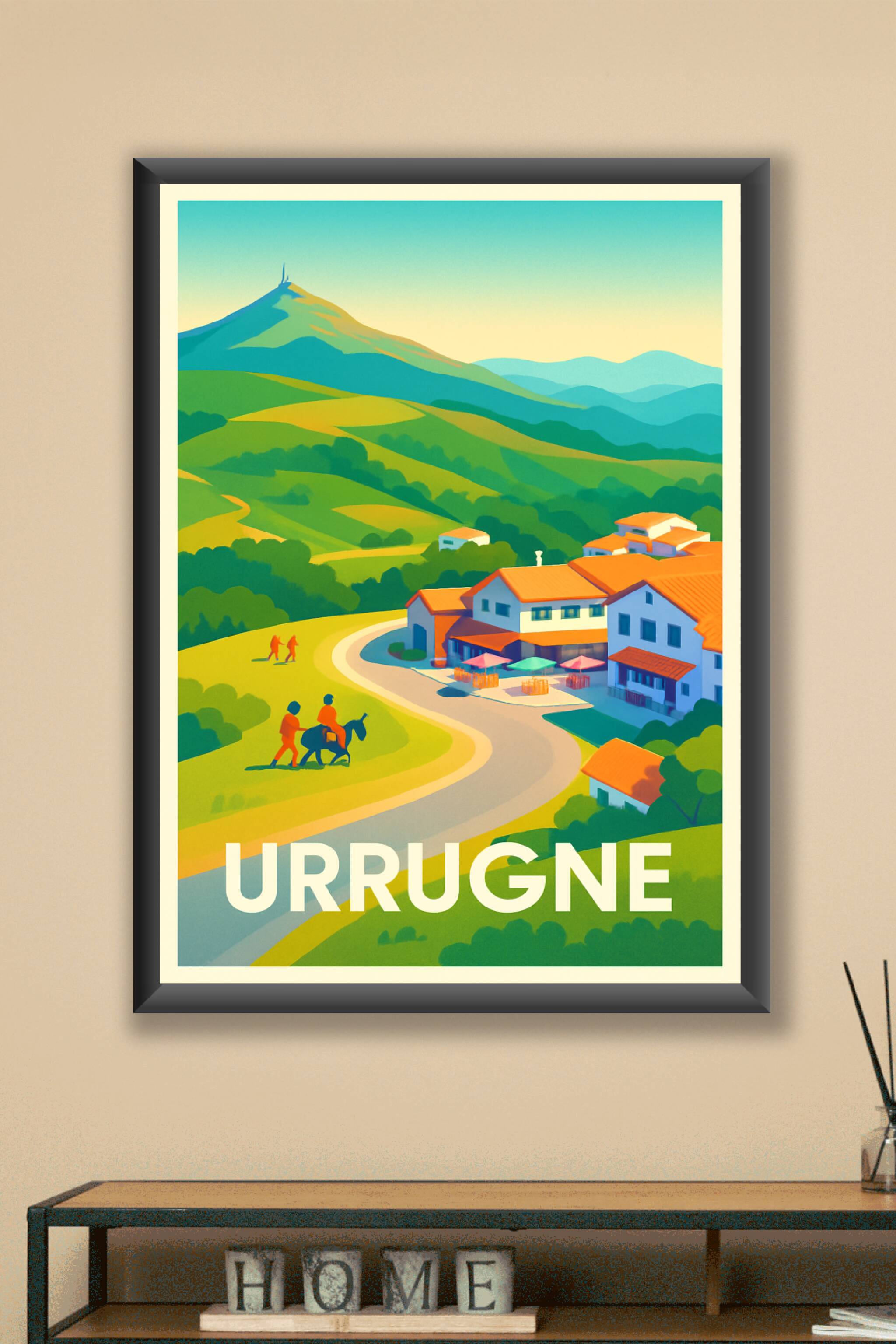 Découvrez la douceur et la sérénité d'Urrugne avec cette affiche lumineuse et colorée au style vintage. Cette représentation artistique met en vale...