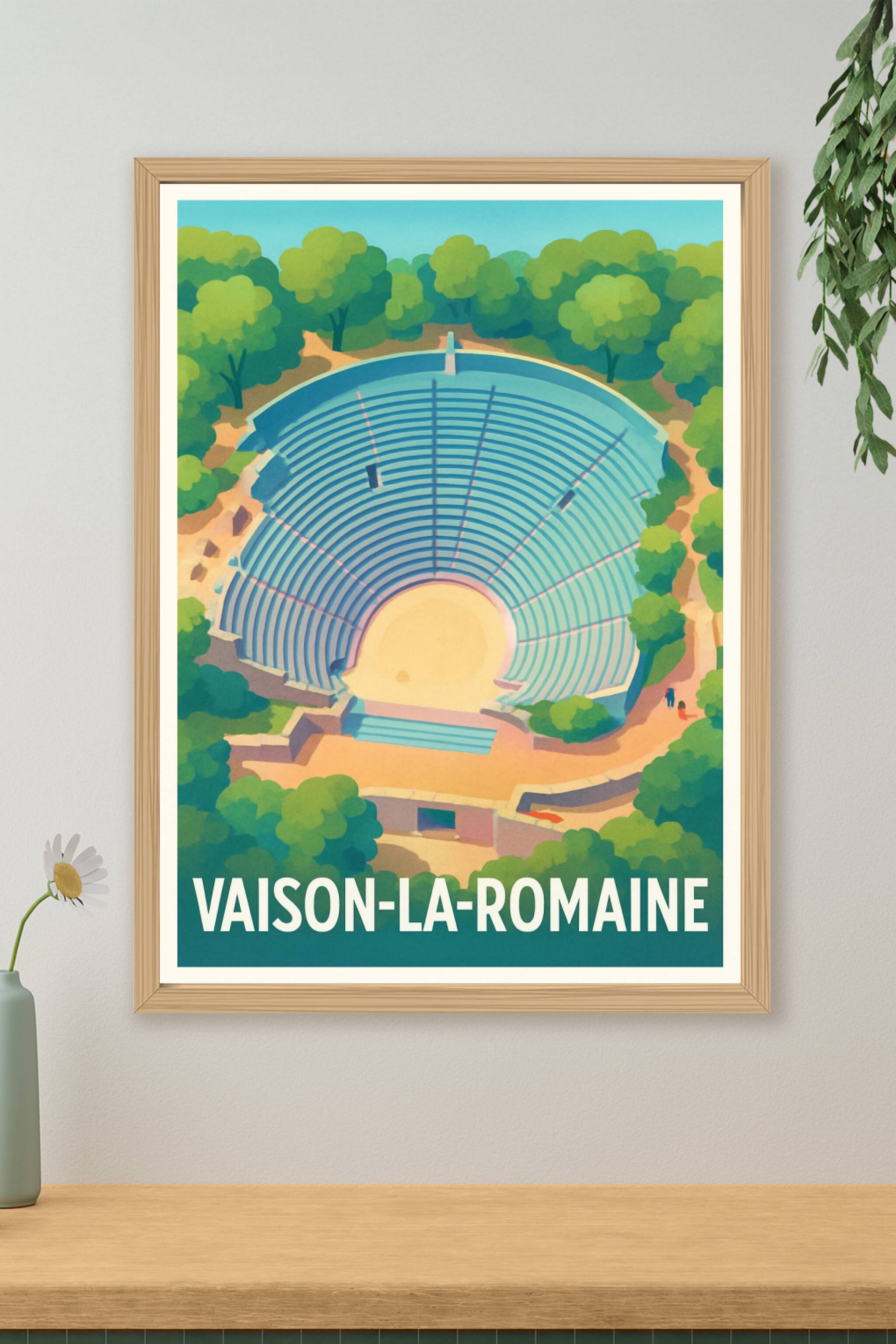 Découvrez la beauté historique et naturelle de Vaison-la-Romaine à travers cette affiche représentant son célèbre amphithéâtre romain. Ce poster vi...