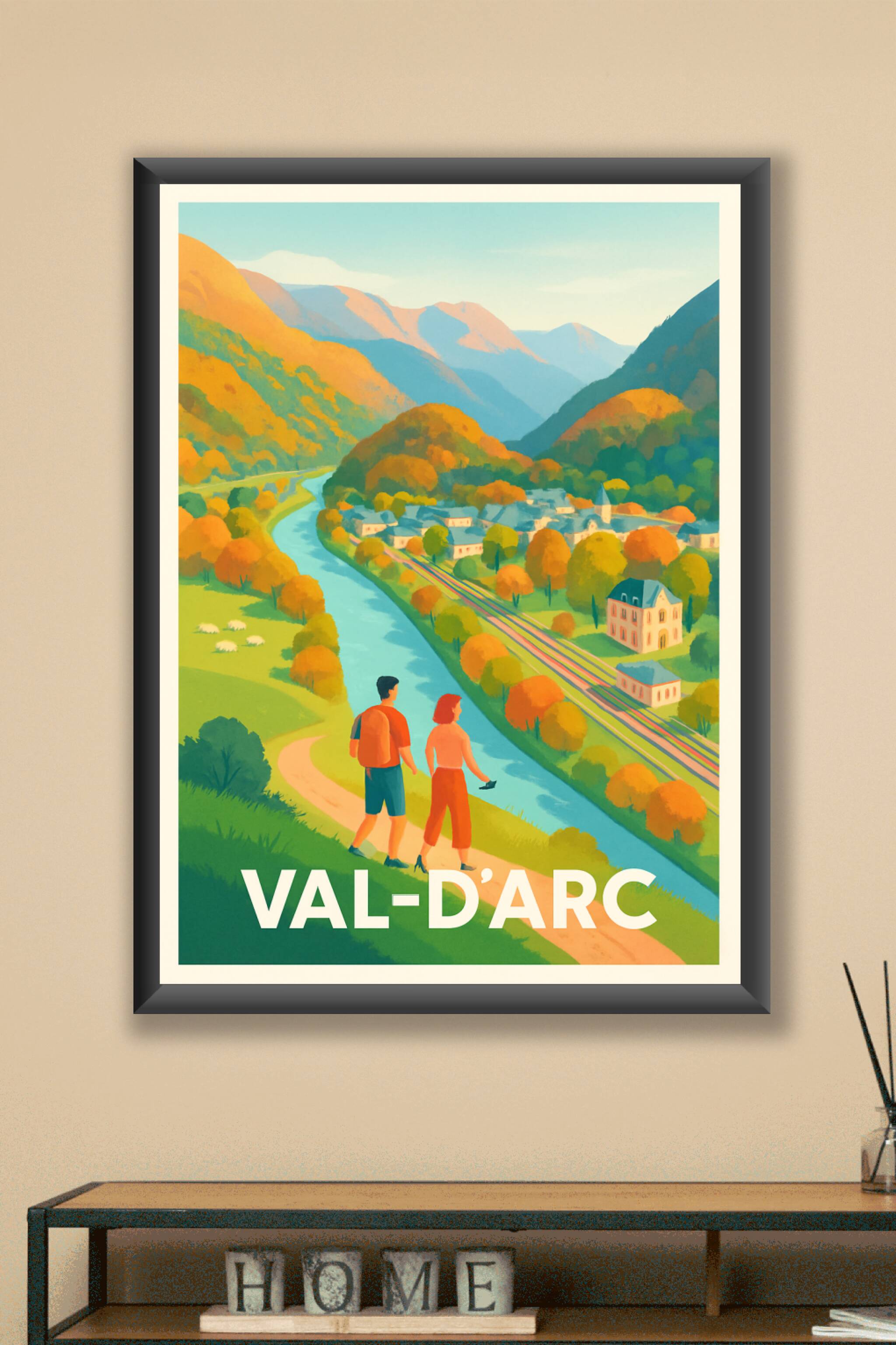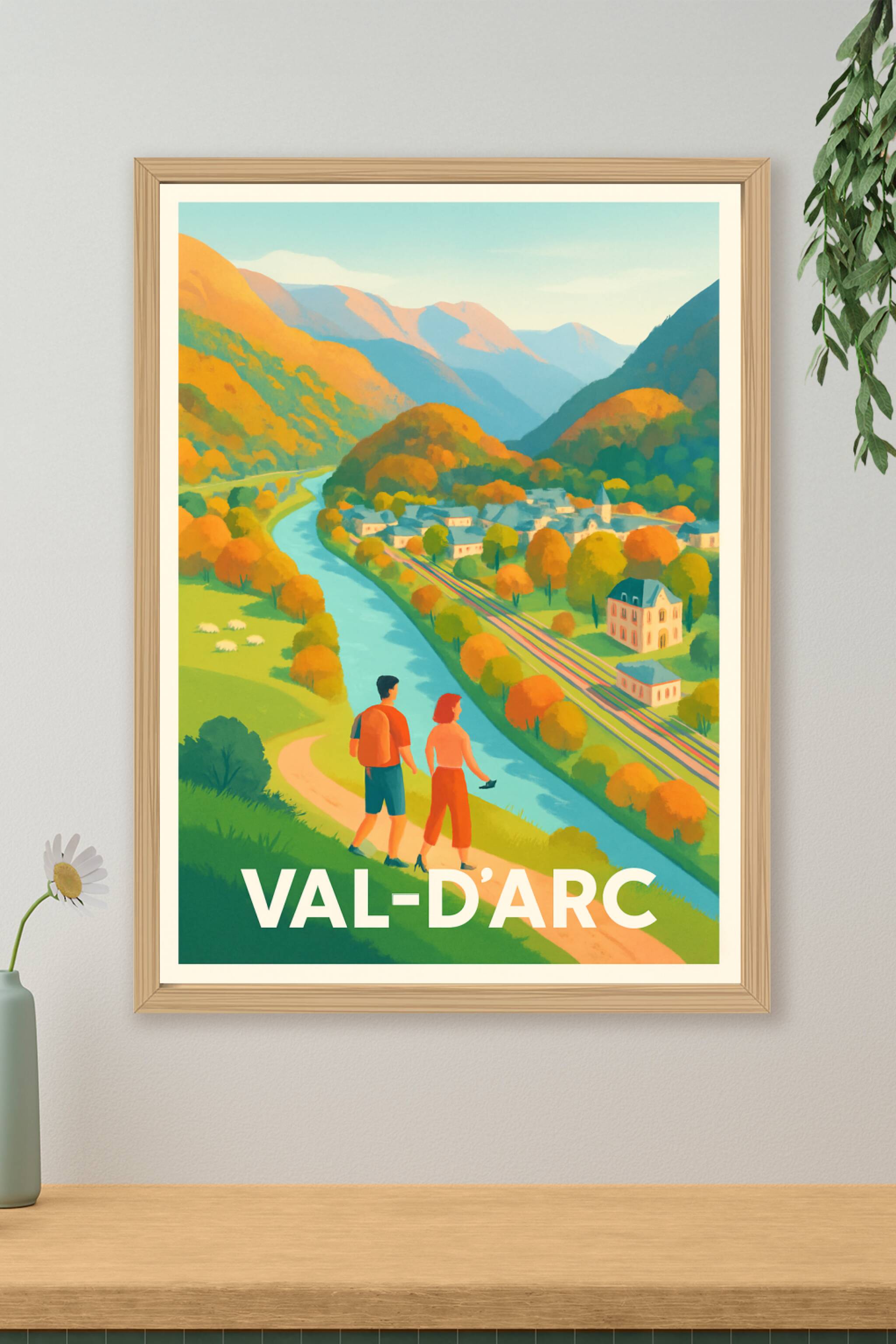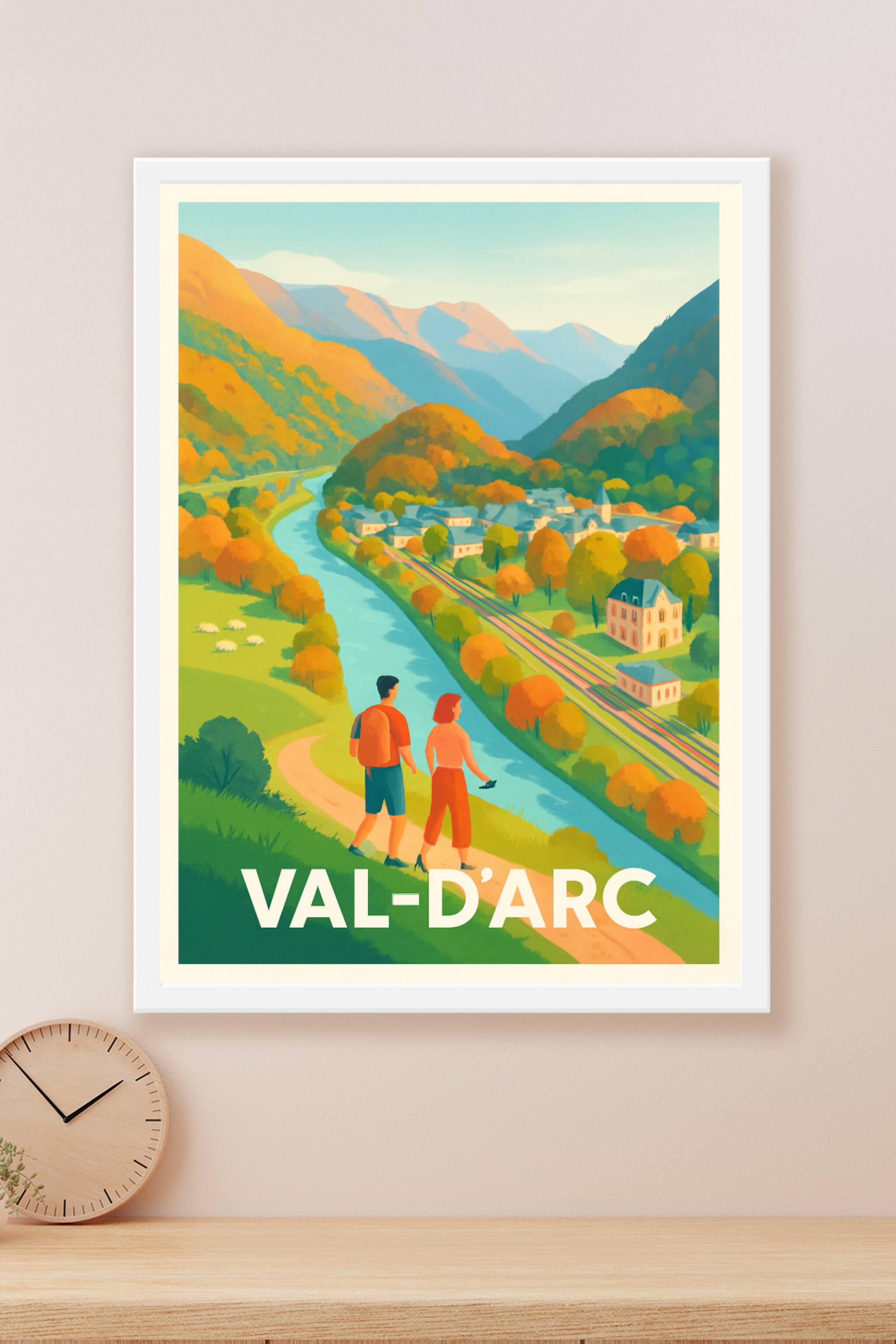 Découvrez le charme authentique du Val-d'Arc à travers cette affiche mêlant nature et village pittoresque niché dans une vallée montagneuse. Ce pos...