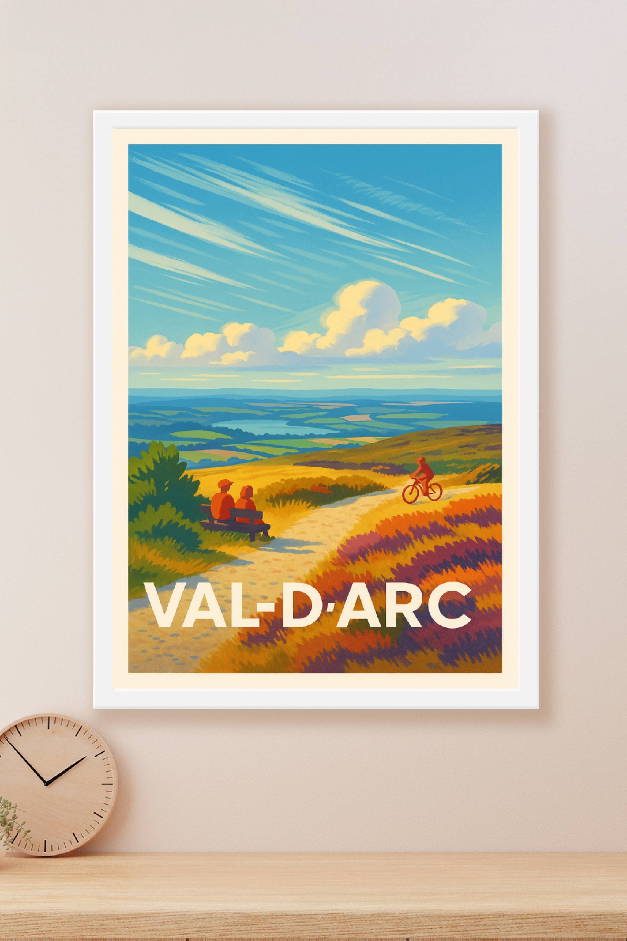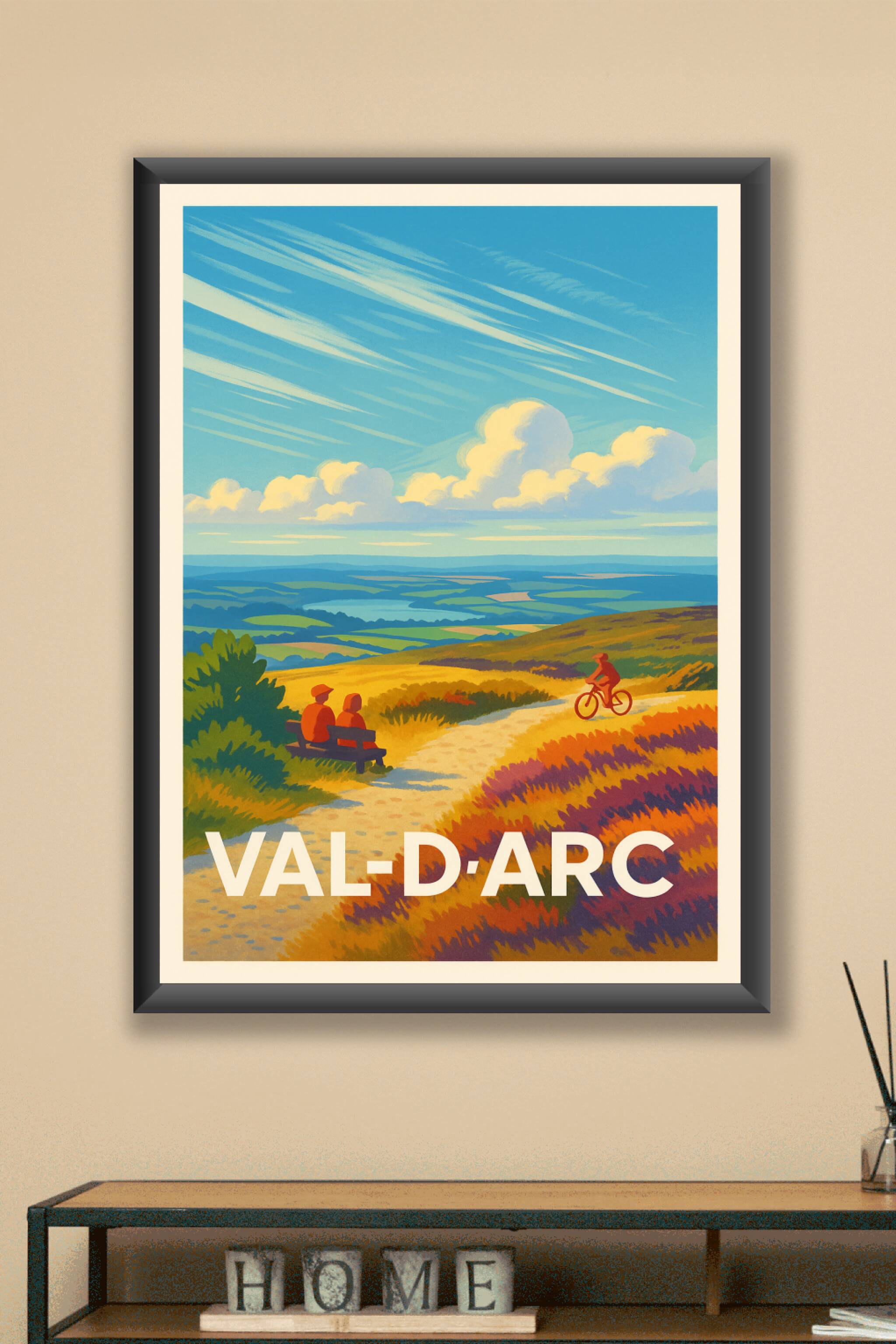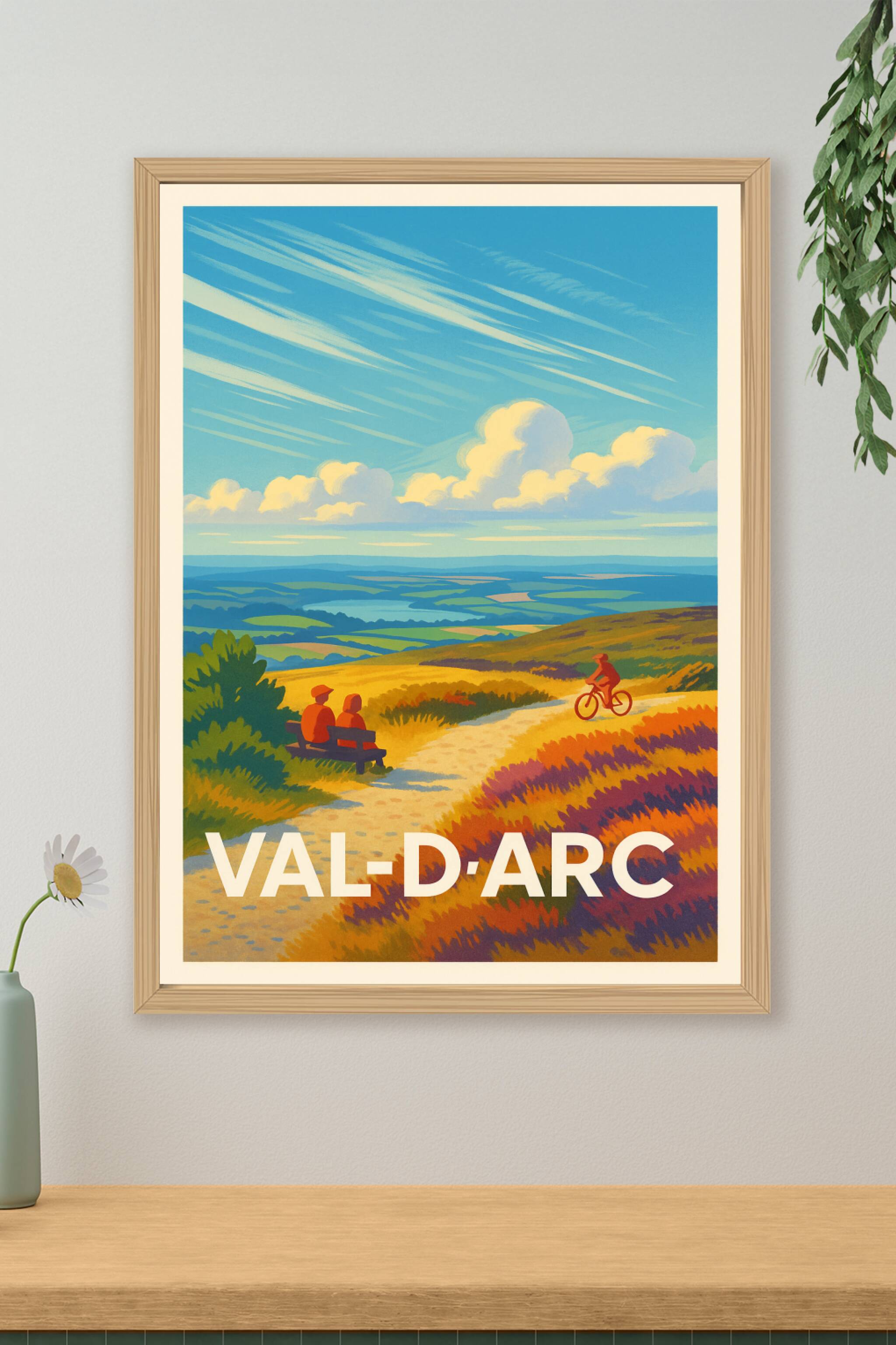 Découvrez la beauté naturelle du Val-d'Arc à travers cette affiche au style vintage qui capture un paysage ensoleillé et une atmosphère paisible. L...