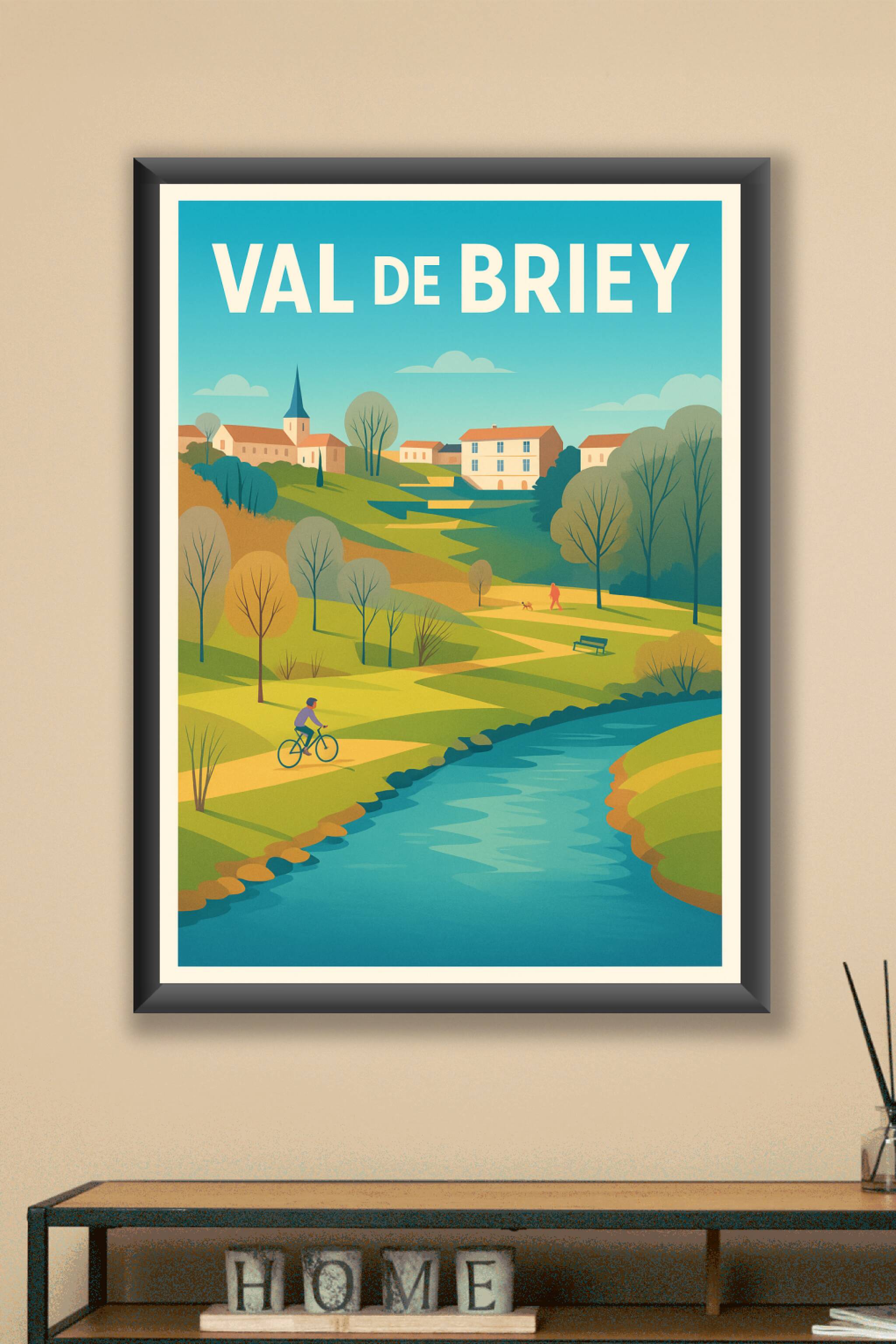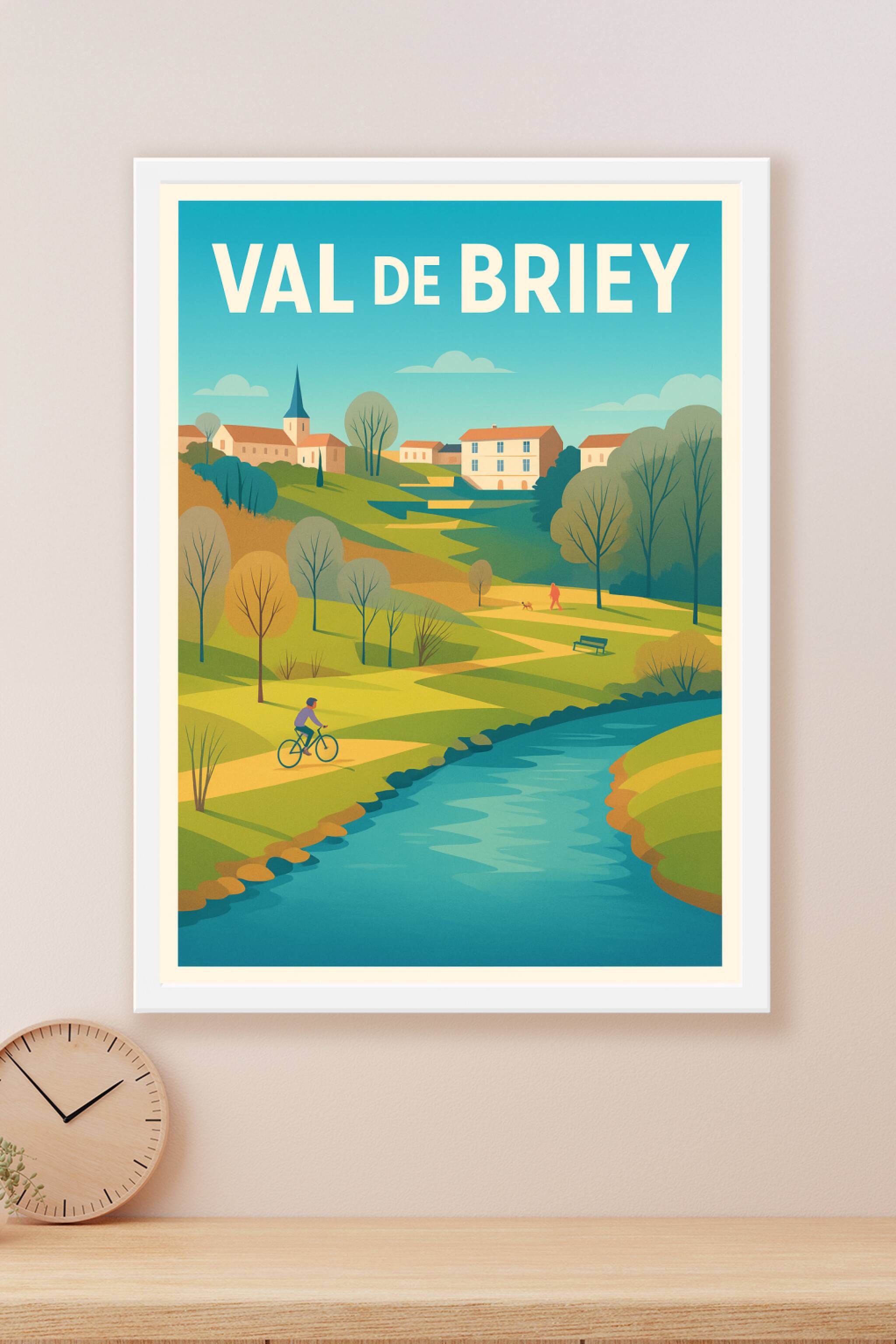 Découvrez la douceur de vivre du Val de Briey à travers cette affiche illustrée aux couleurs apaisantes et au style vintage. Cette scène champêtre ...