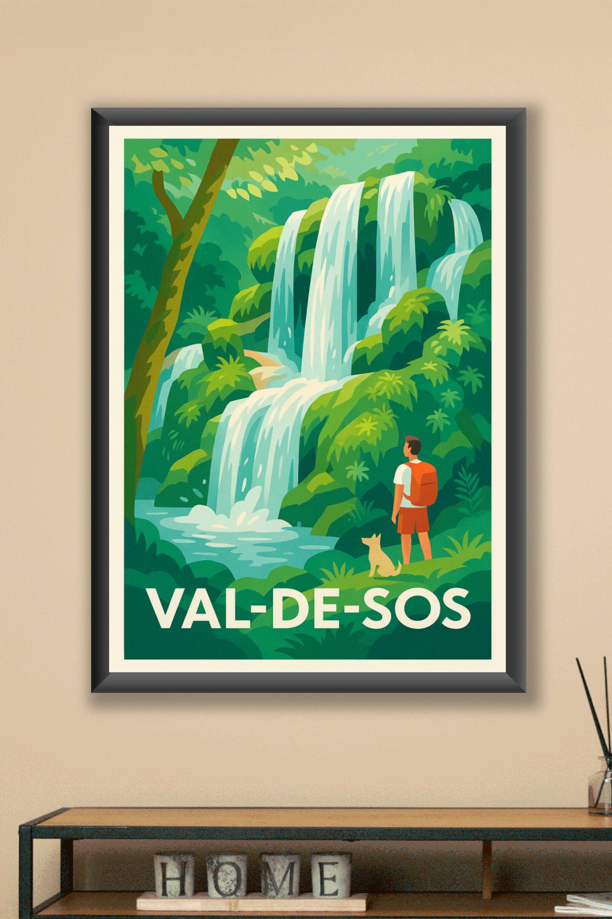 Découvrez la splendeur naturelle du Val-de-Sos avec cette affiche inspirante mettant en scène une cascade majestueuse au milieu d'une végétation lu...