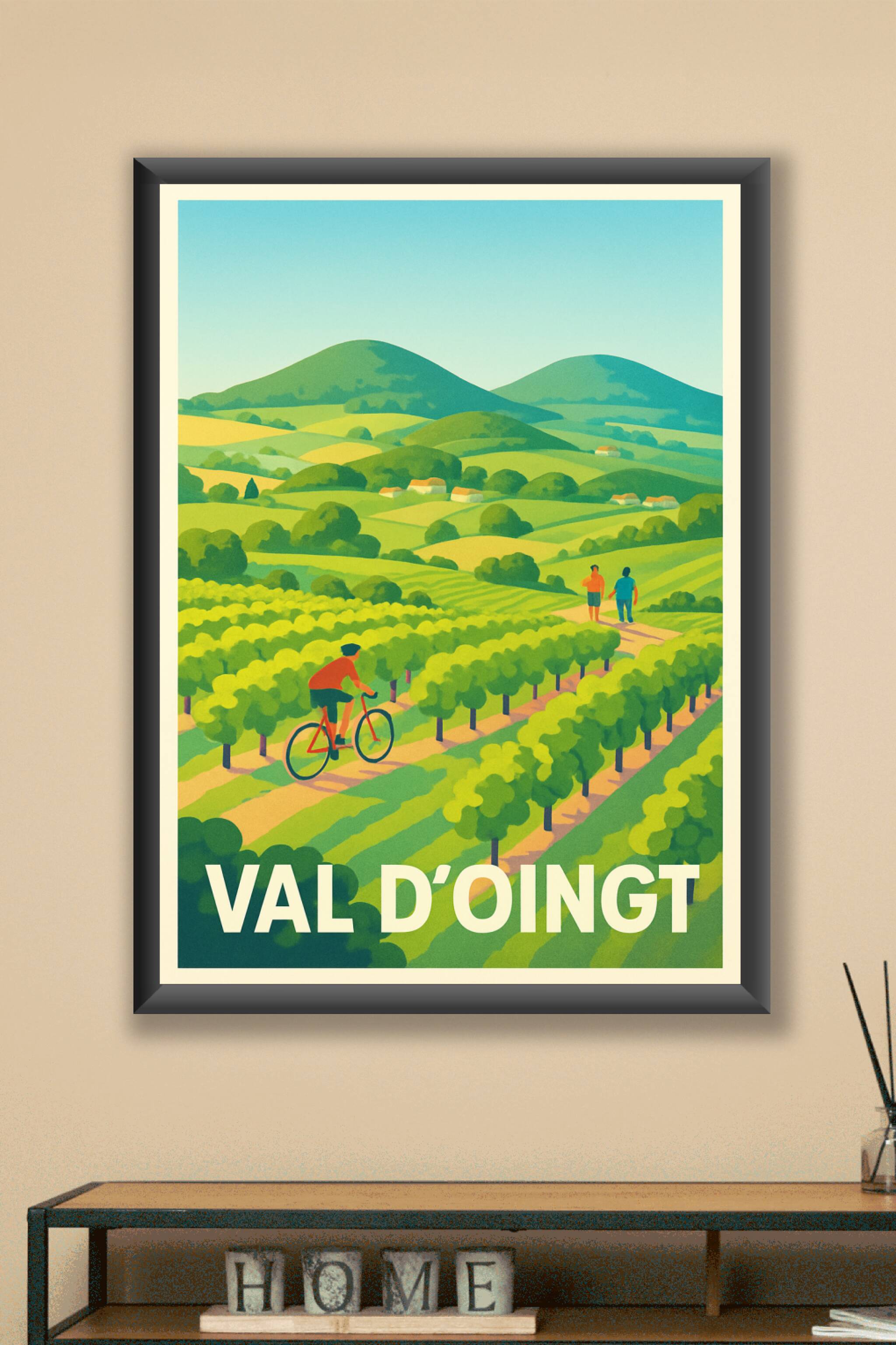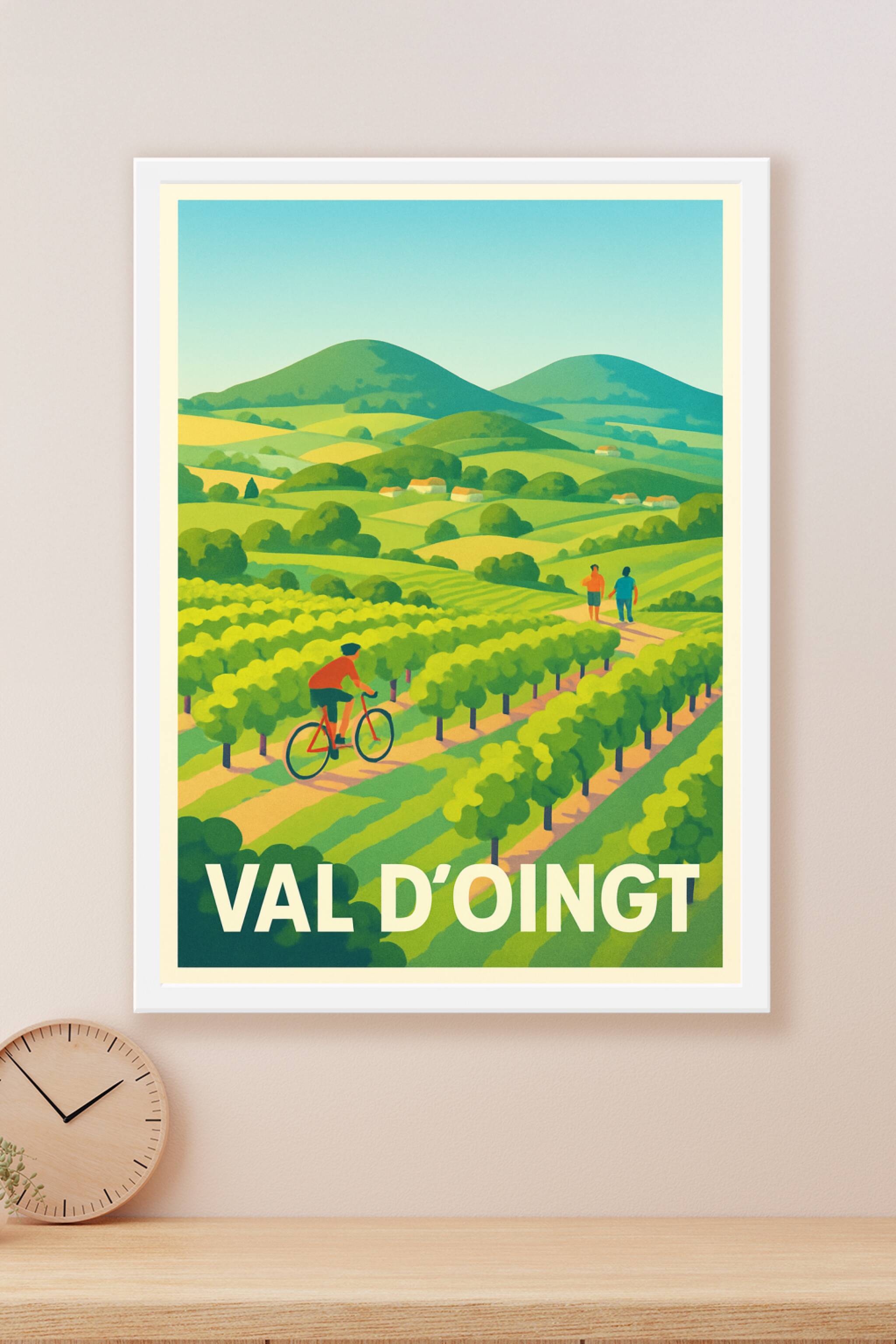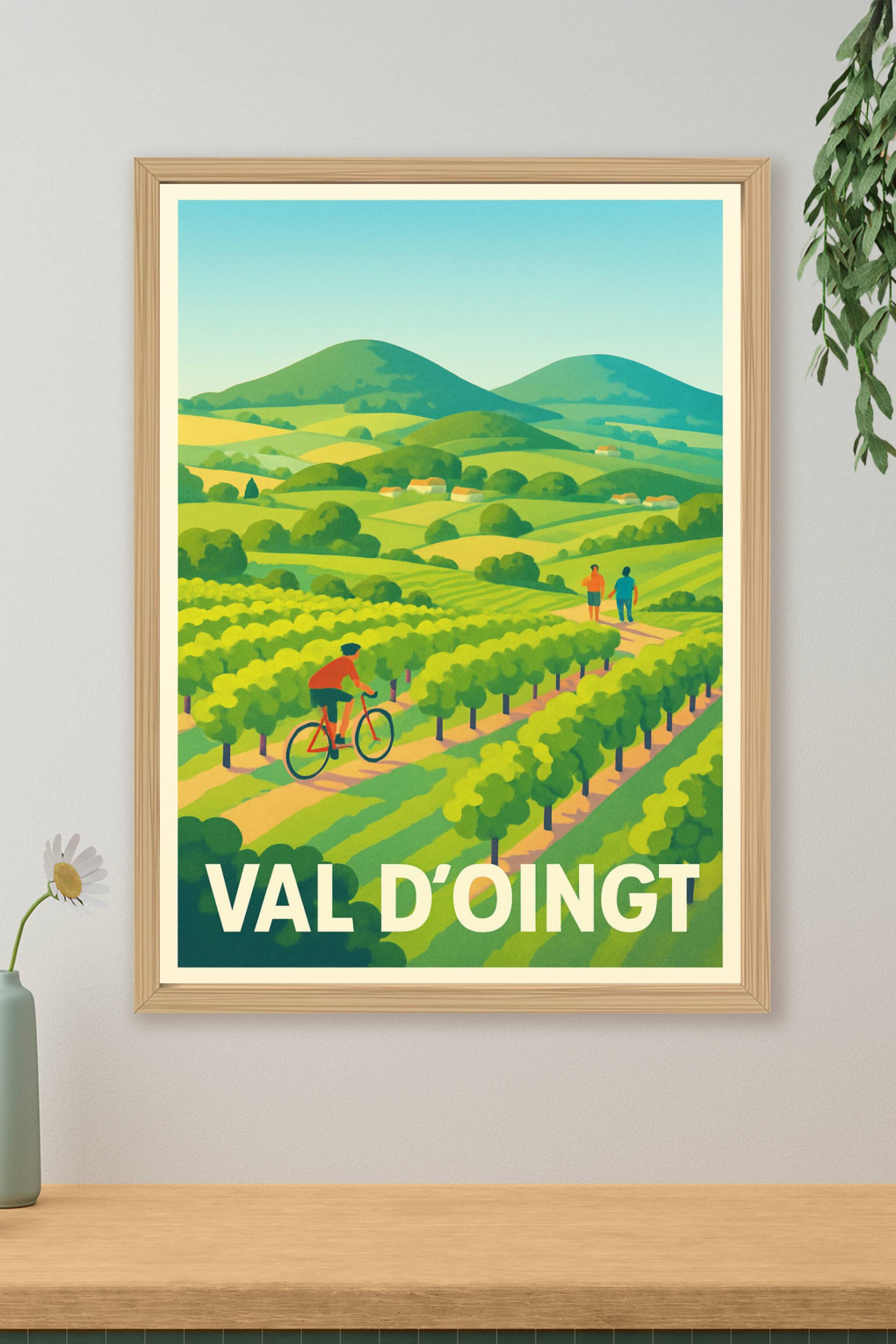 Découvrez la beauté paisible du Val d'Oingt avec cette affiche illustrée mettant en scène ses vignobles verdoyants et ses collines douces sous un ciel bleu éclatant. Ce poster capture l'essence d'une balade à vélo et à pied, idéale pour les amoureux de la nature et les passionnés de paysages ruraux.Cette affiche est imprimée en tirage "Fine Art" sur papier 305g coton assurant une qualité d'impression exceptionnelle et une résistance durable. Disponible en formats A1 à A4, avec ou sans cadre, elle s'adapte parfaitement à votre décoration intérieure ou à une idée cadeau originale. Profitez d'une fabrication 100% française pour sublimer votre mur avec une œuvre d'art élégante et authentique.