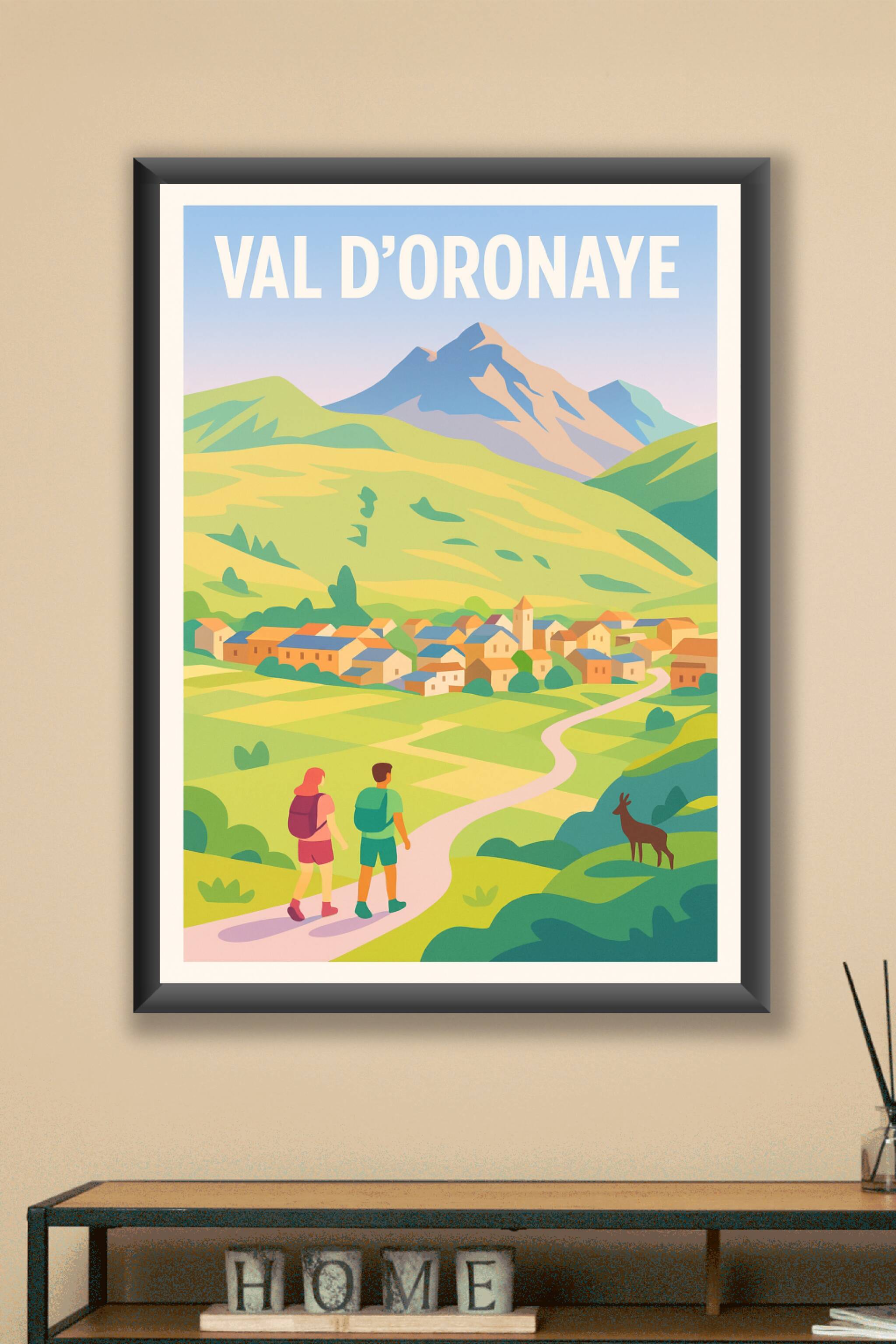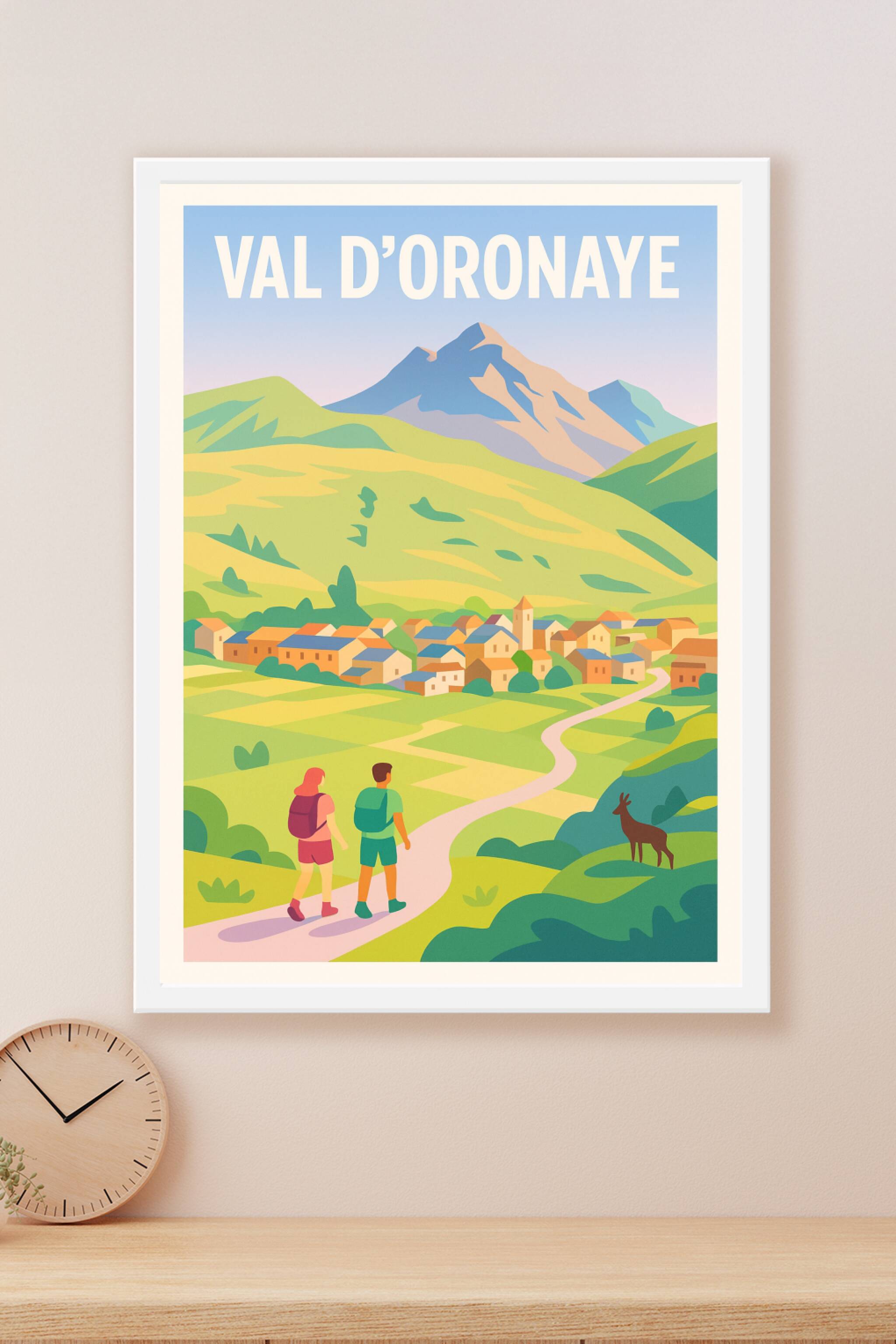 Découvrez le charme naturel du Val d'Oronaye avec ce poster illustré qui met en lumière ses paysages montagneux paisibles et ses sentiers enchanteu...