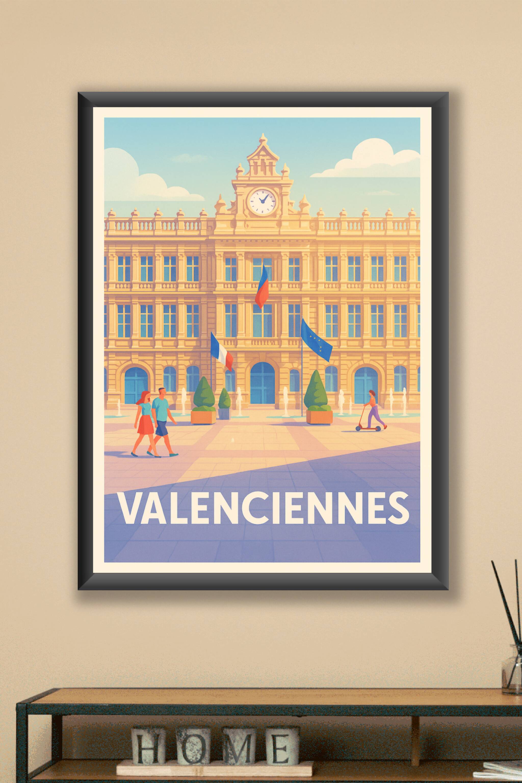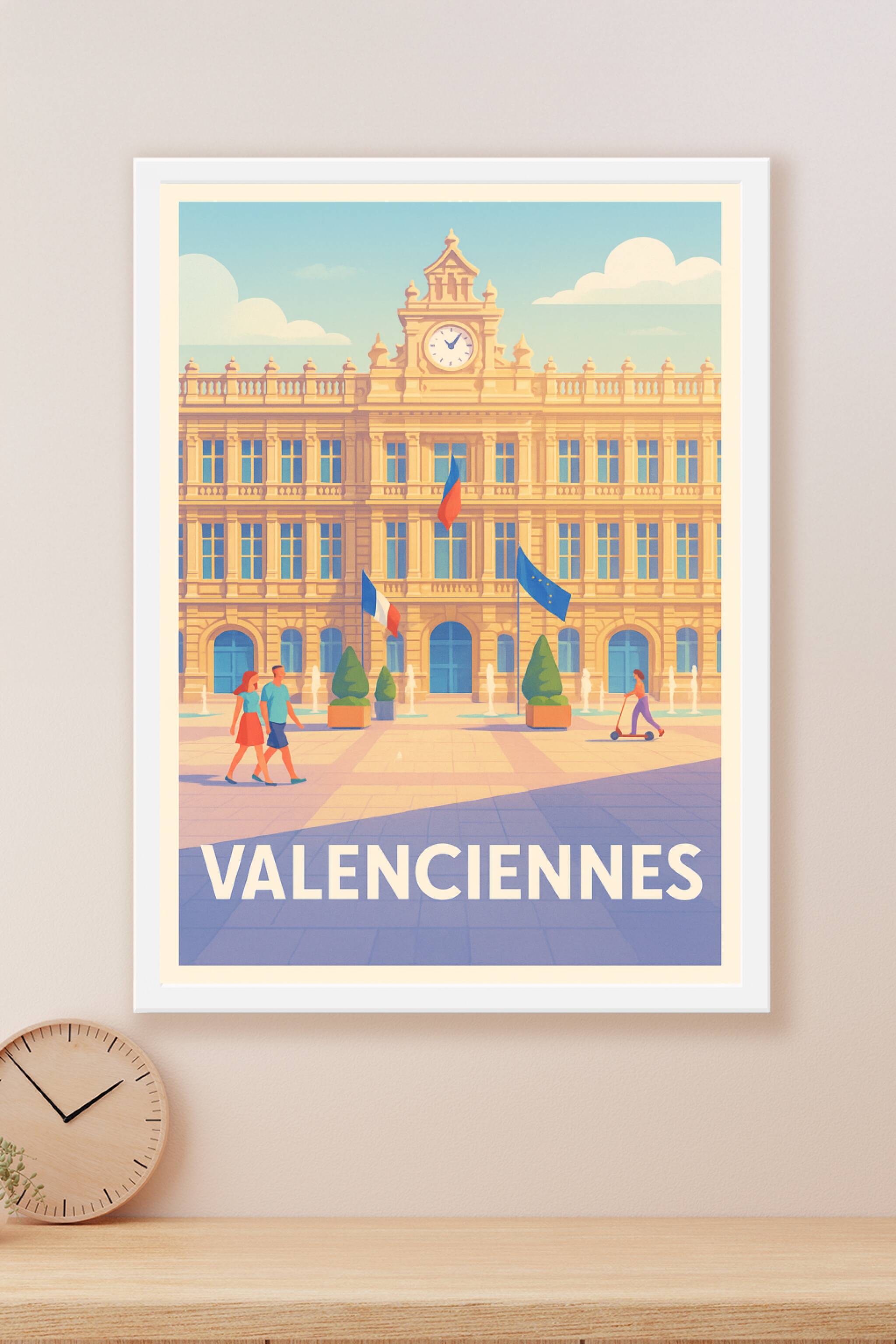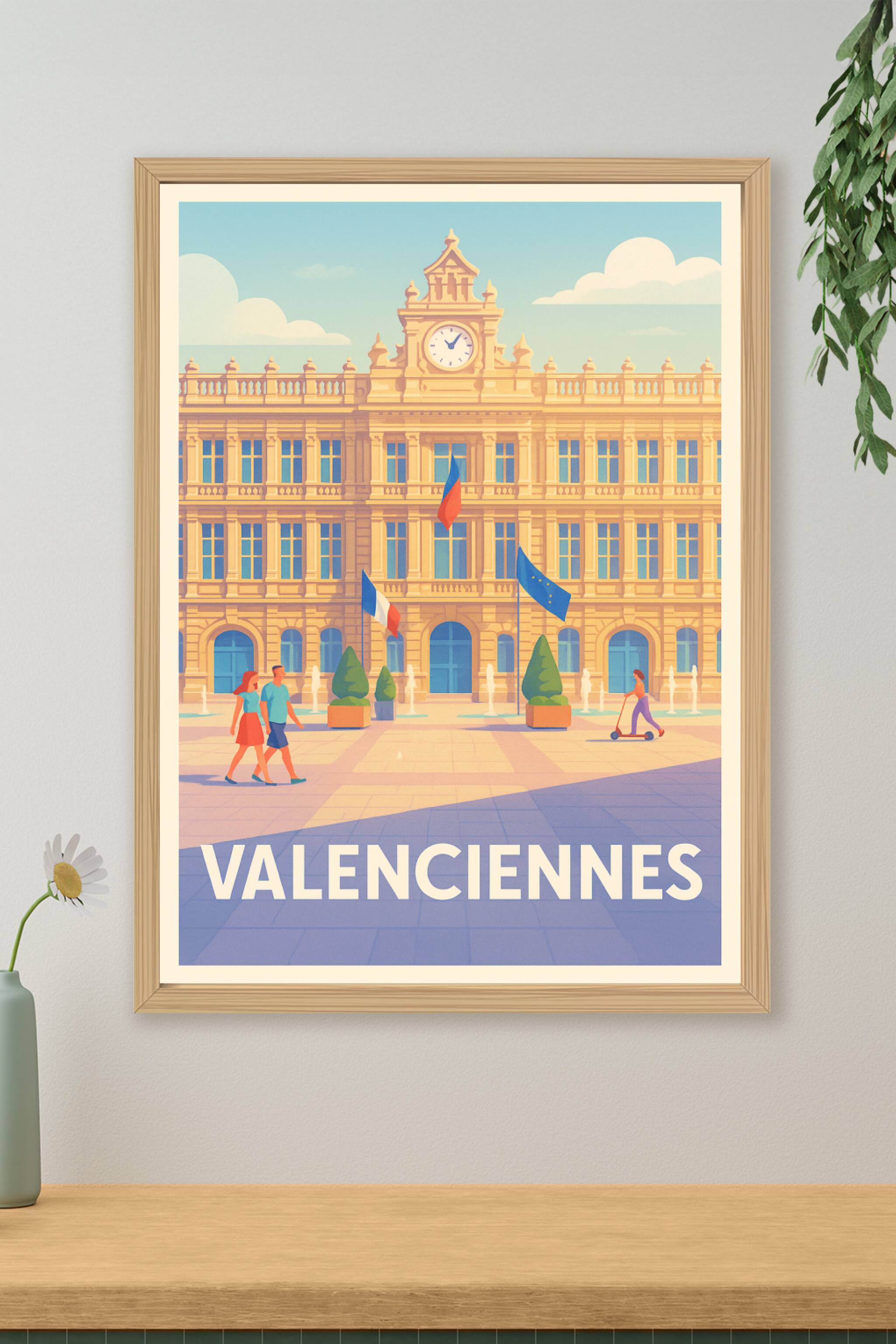 Découvrez la beauté intemporelle de Valenciennes avec cette affiche captivante mettant en lumière l'architecture majestueuse d'un bâtiment emblémat...