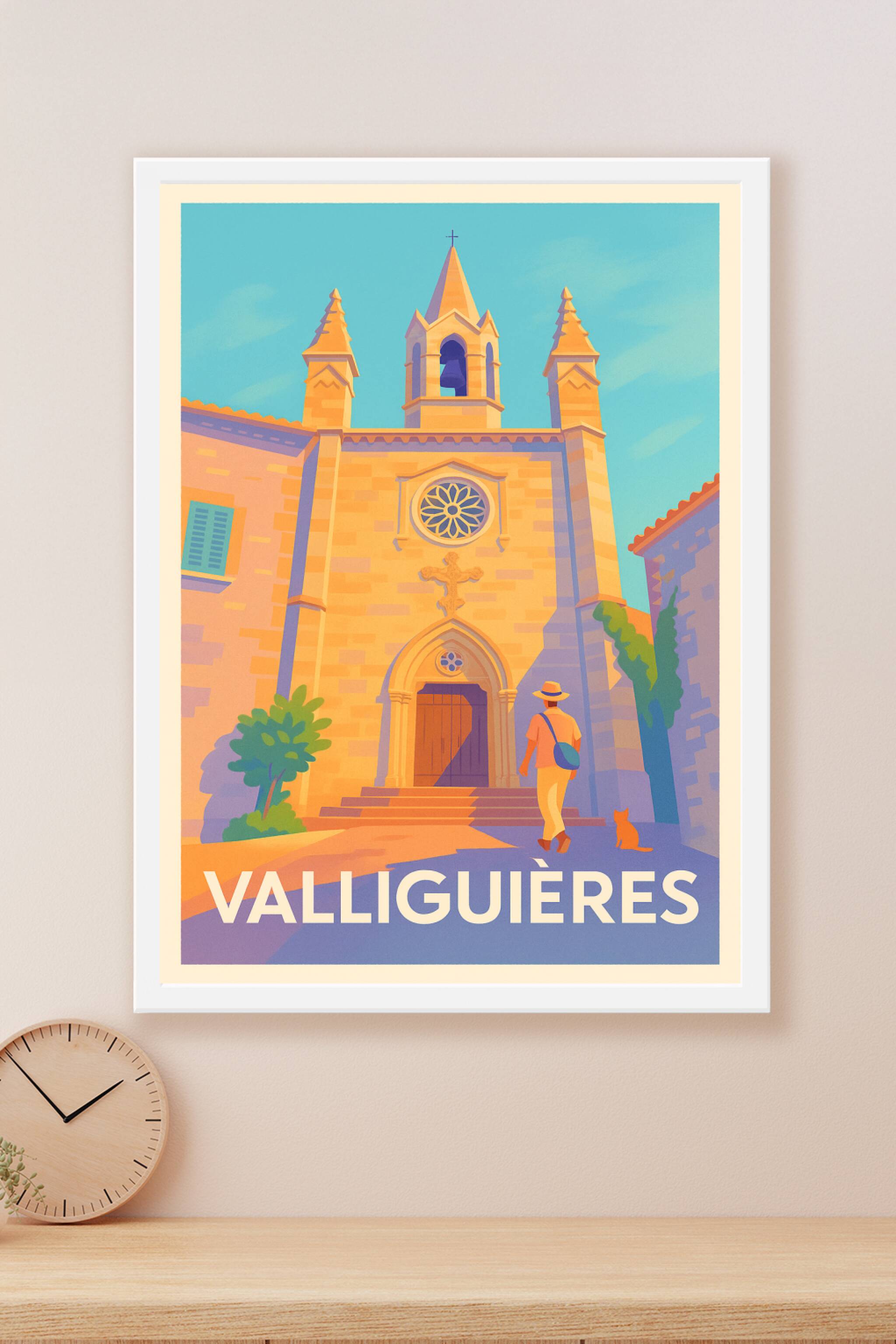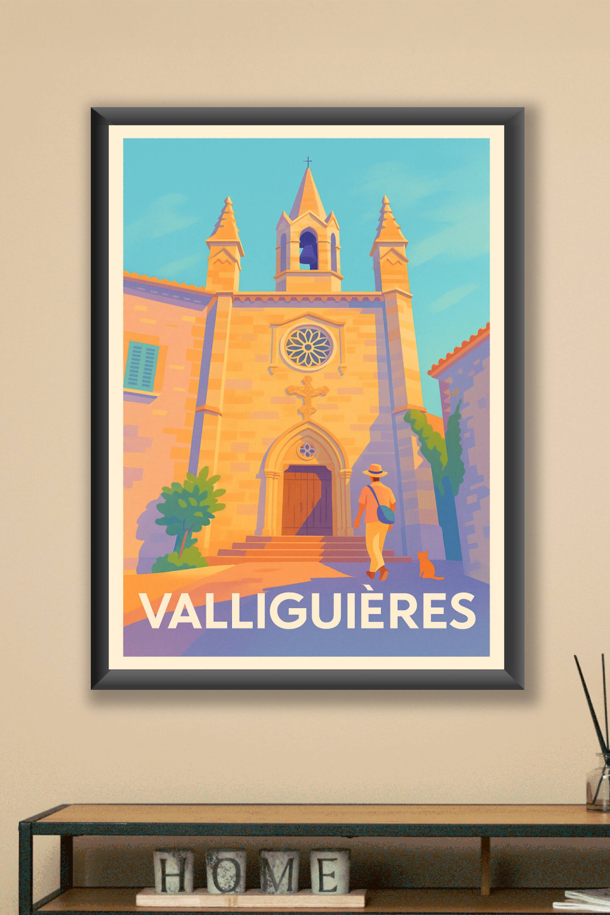 Découvrez le charme authentique de Valliguières avec cette affiche illustrée mettant en scène son architecture typique baignée d'une lumière dorée....