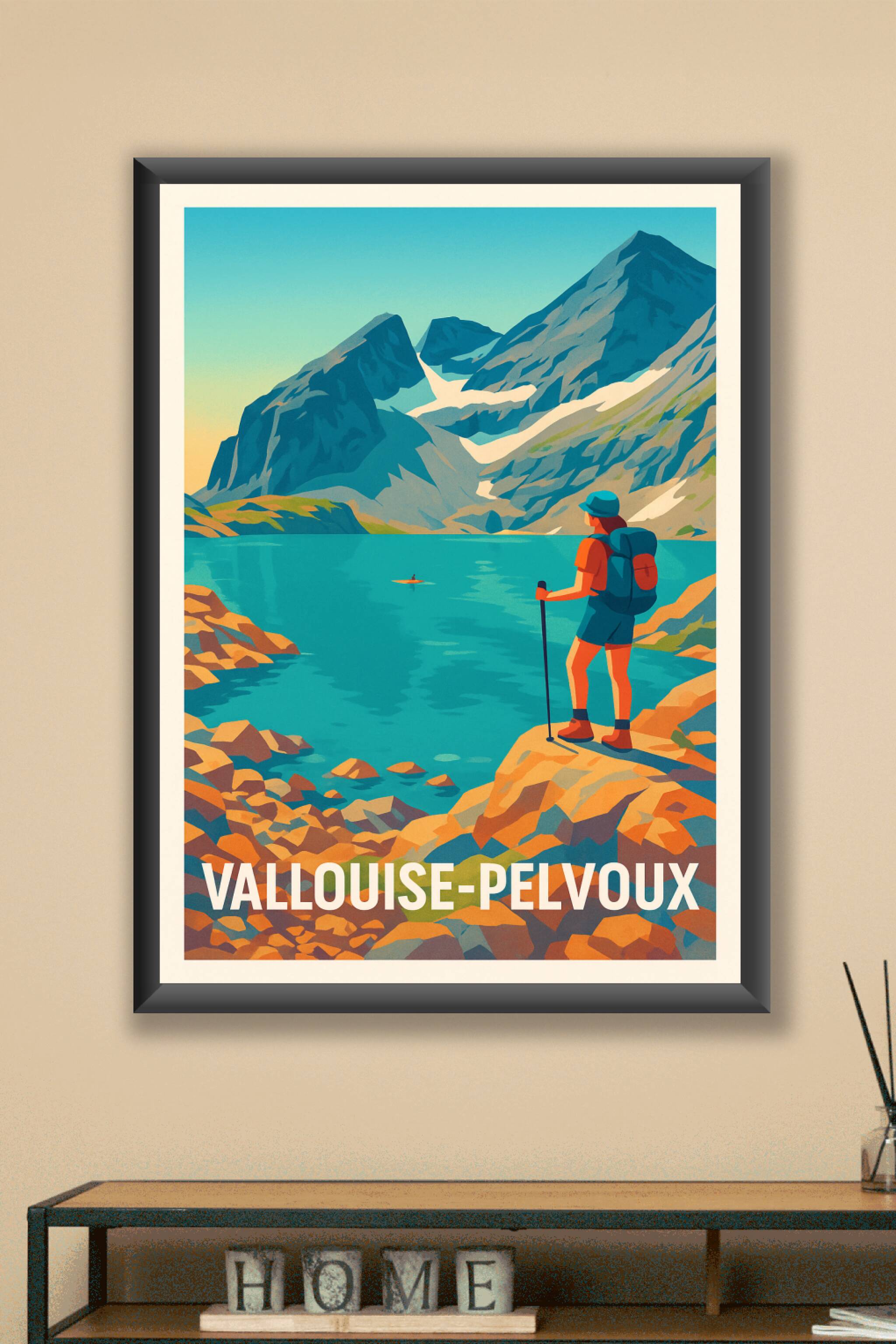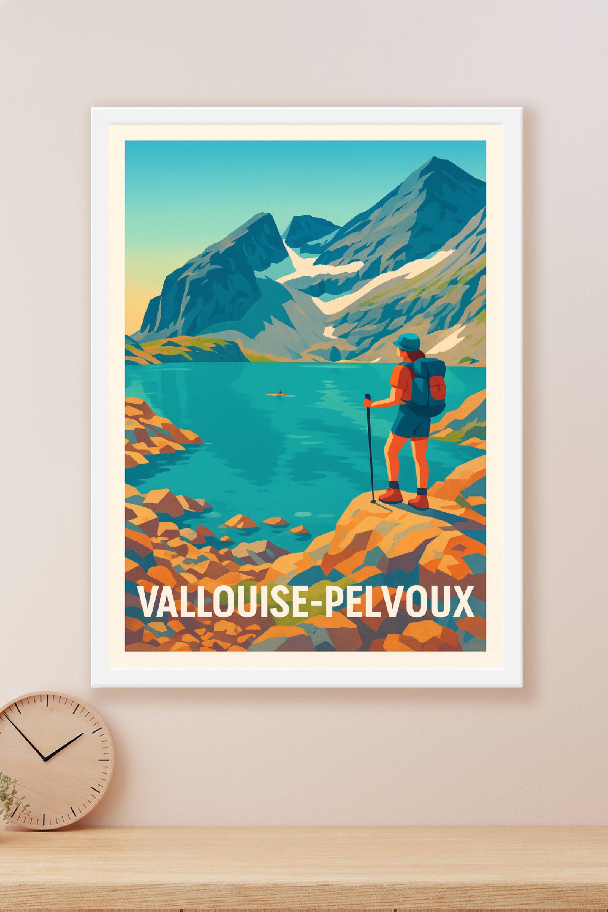Découvrez la splendeur des montagnes de Vallouise-Pelvoux à travers cette affiche qui capture un instant de pleine nature et d'aventure. Le poster met en scène un randonneur contemplant un lac azur entouré de sommets majestueux, invitant à la détente et à l'exploration des grands espaces. Imprimé en tirage "Fine Art" sur papier 305g coton de haute qualité, ce poster assure des couleurs éclatantes et un rendu d'une grande finesse. Disponible en formats A1 à A4, avec ou sans cadre, cette affiche est idéale pour apporter une touche d'évasion et d'énergie à votre intérieur. Offrez-vous ou à vos proches un souvenir raffiné et original de la beauté alpine.
