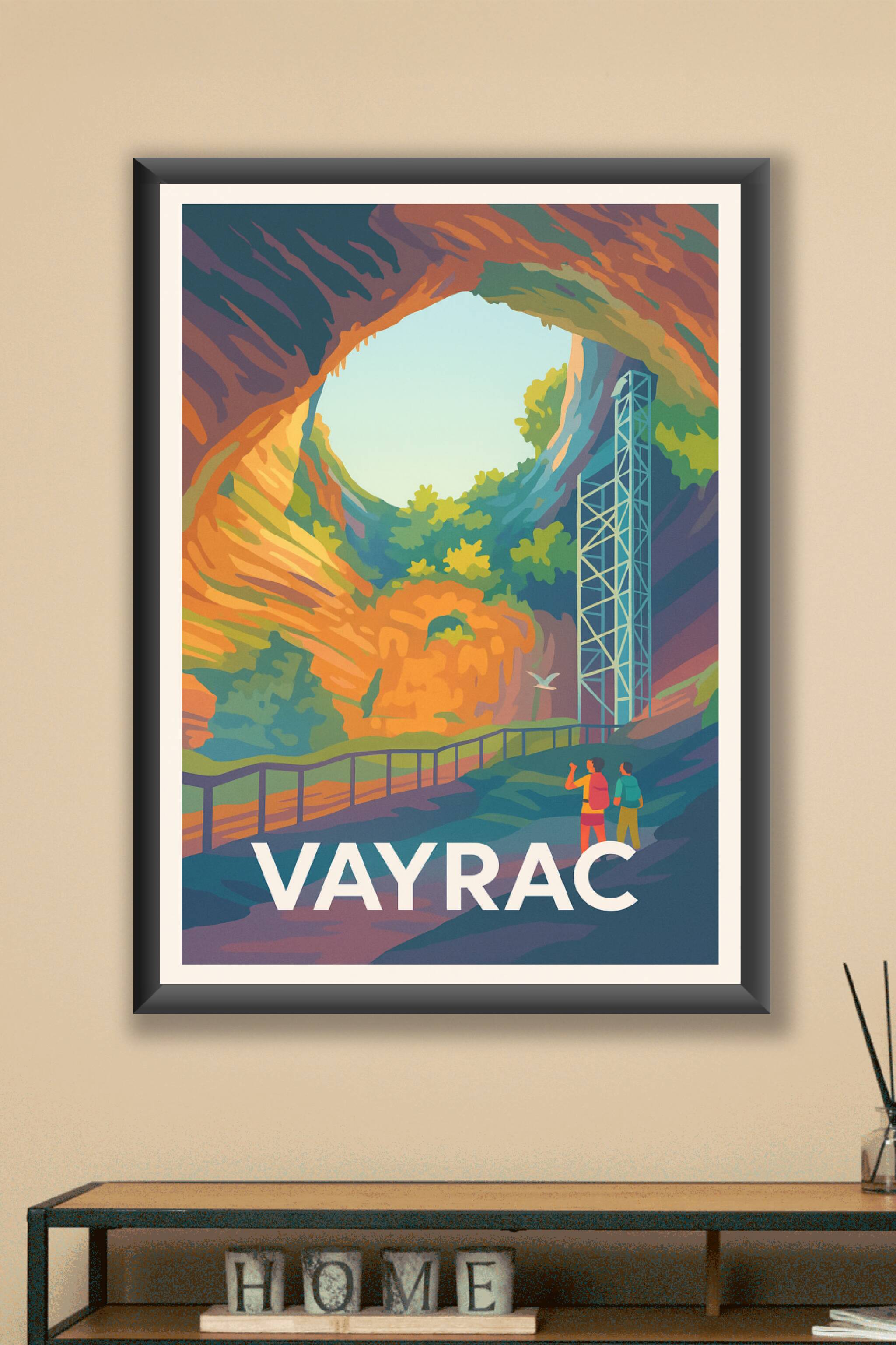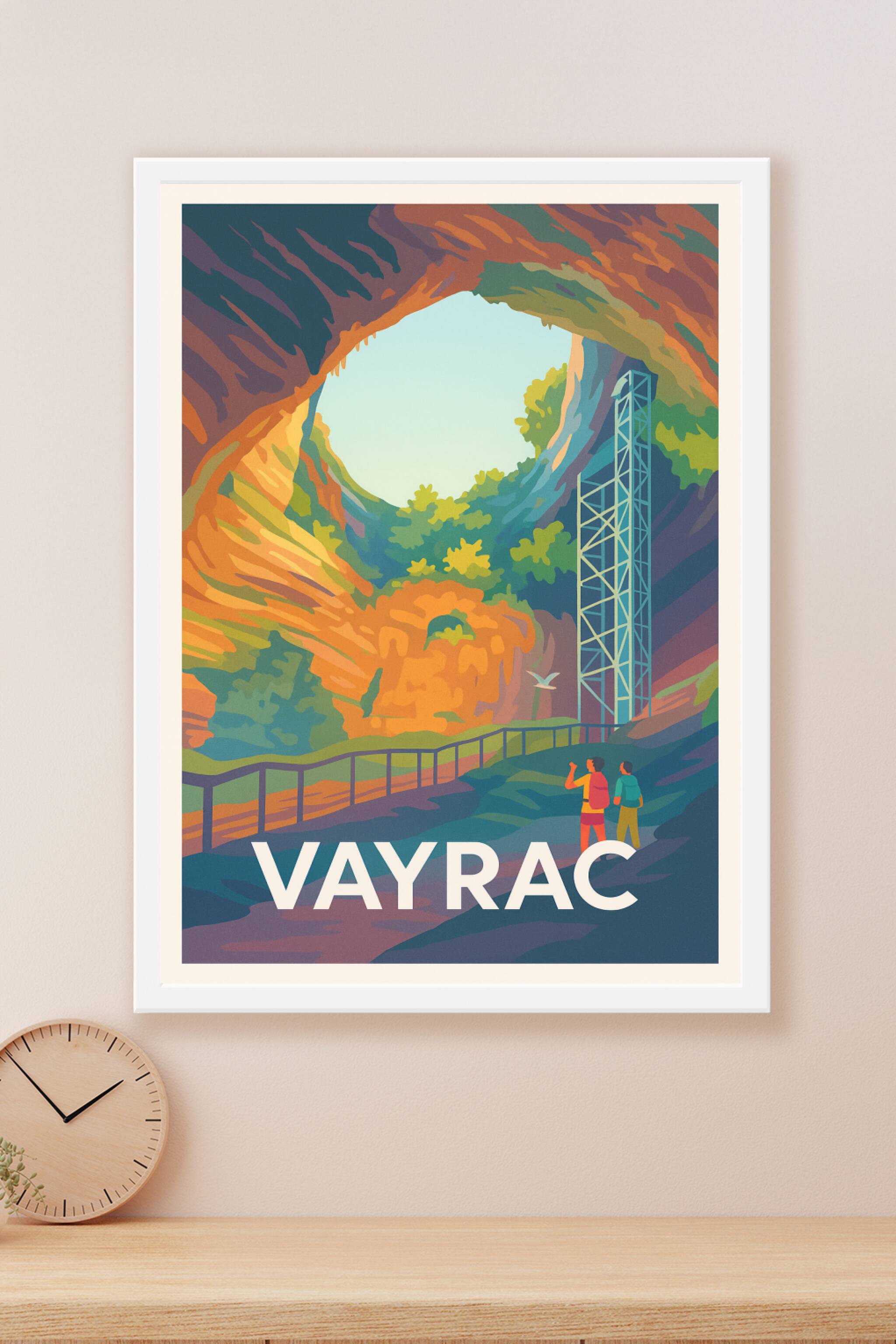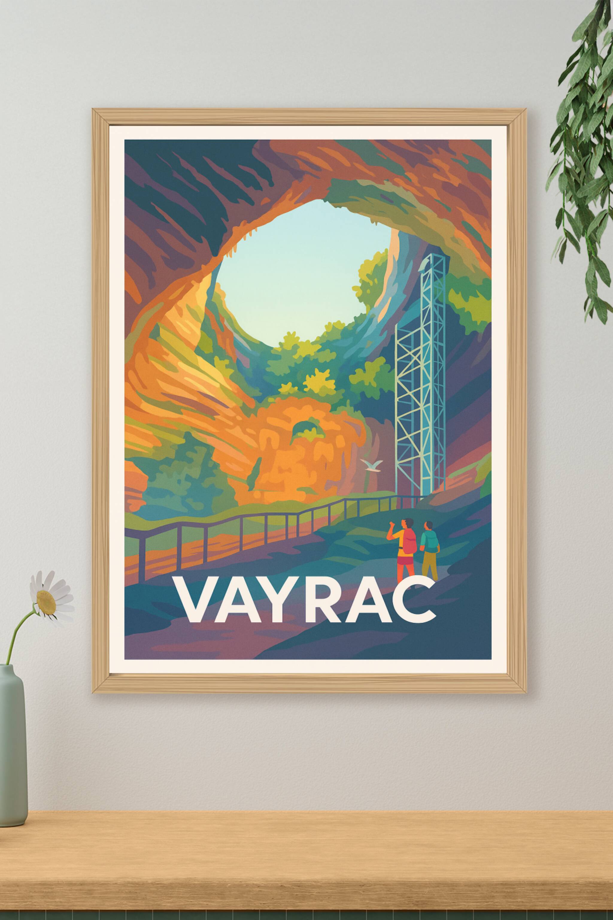 Découvrez l'émerveillement naturel de Vayrac à travers cette affiche illustrée mettant en scène la célèbre grotte captivante de la région. Ce poste...