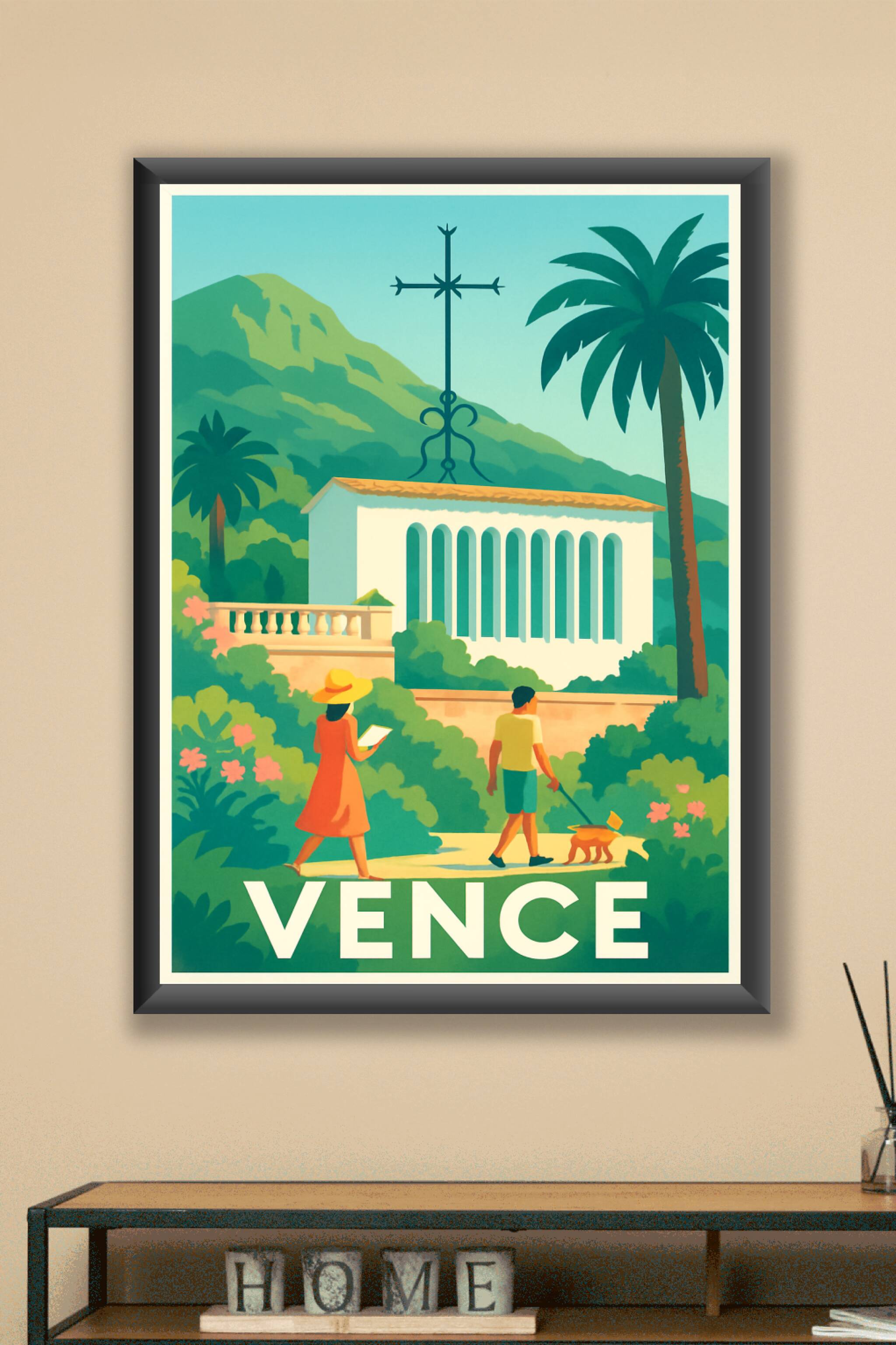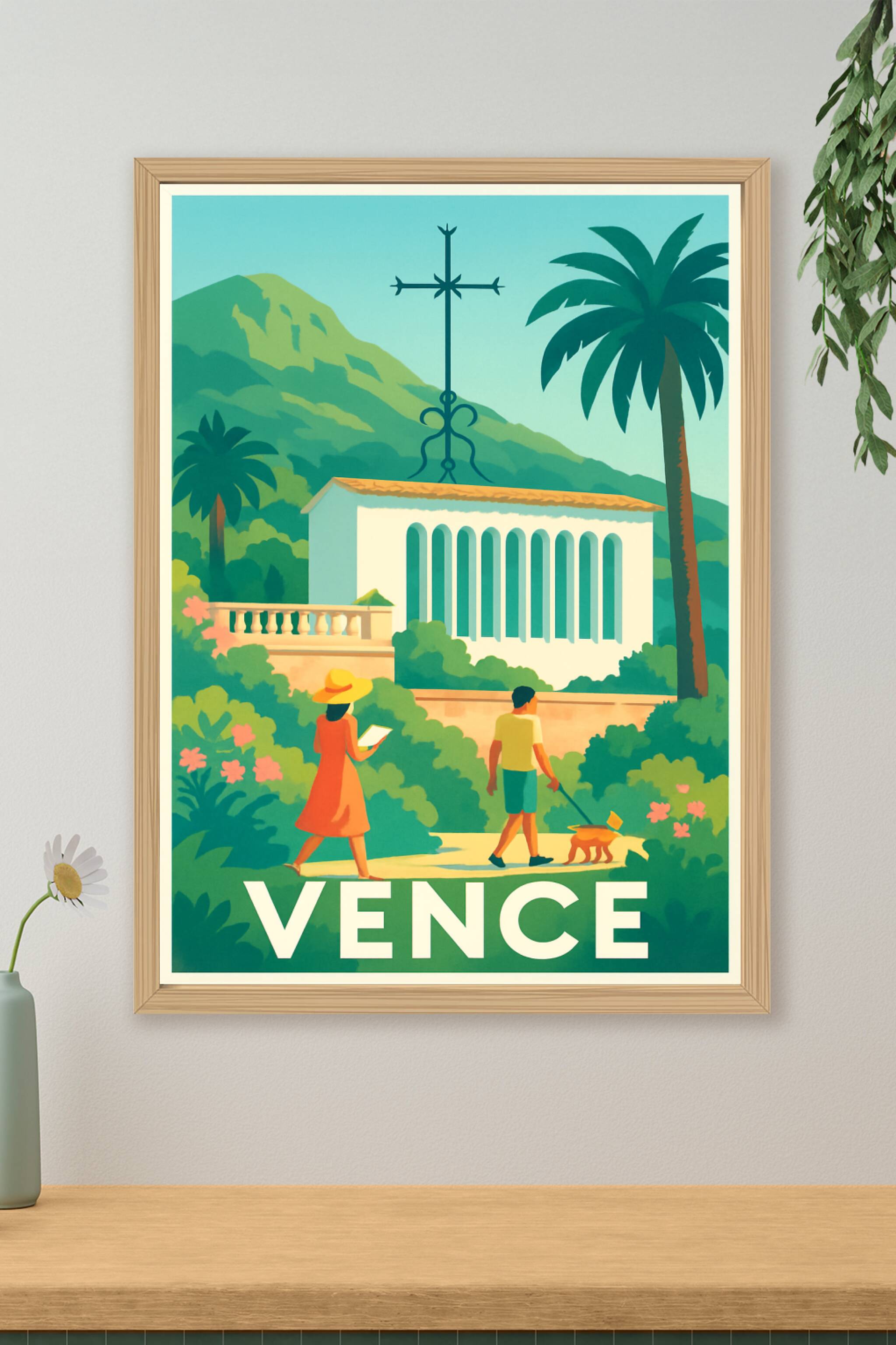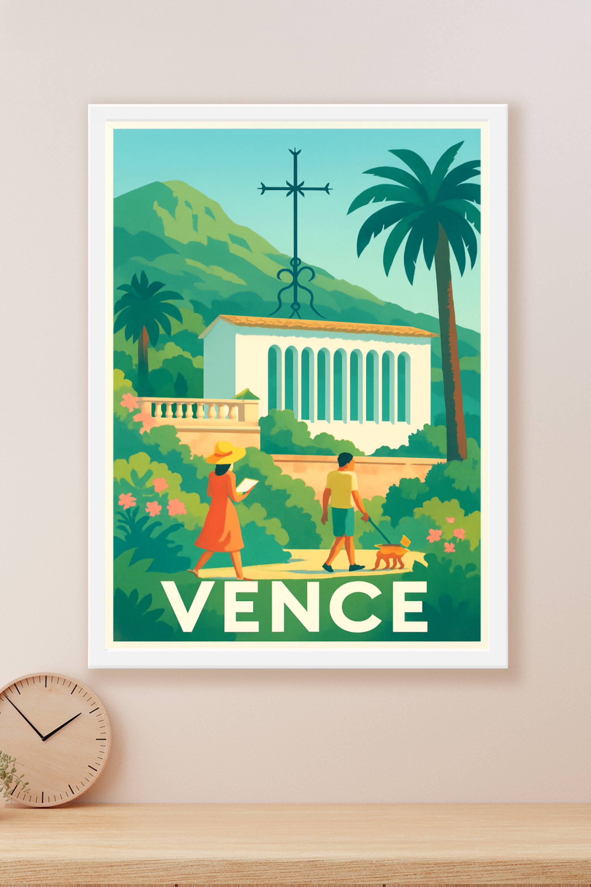 Découvrez la quiétude et la beauté naturelle de Vence avec cette affiche au style vintage qui évoque un petit coin de paradis méditerranéen. Ce pos...