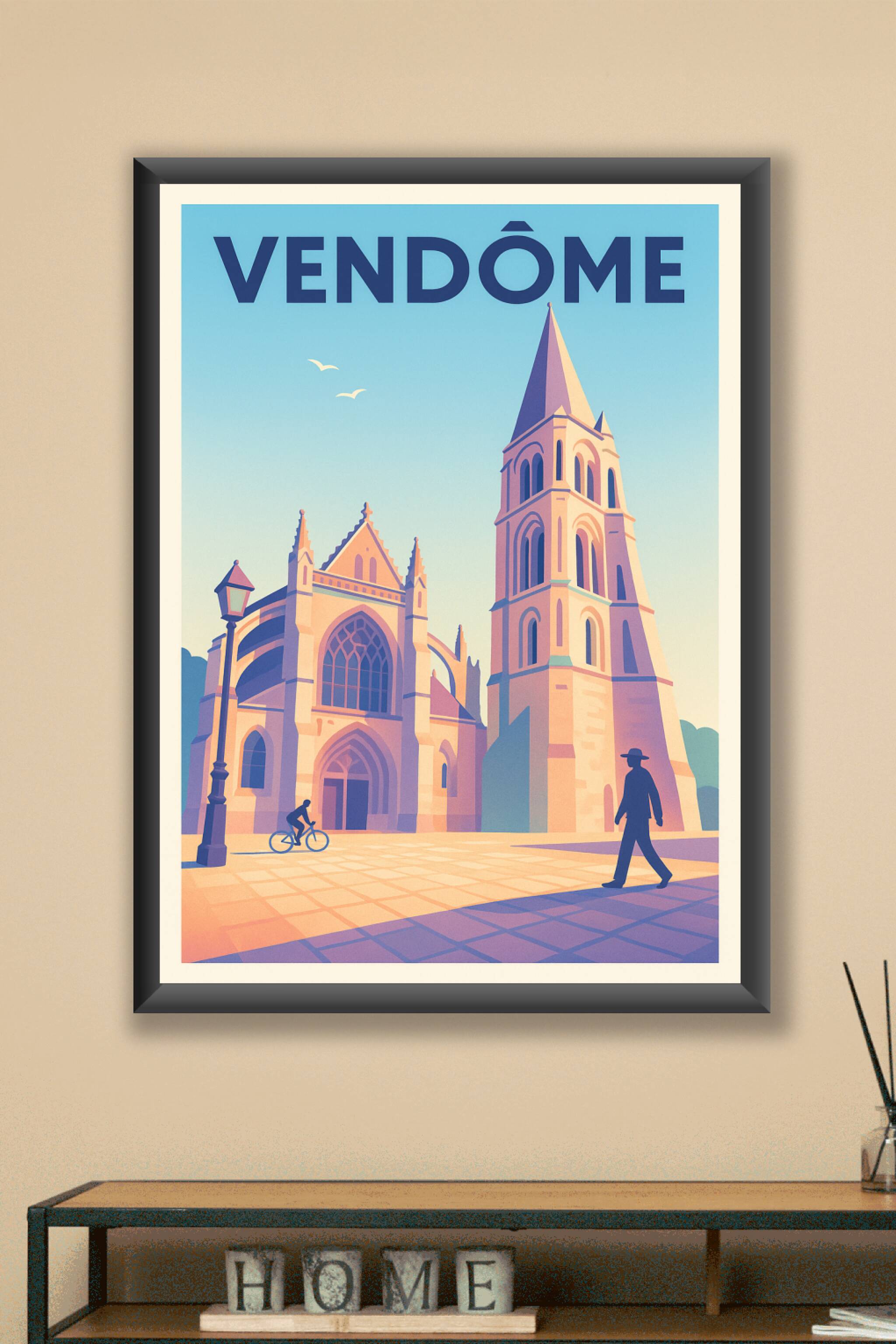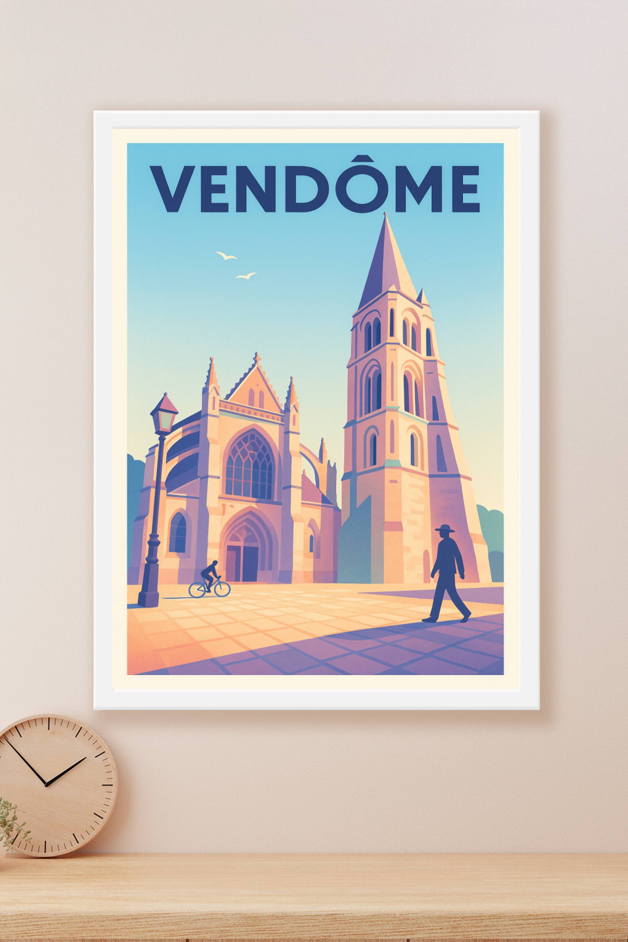 Découvrez cette magnifique affiche illustrée qui met en lumière l'architecture emblématique de Vendôme avec ses lignes harmonieuses et ses couleurs...