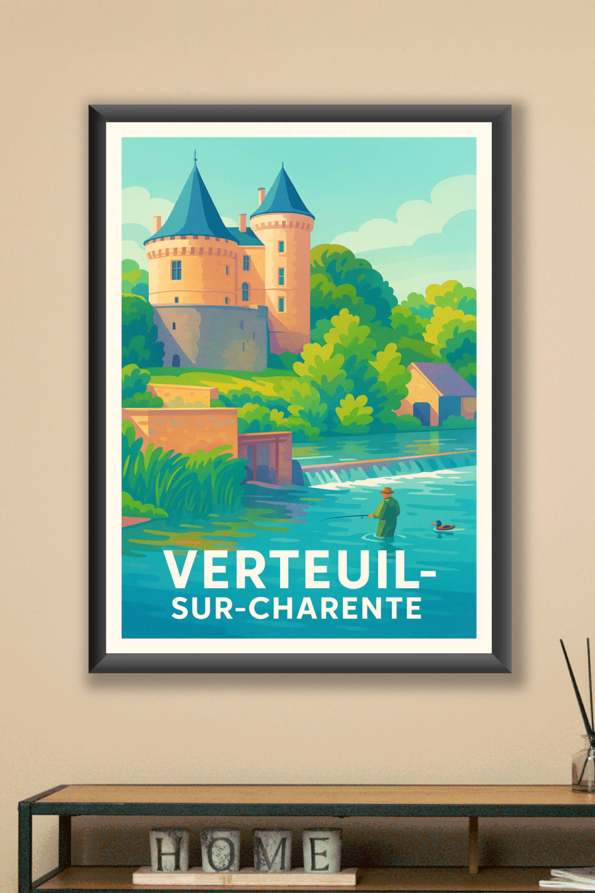 Découvrez l'atmosphère paisible et pittoresque de Verteuil-sur-Charente avec cette affiche illustrée mettant en scène son château emblématique et u...