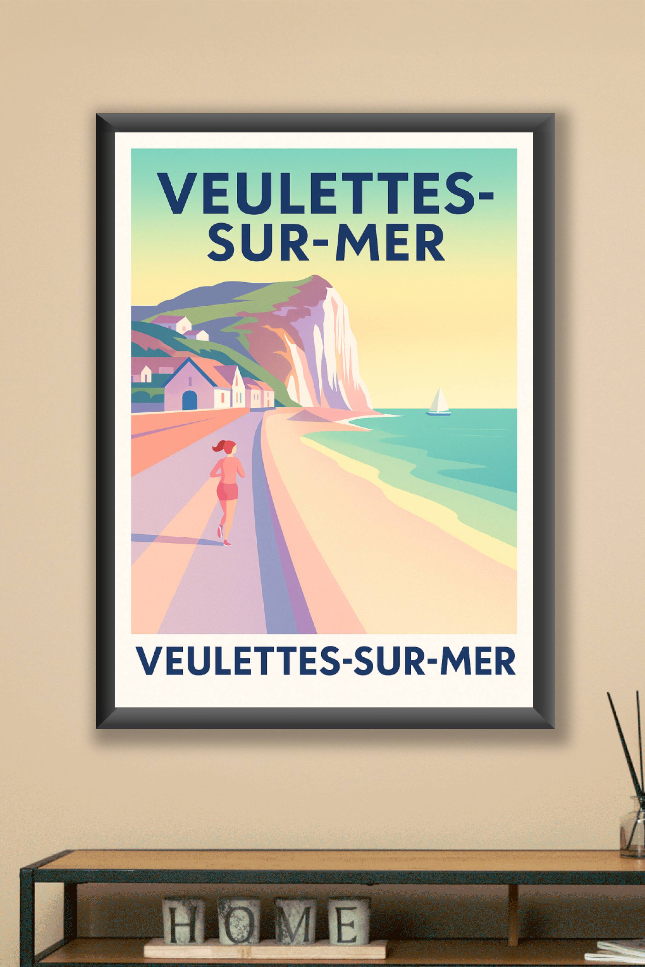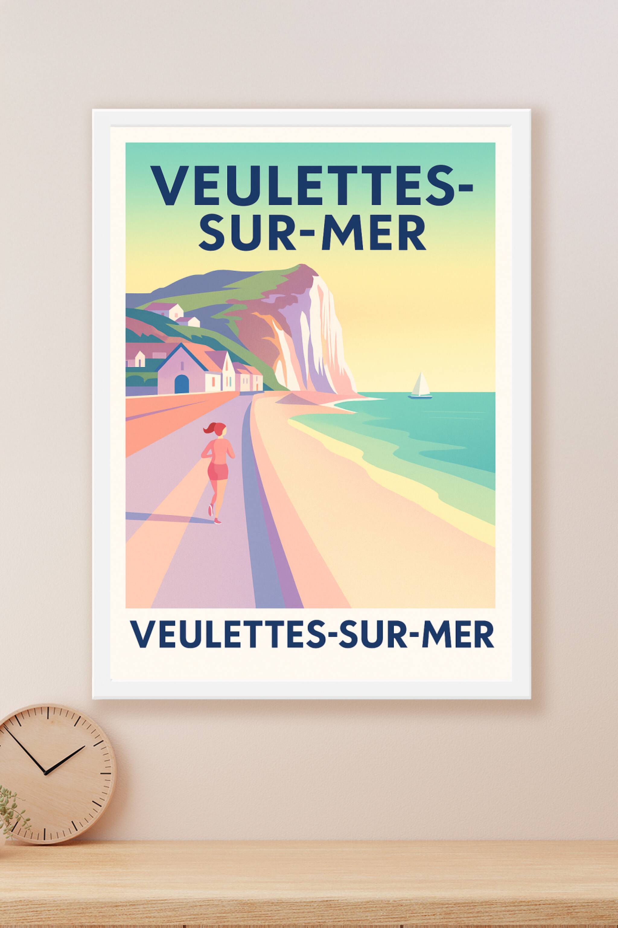 Découvrez l'élégance naturelle de Veulettes-sur-Mer avec cette affiche au style vintage qui capture la douceur d'une promenade en bord de mer, aux ...