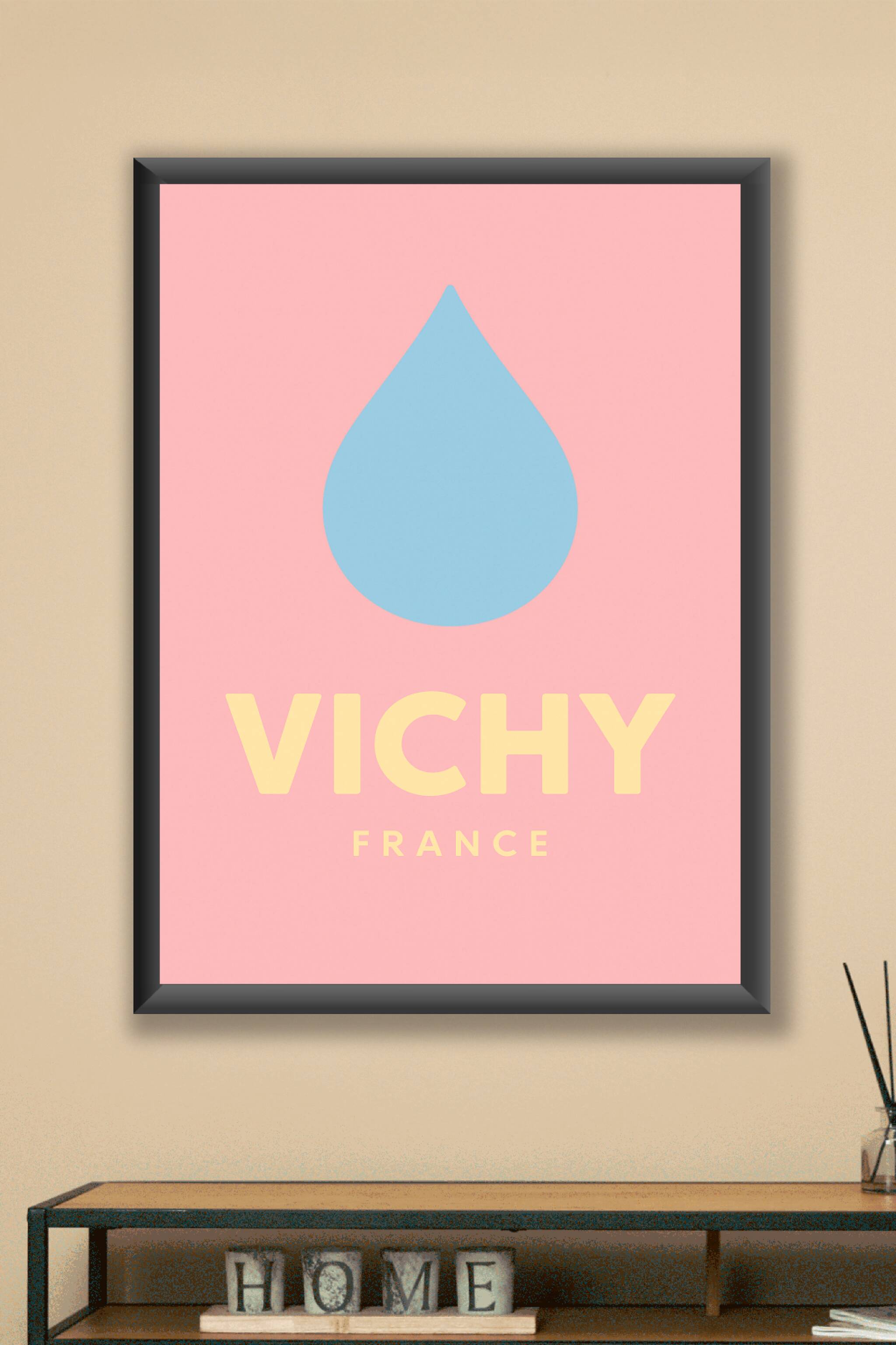 Découvrez la simplicité et la pureté de Vichy à travers ce poster minimaliste et moderne représentant une goutte d'eau emblématique. Cette affiche ...