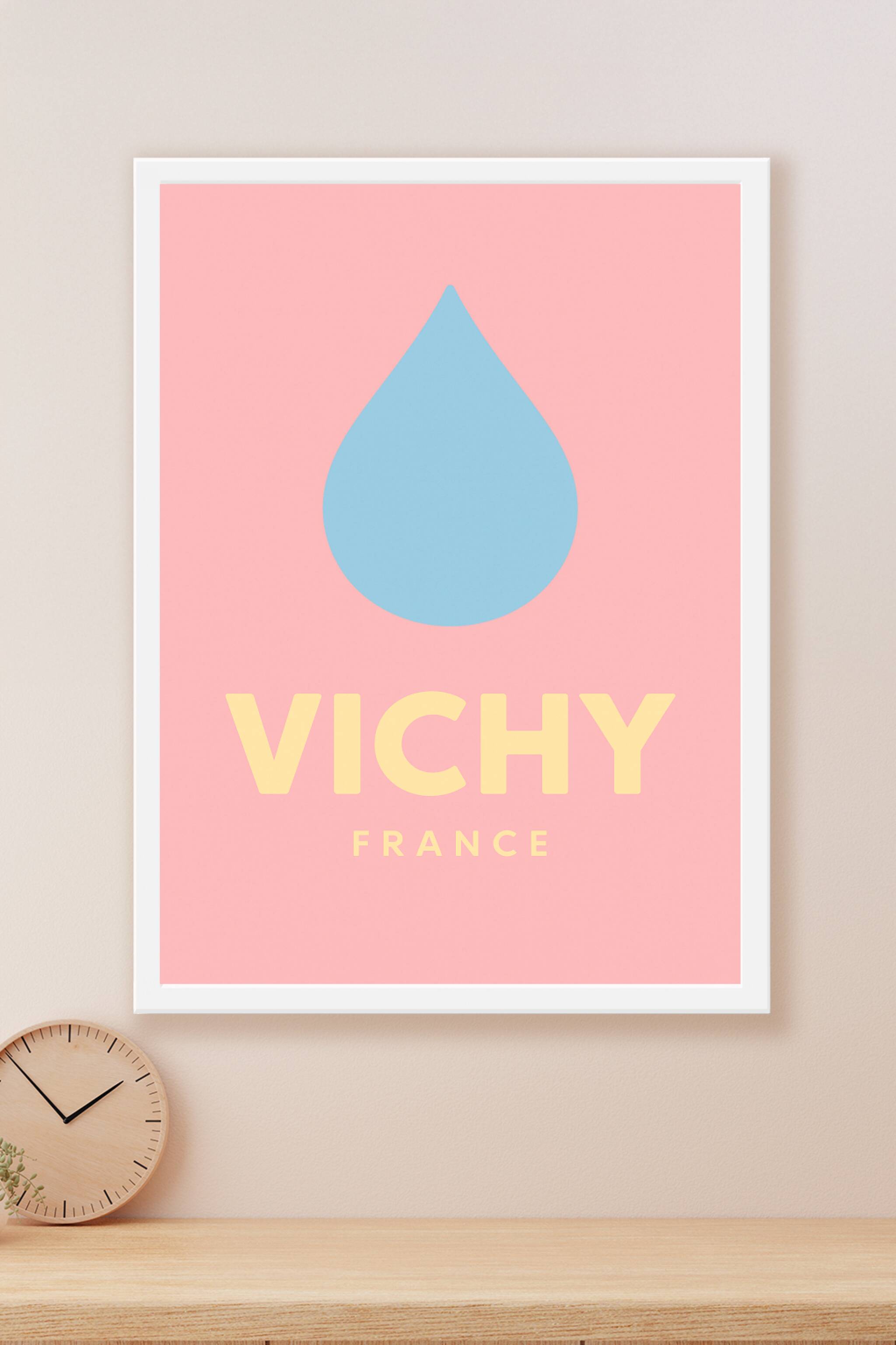 Découvrez la simplicité et la pureté de Vichy à travers ce poster minimaliste et moderne représentant une goutte d'eau emblématique. Cette affiche épurée aux couleurs douces est un hommage à la réputation thermale et à l'art de vivre de cette ville française. Imprimée en haute définition sur un papier couché brillant de 250 g/m², cette affiche est à la fois épaisse et résistante, garantissant une qualité d’impression optimale et des encres durables. Disponible en plusieurs formats, du A1 au A4, avec ou sans cadre, ce poster est parfait pour sublimer votre décoration intérieure ou offrir un cadeau original aux amateurs de design sobre et élégant.
