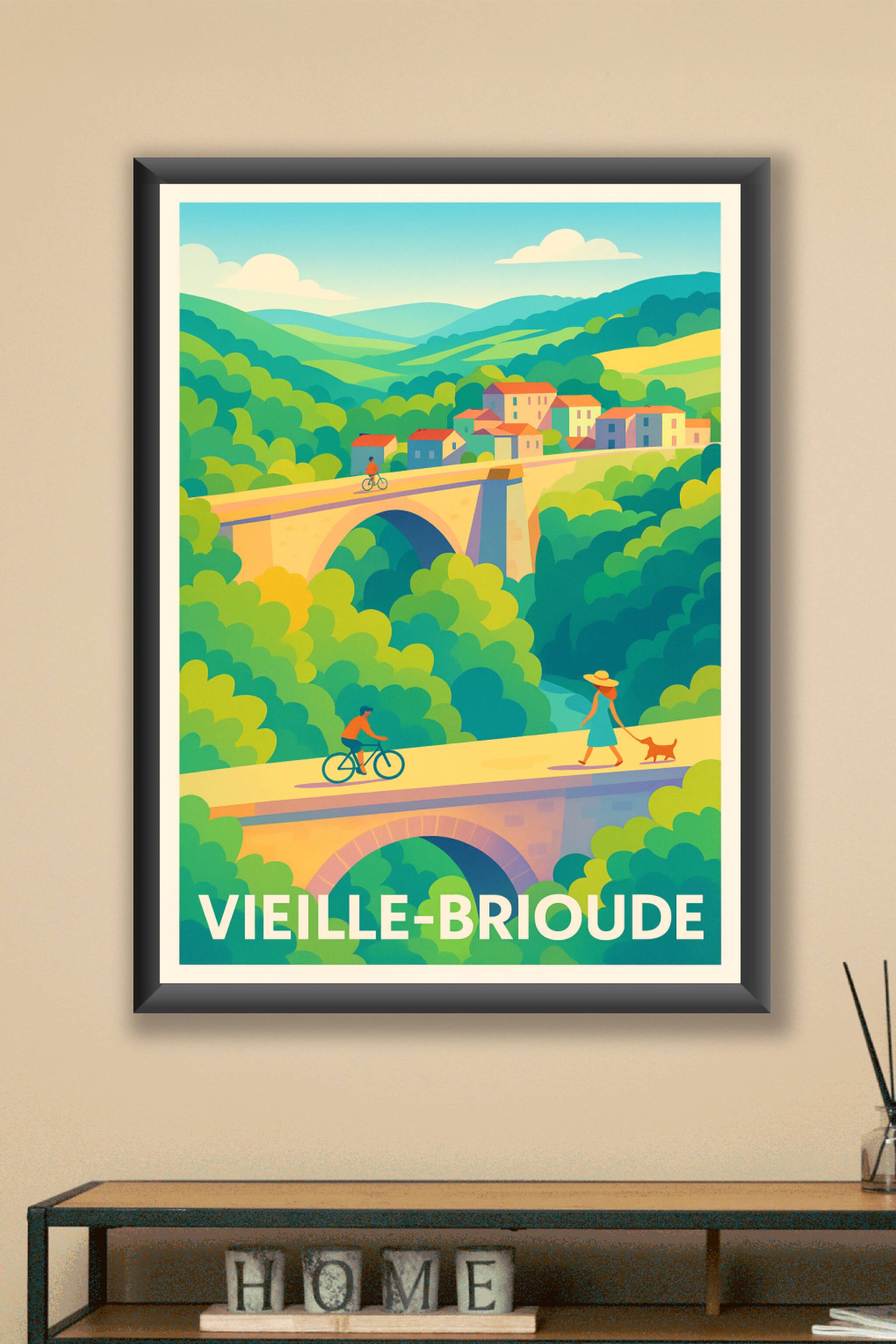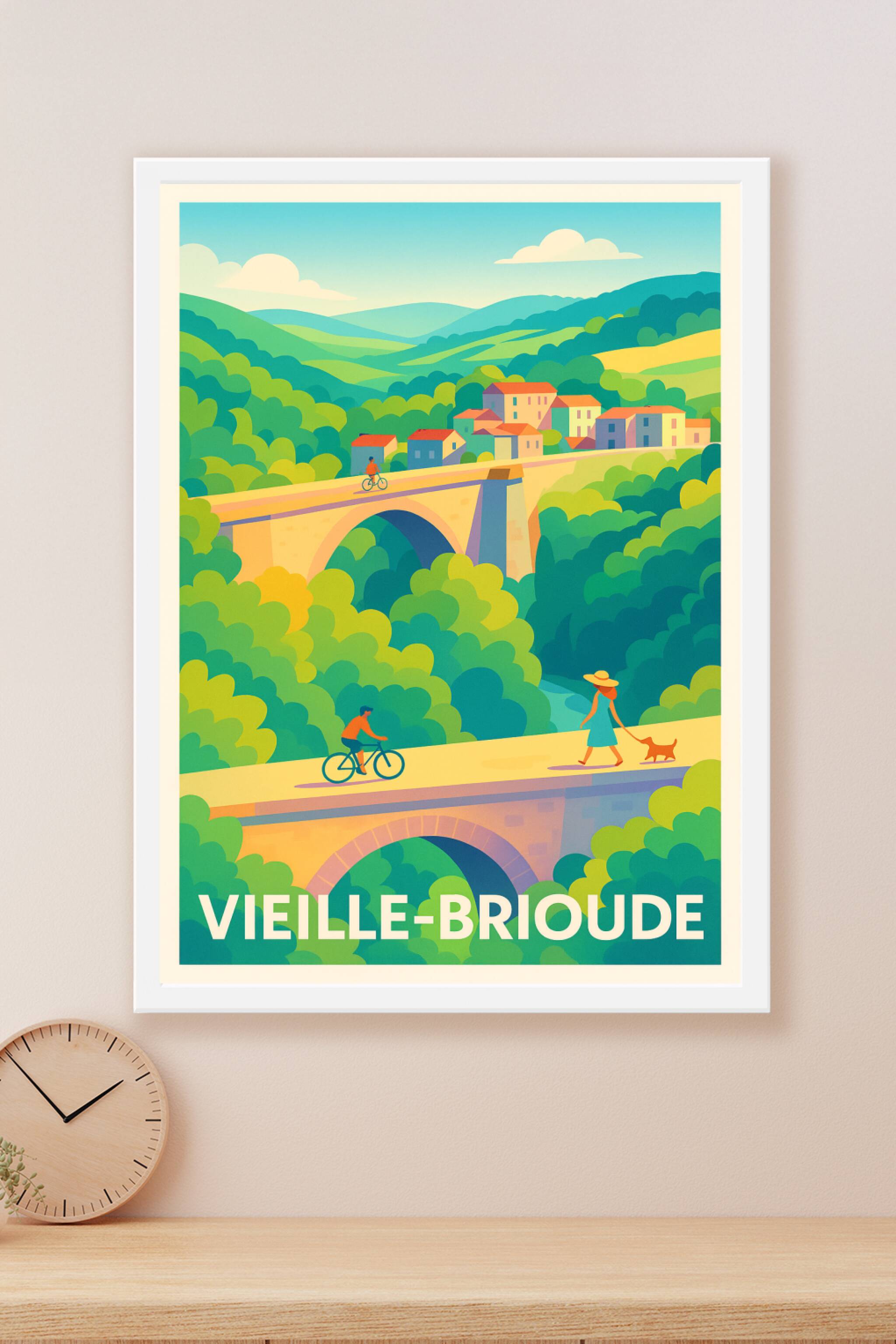 Découvrez la douceur paisible de Vieille-Brioude à travers cette affiche illustrée aux couleurs vibrantes et harmonieuses, qui met en lumière les p...