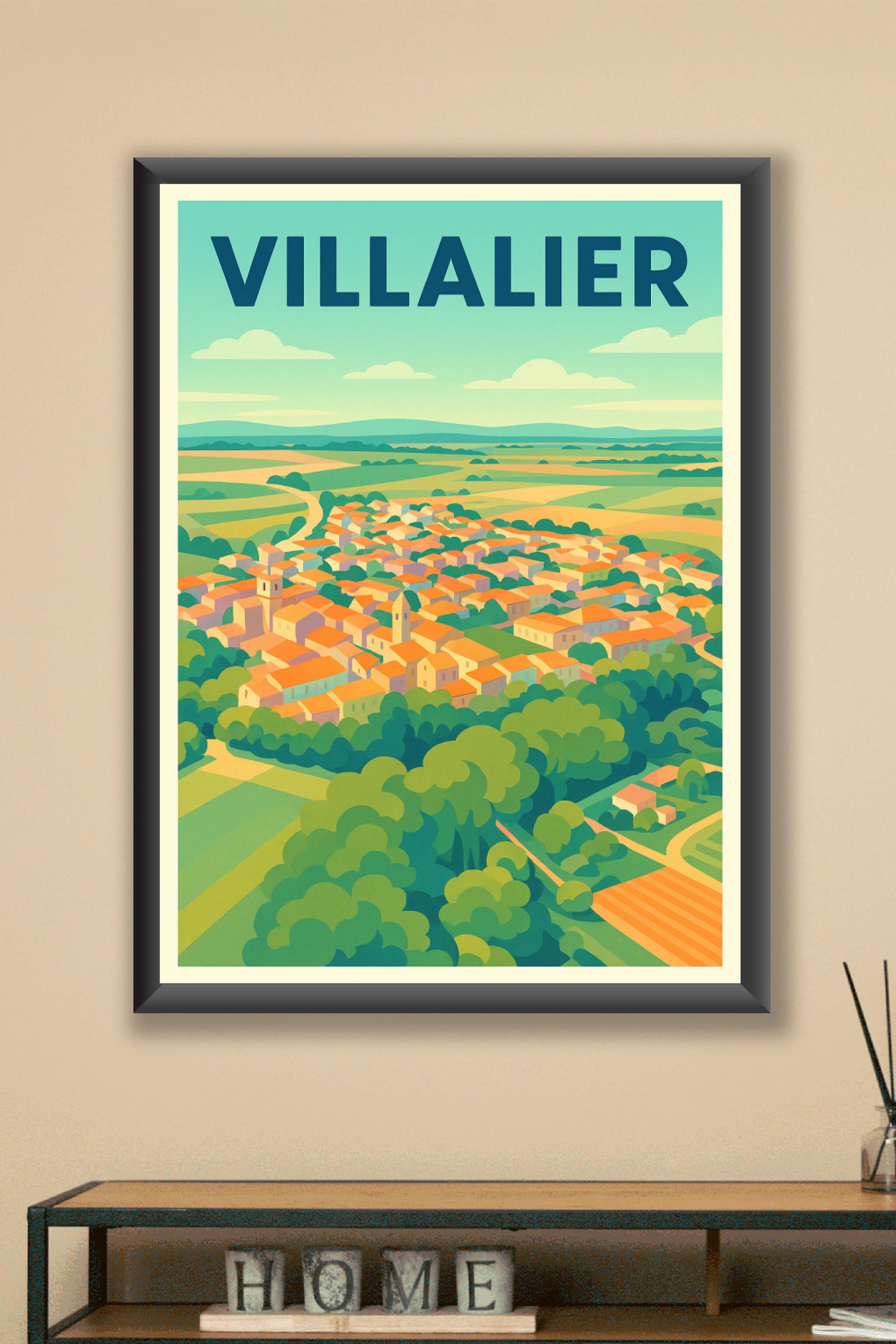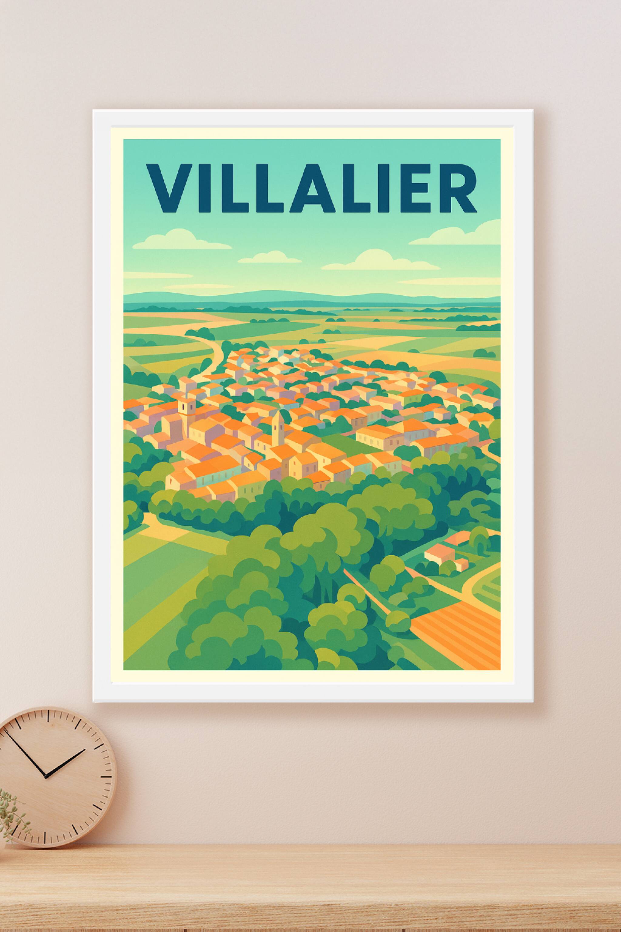 Découvrez l'enchantement paisible de Villalier avec cette affiche au style lumineux et épuré, qui capture la douceur des paysages pittoresques et d...