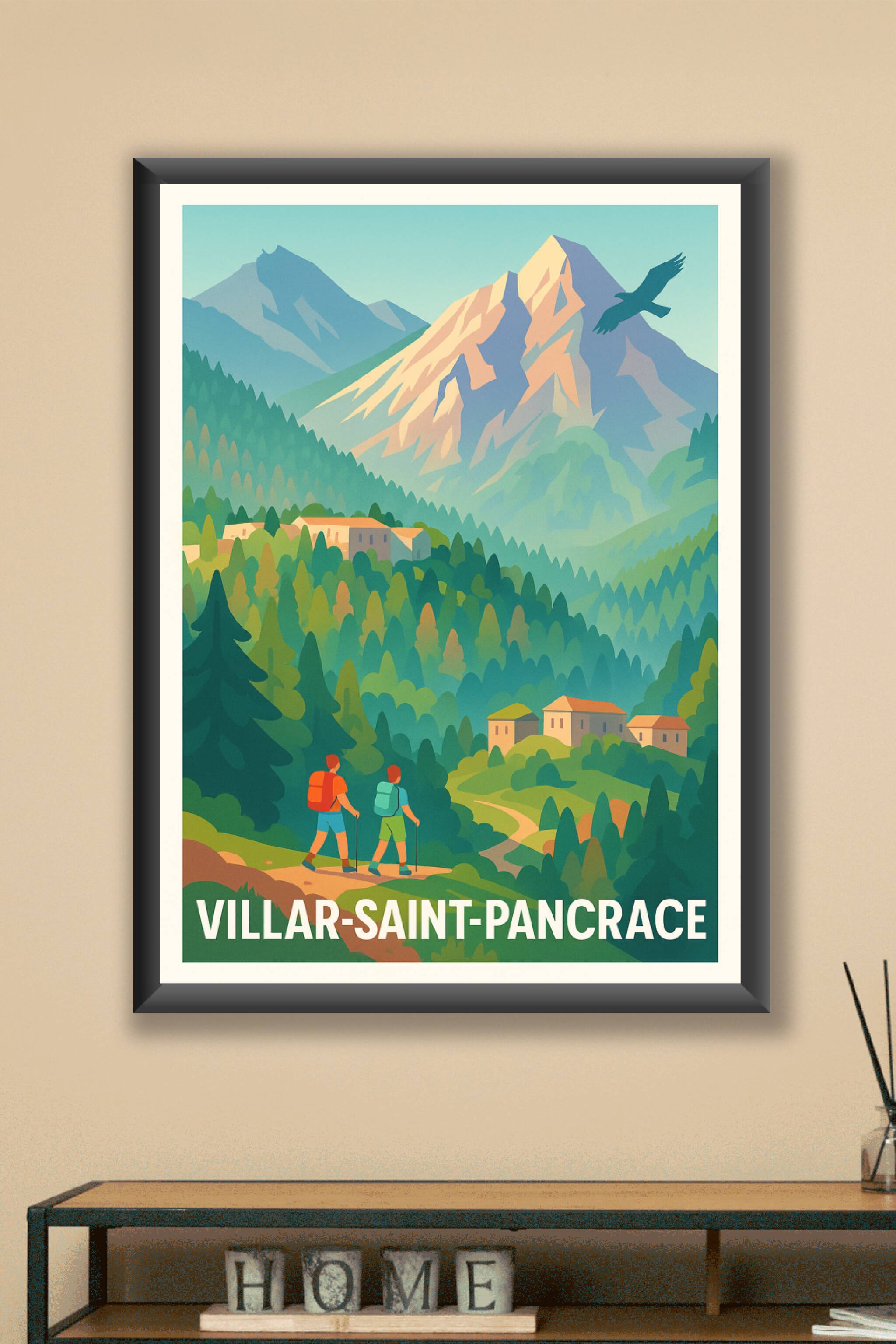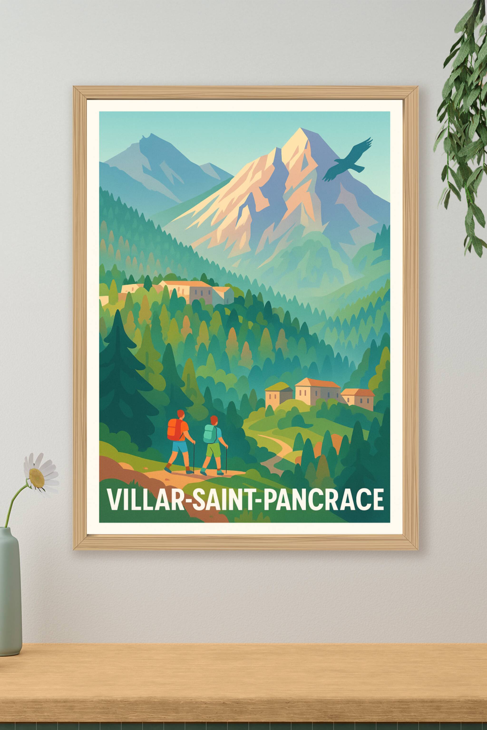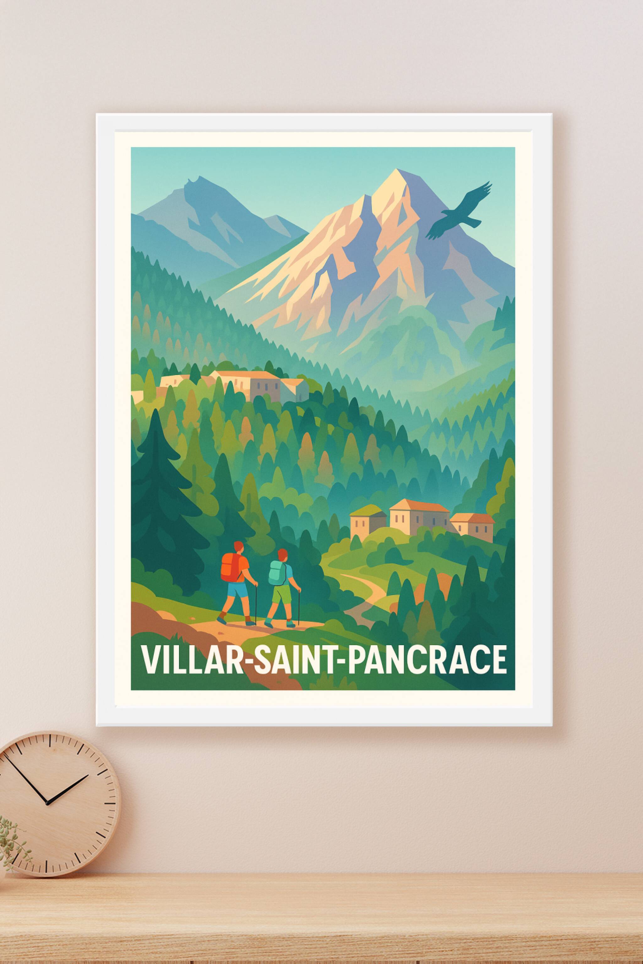 Découvrez la beauté authentique de Villar-Saint-Pancrace avec cette affiche illustrée qui met en scène ses paysages de montagne verdoyants et ses s...