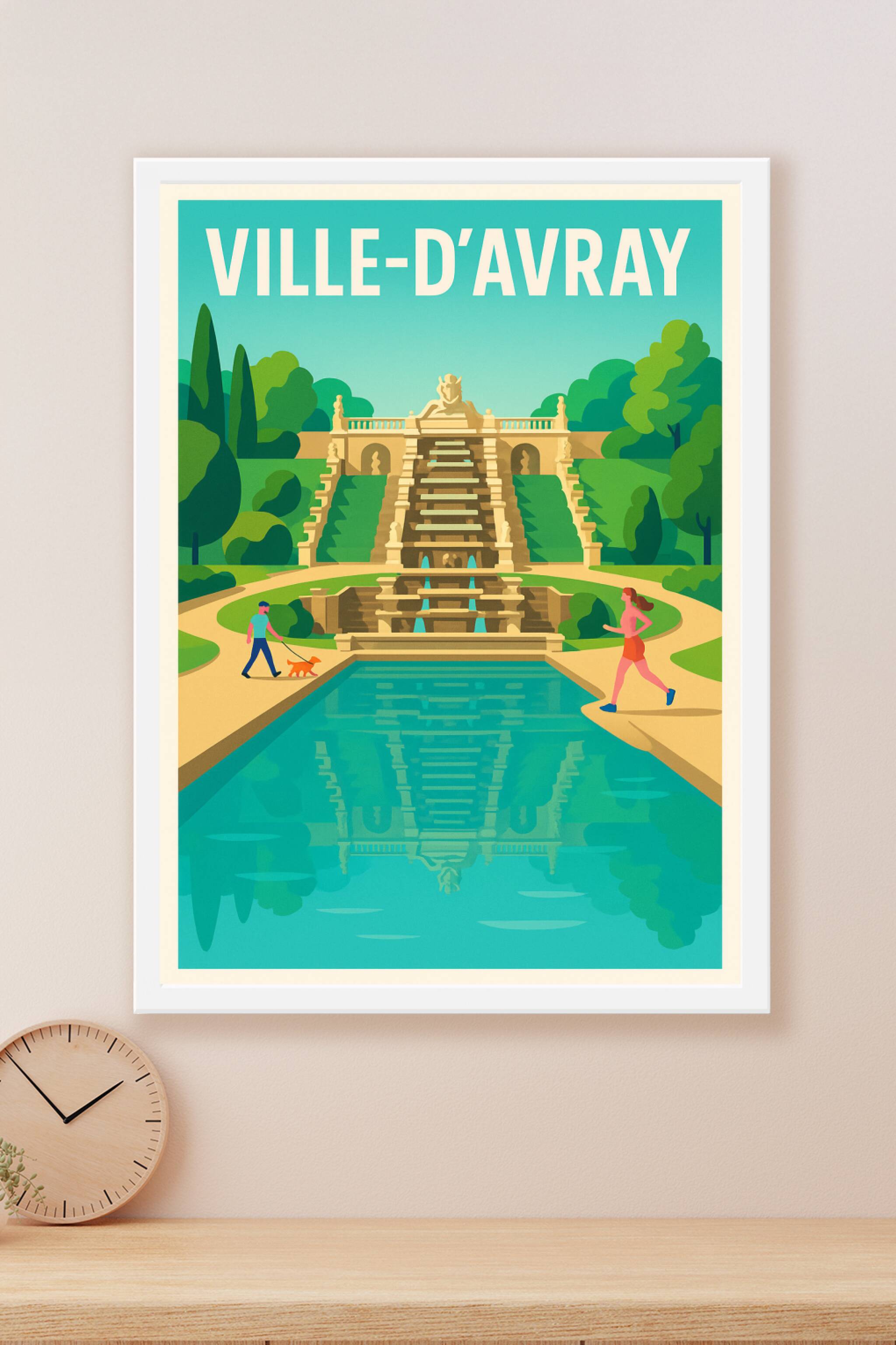 Découvrez la beauté paisible de Ville-d'Avray avec cette affiche qui met en lumière l'élégante cascade du parc, entourée de verdure luxuriante et de chemins invitants. Ce poster au style graphique et moderne capture l'essence d'un lieu propice à la promenade et à la détente, parfait pour embellir tout intérieur. Imprimé en tirage "Fine Art" sur papier 305g coton, ce poster garantit une qualité d'impression exceptionnelle et une durabilité remarquable. Disponible en formats variés de A1 à A4, avec ou sans cadre, cette affiche s'adapte parfaitement à tous les espaces. Offrez-vous ou offrez à vos proches ce souvenir raffiné de Ville-d'Avray, 100% fabriqué en France, pour une décoration élégante et authentique.