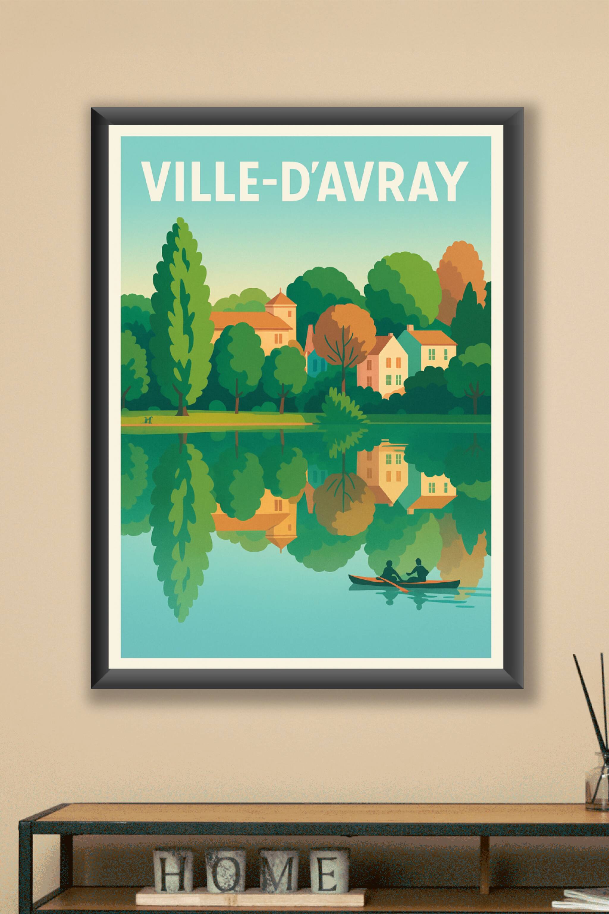 Découvrez la sérénité de Ville-d'Avray avec cette affiche au style graphique épuré, mettant en scène les charmantes maisons et la nature luxuriante qui se reflètent paisiblement sur l'eau. Ce poster évoque un moment de calme et de beauté à travers un paysage idyllique où l'on aperçoit une barque naviguant doucement.Cette affiche est imprimée en tirage "Fine Art" sur papier 305g coton, garantissant une qualité d'impression exceptionnelle et une longévité optimale des couleurs. Disponible en formats A1 à A4, avec ou sans cadre, elle s'adapte à tous les styles d'intérieur. Offrez-vous ou faites plaisir avec ce poster premium, 100% fabriqué en France, qui apportera une touche d'élégance naturelle à votre décoration.