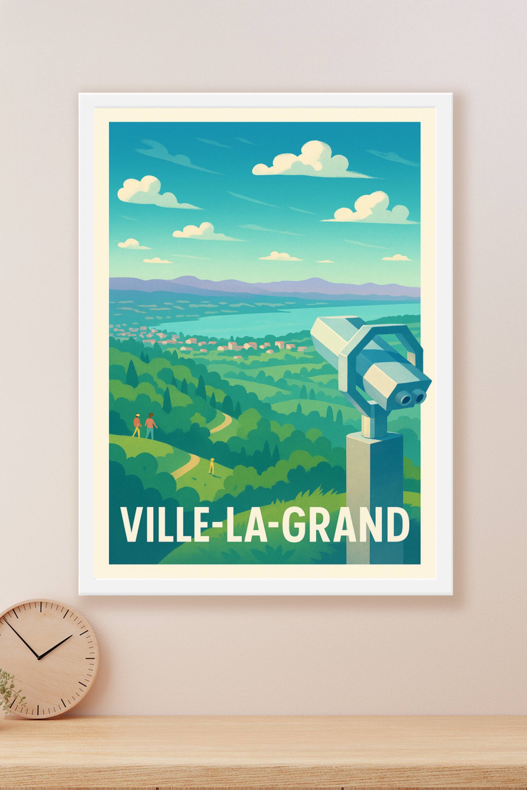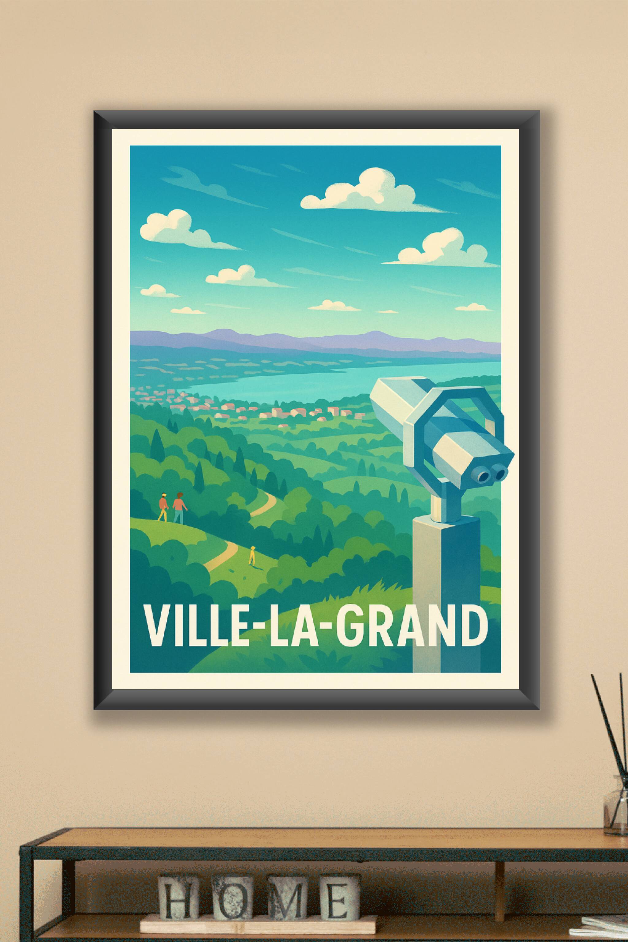 Découvrez l'élégance et la sérénité de Ville-la-Grand avec cette affiche au style vintage et graphique. Ce poster illustre une vue panoramique sur ...