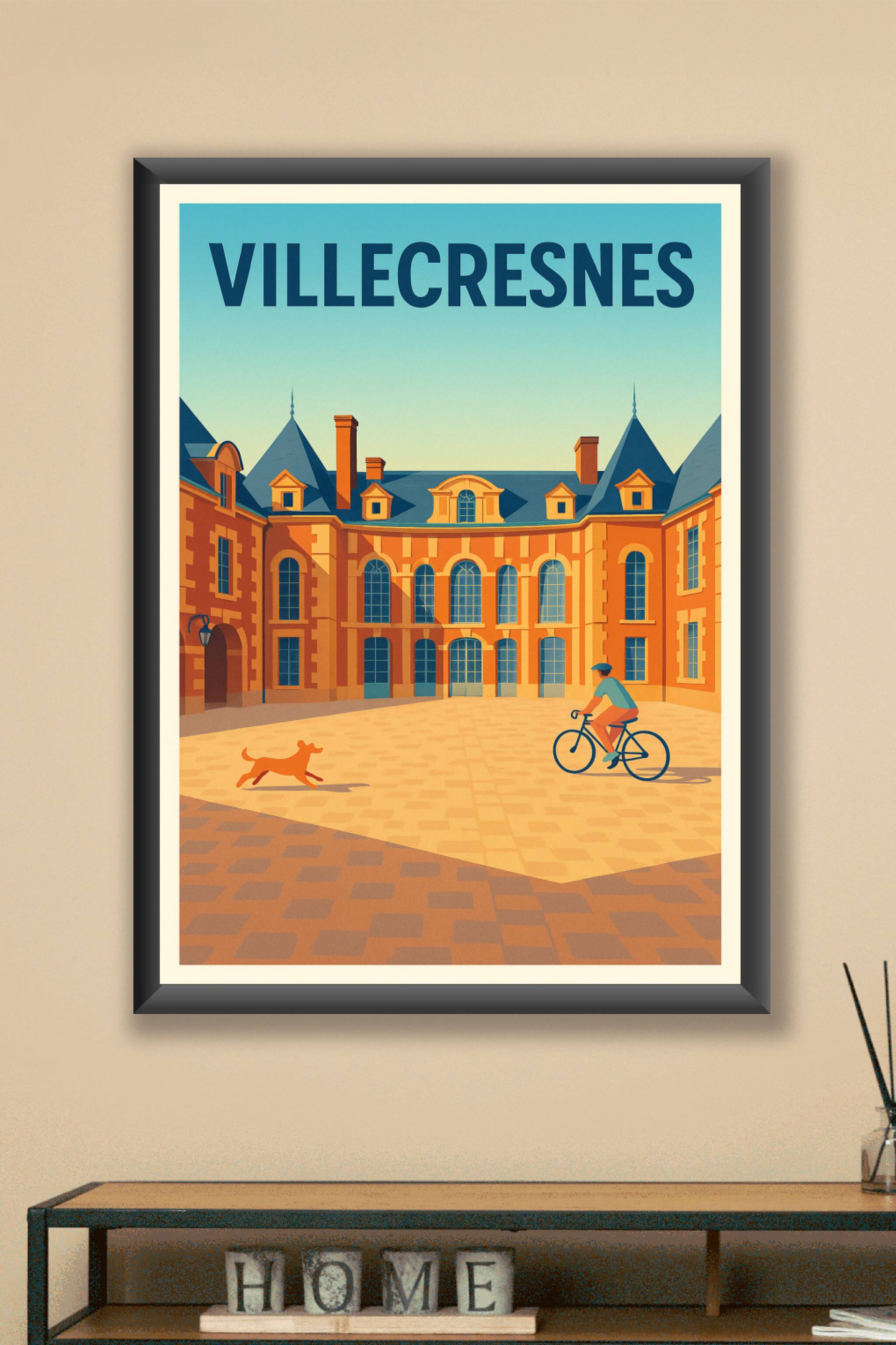Découvrez cette magnifique affiche illustrant une scène paisible et lumineuse dans la charmante ville de Villecresnes. Cette poster représente l’architecture élégante et le cadre de vie chaleureux de cette ville, avec un cycliste qui arpente la cour pavée, accompagné d’un chien joueur. Imprimée en tirage "Fine Art" sur un papier coton 305g de haute qualité, cette affiche offre des couleurs éclatantes et une finesse de détail remarquable. Disponible en plusieurs formats allant du A1 au A4, avec ou sans cadre, ce poster est un choix parfait pour embellir votre intérieur ou offrir un souvenir raffiné aux amateurs de Villecresnes. Profitez d'une impression premium 100% fabriquée en France pour une décoration élégante et durable.