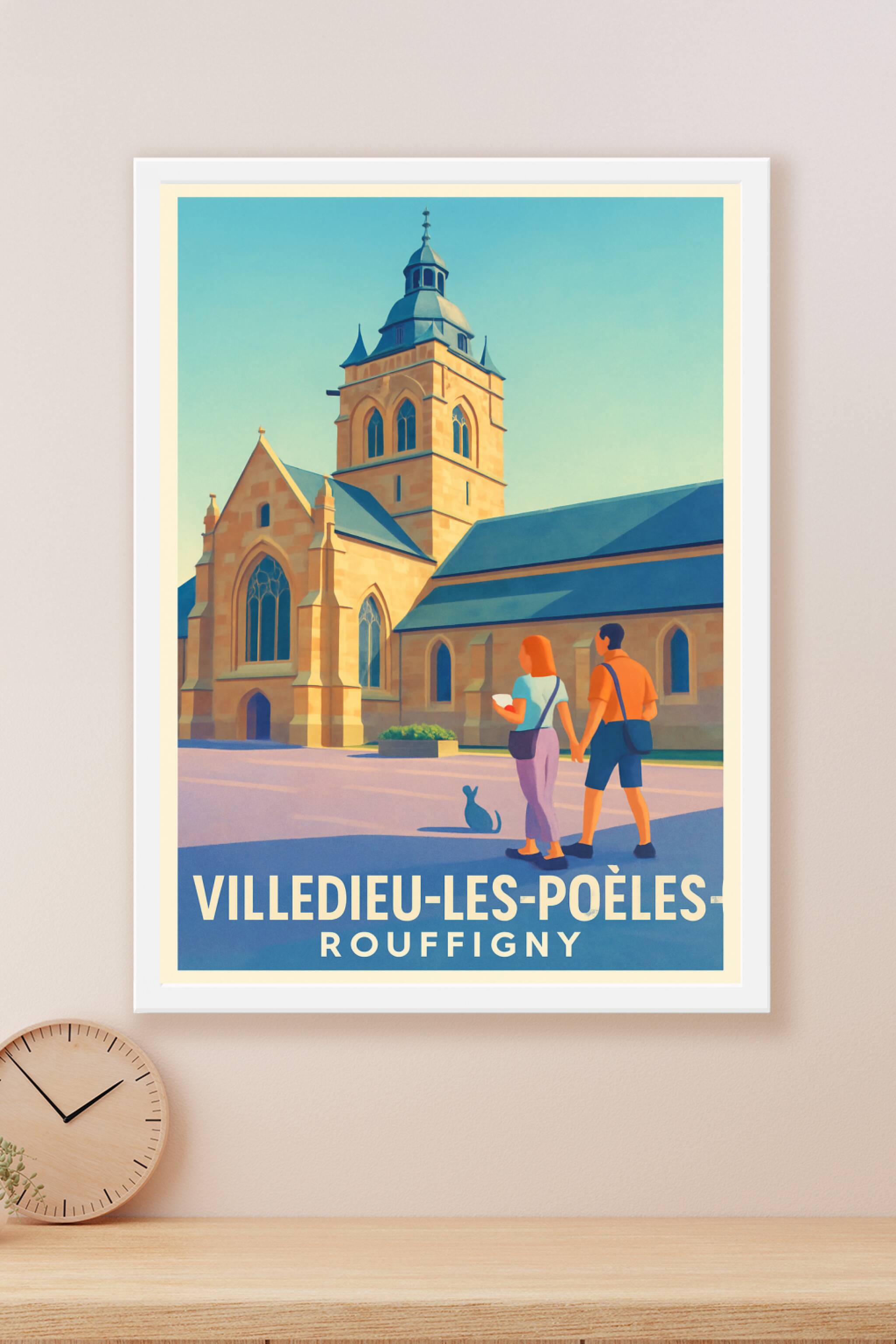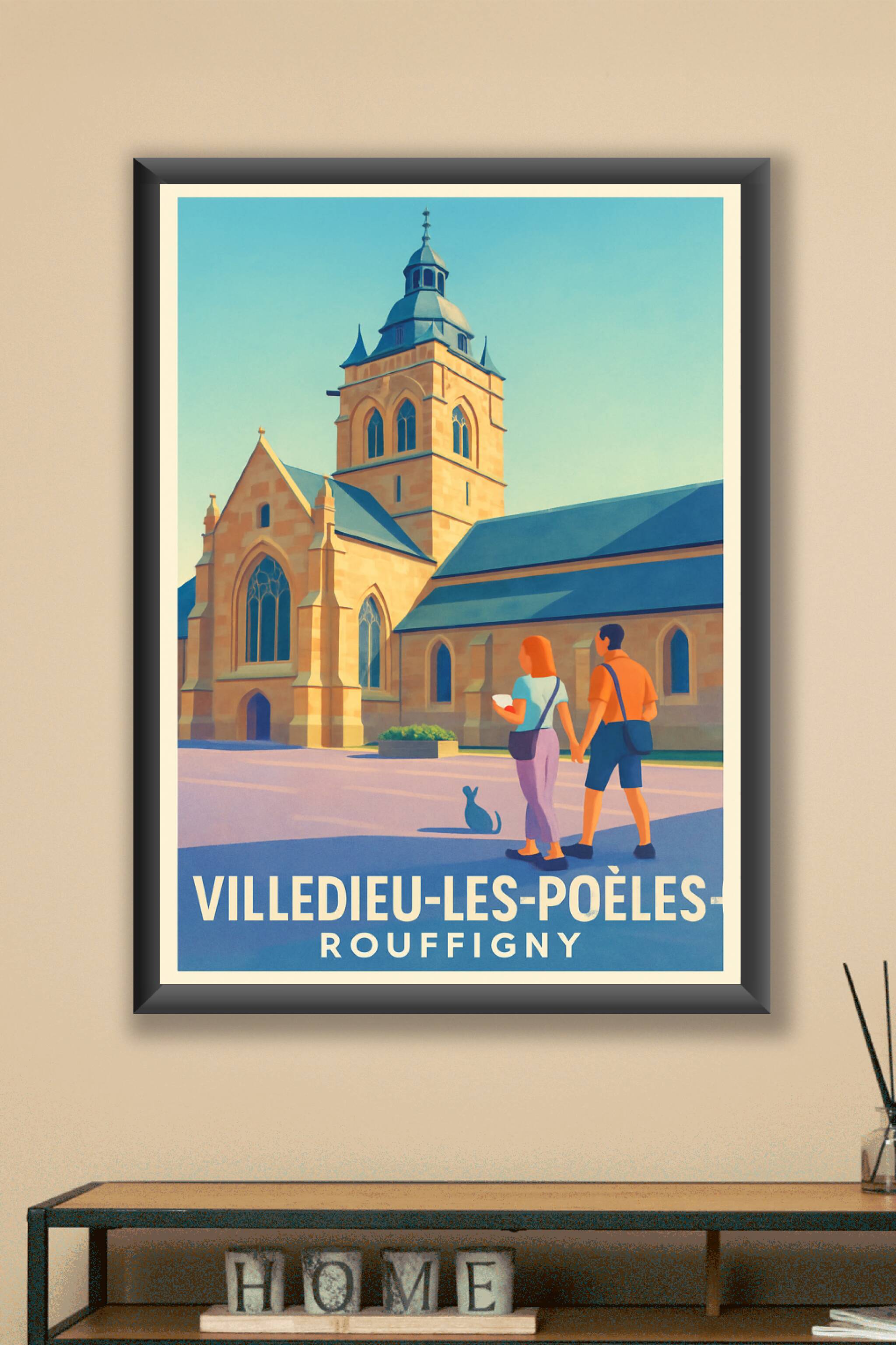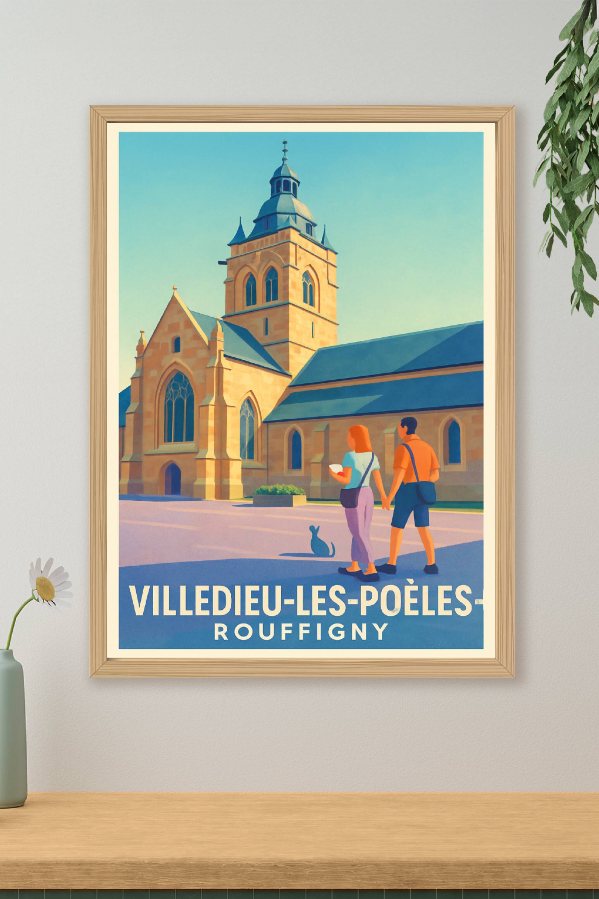 Apportez une touche de charme normand à votre intérieur avec cette affiche illustrée représentant l'église emblématique de Rouffigny à Villedieu-les-Poêles. Cette scène paisible met en avant un couple explorant les rues historiques sous un ciel clair, sublimée par une palette de couleurs douces et lumineuses.Ce poster est disponible en tirage "Fine Art" sur papier 305g coton garantissant une qualité d'impression haut de gamme avec des détails et des couleurs éclatantes. Choisissez parmi plusieurs formats allant de A1 à A4, avec ou sans cadre, pour adapter parfaitement cette affiche à votre espace de vie ou de travail. Une décoration raffinée, idéale pour les amoureux de la Normandie ou les passionnés d'architecture traditionnelle.