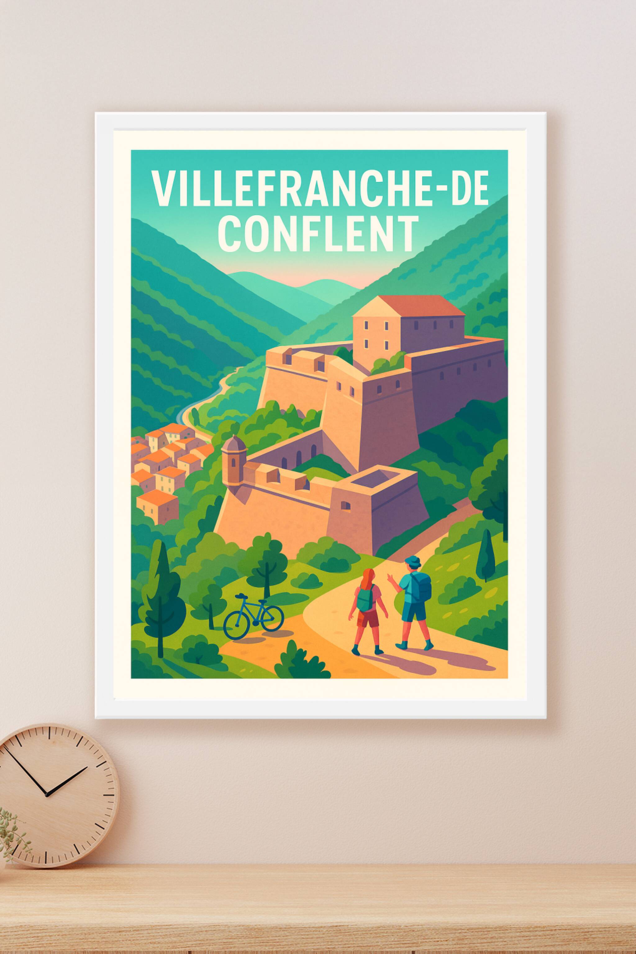Découvrez la beauté intemporelle de Villefranche-de-Conflent avec cette affiche illustrée aux couleurs douces et apaisantes. Ce poster met en scène...