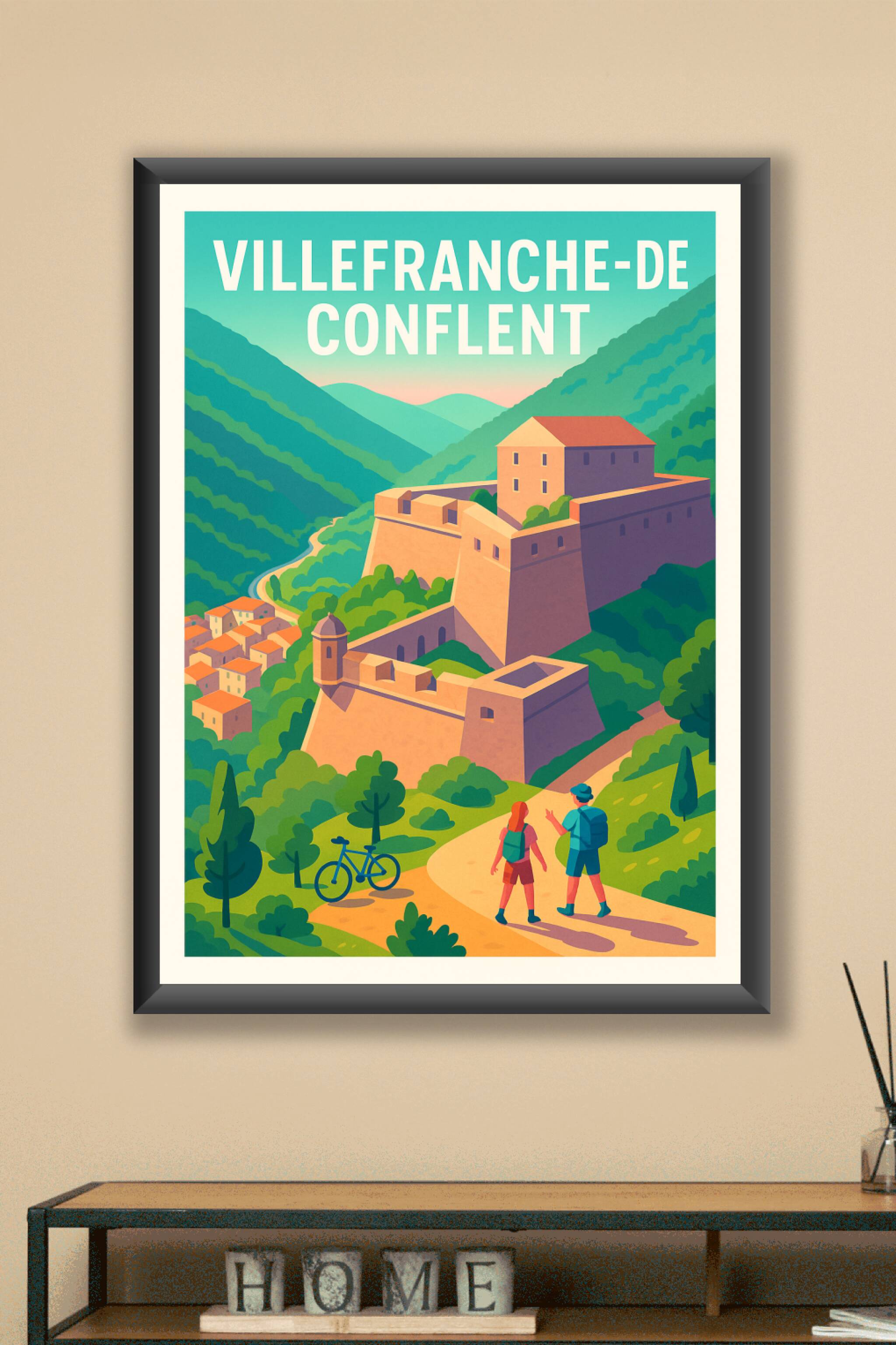 Découvrez la beauté intemporelle de Villefranche-de-Conflent avec cette affiche illustrée aux couleurs douces et apaisantes. Ce poster met en scène la forteresse emblématique nichée dans un paysage de montagnes verdoyantes, invitant à l'aventure et à la découverte.Nos tirages "Fine Art" sont réalisés sur un papier 305g coton de haute qualité, garantissant des couleurs éclatantes et une durabilité optimale. Disponible en formats A1 à A4, avec ou sans cadre, cette affiche sublime vos murs en apportant une touche naturelle et culturelle à votre décoration intérieure. Chaque poster est imprimé en France avec une qualité d'impression premium, parfait pour offrir ou enrichir votre collection personnelle.