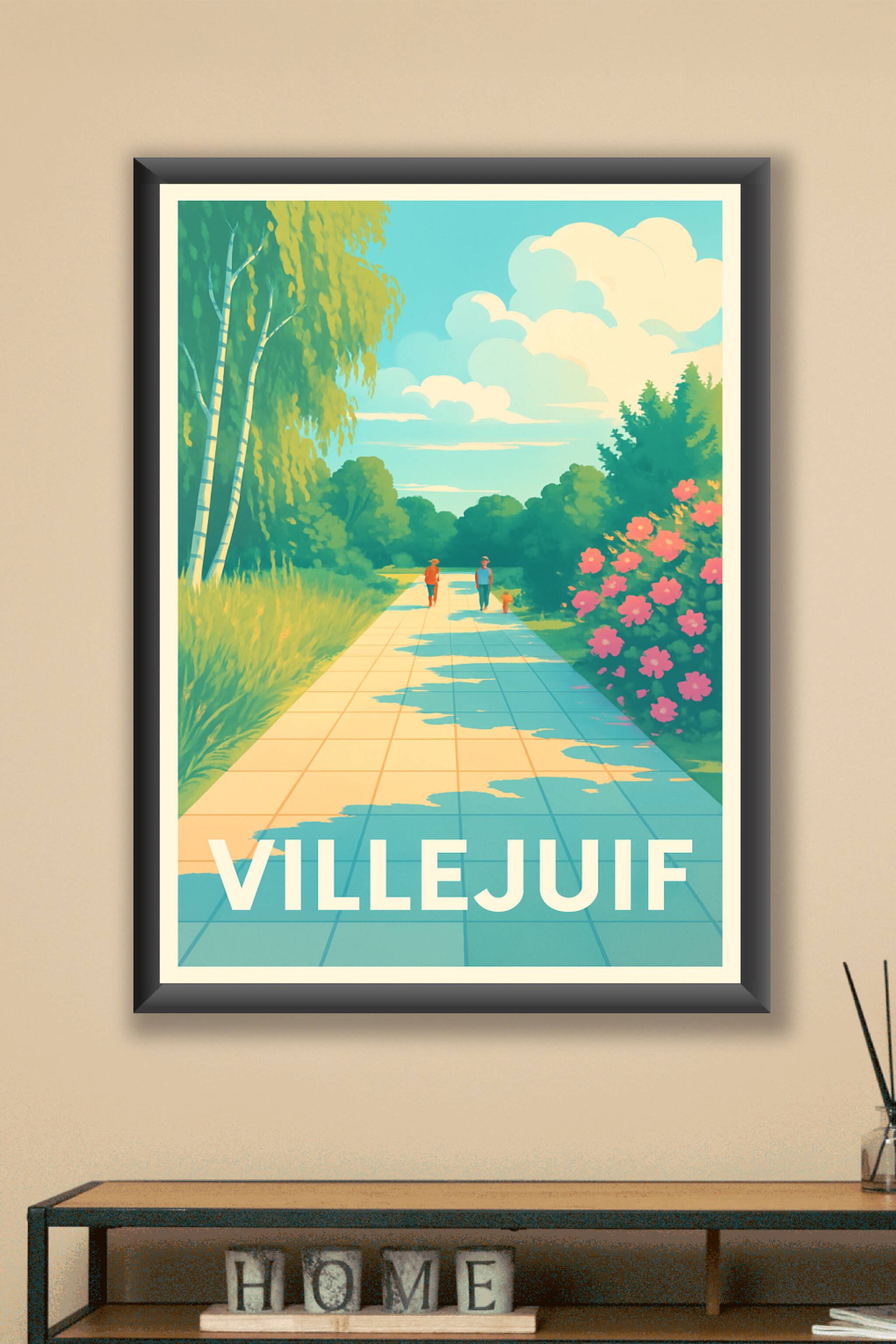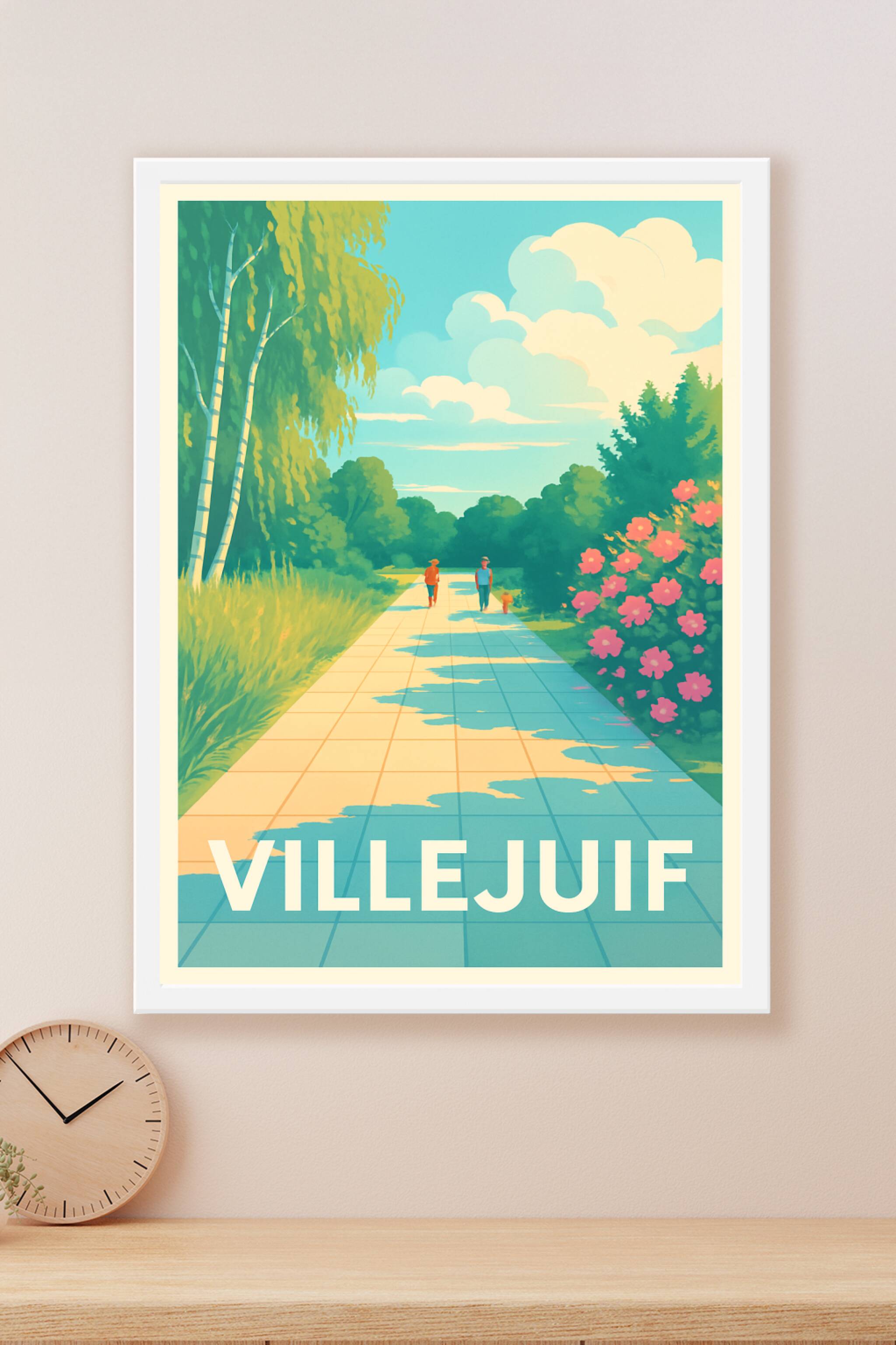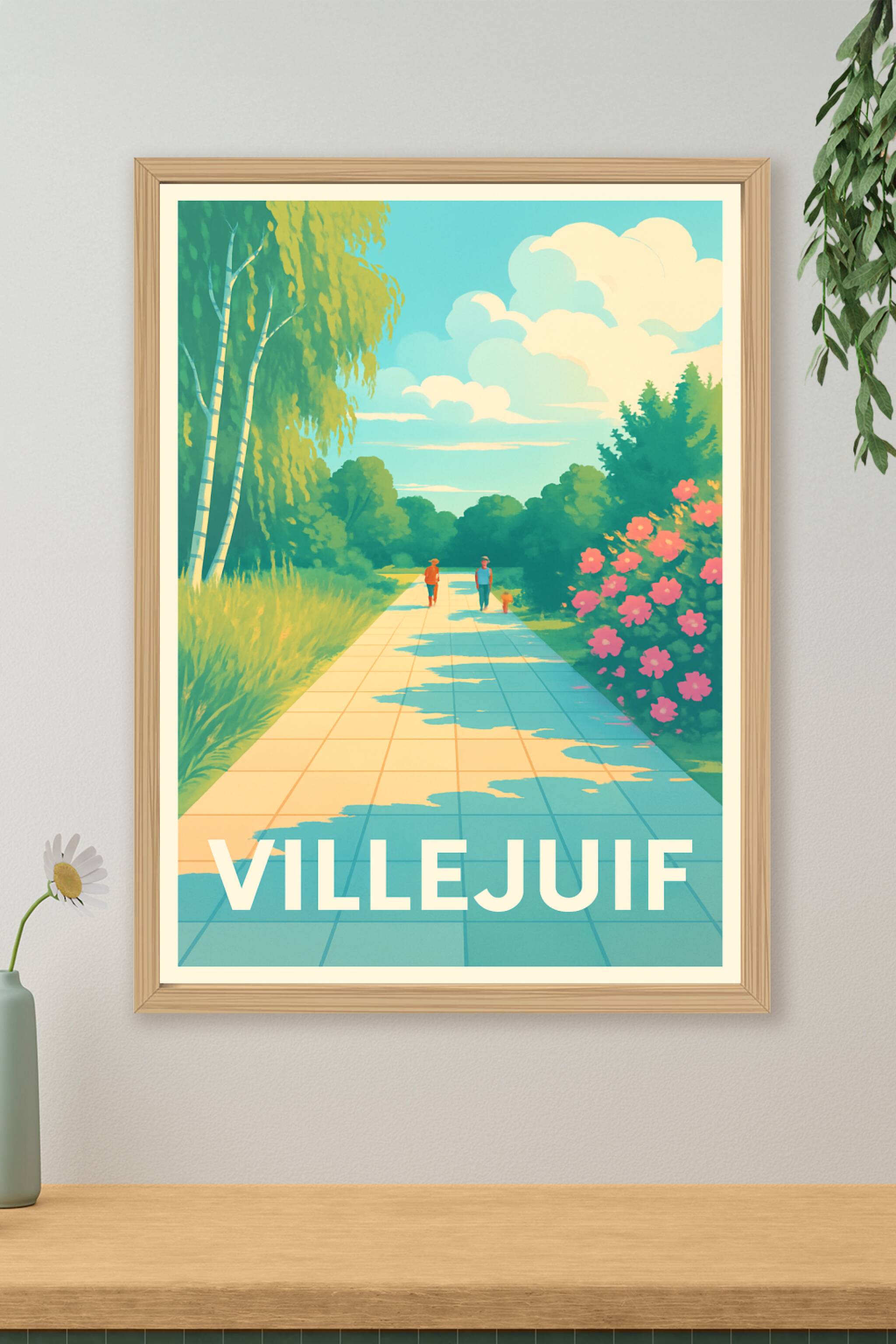 Découvrez la douceur d'une balade printanière à Villejuif avec cette affiche au style illustratif vibrant et paisible. Ce poster met en scène un ch...