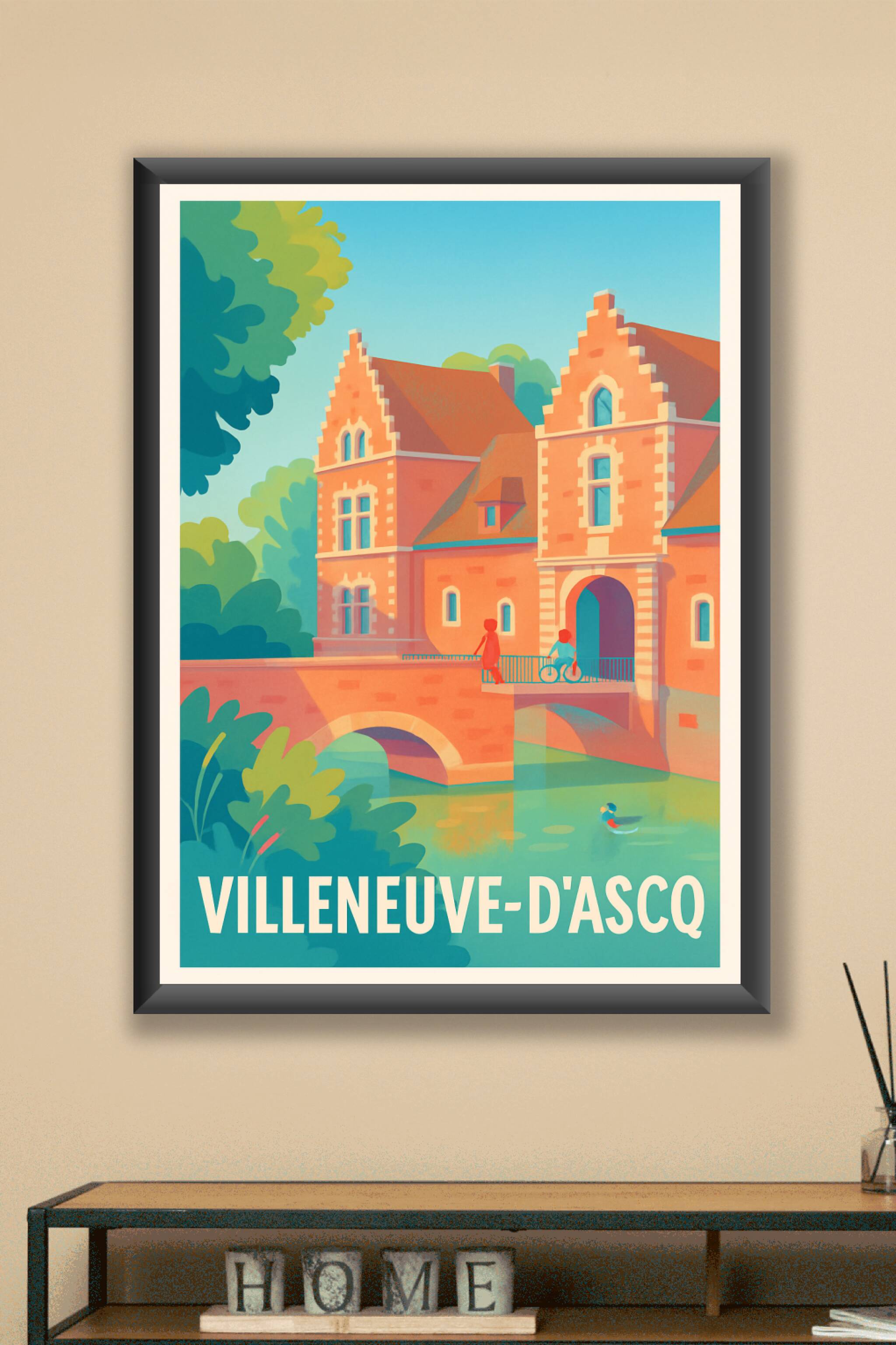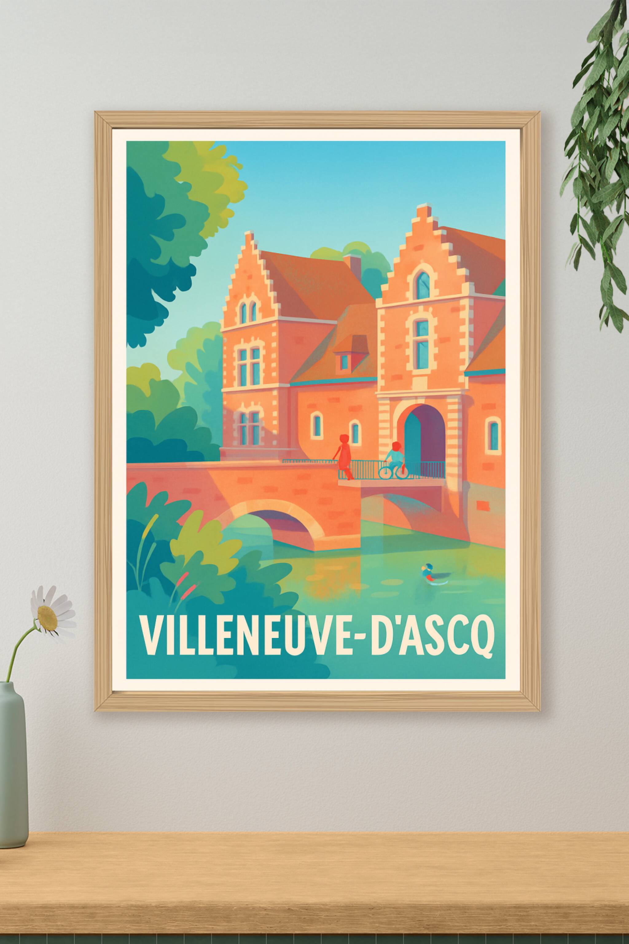 Découvrez cette superbe affiche illustrée qui capture l'élégance architecturale et la douceur de vivre à Villeneuve-d'Ascq. Ce poster met en lumièr...
