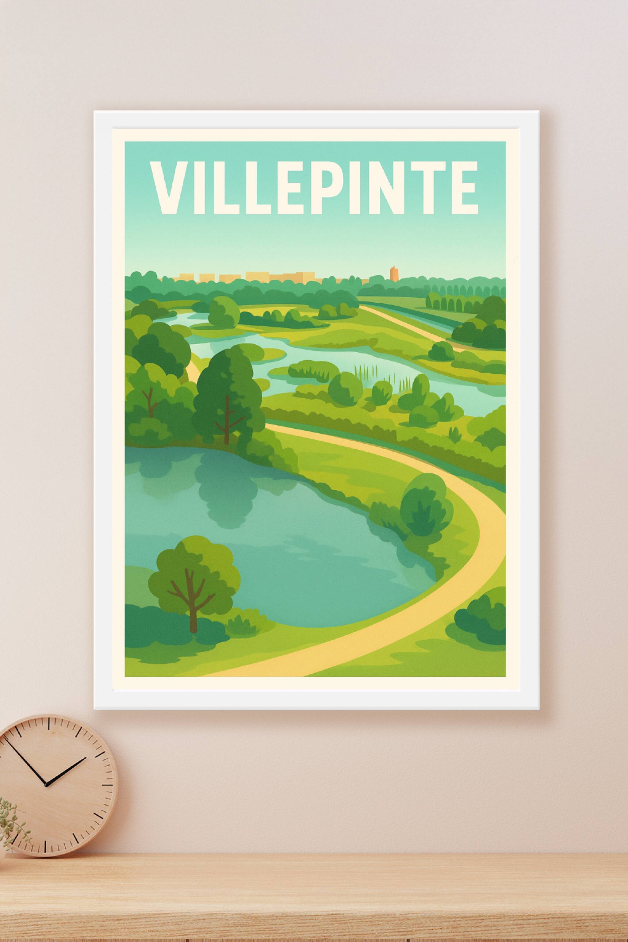 Découvrez le charme bucolique de Villepinte avec cette affiche illustrée qui capture la douceur des paysages verdoyants et des sentiers sinueux longeant les lacs. Ce poster invite à un véritable moment de détente et de contemplation, parfait pour apporter une touche apaisante à votre décoration intérieure. Imprimé en tirage "Fine Art" sur papier de qualité 305g coton, cette affiche garantit des couleurs éclatantes et une longue tenue dans le temps. Disponible du format A1 à A4, avec ou sans cadre, elle s'adapte parfaitement à tous les espaces, que ce soit pour votre salon, bureau ou chambre. Profitez d'une impression haut de gamme 100% fabriquée en France pour sublimer votre intérieur ou offrir un souvenir élégant à un amateur de paysages naturels et de cette belle ville.