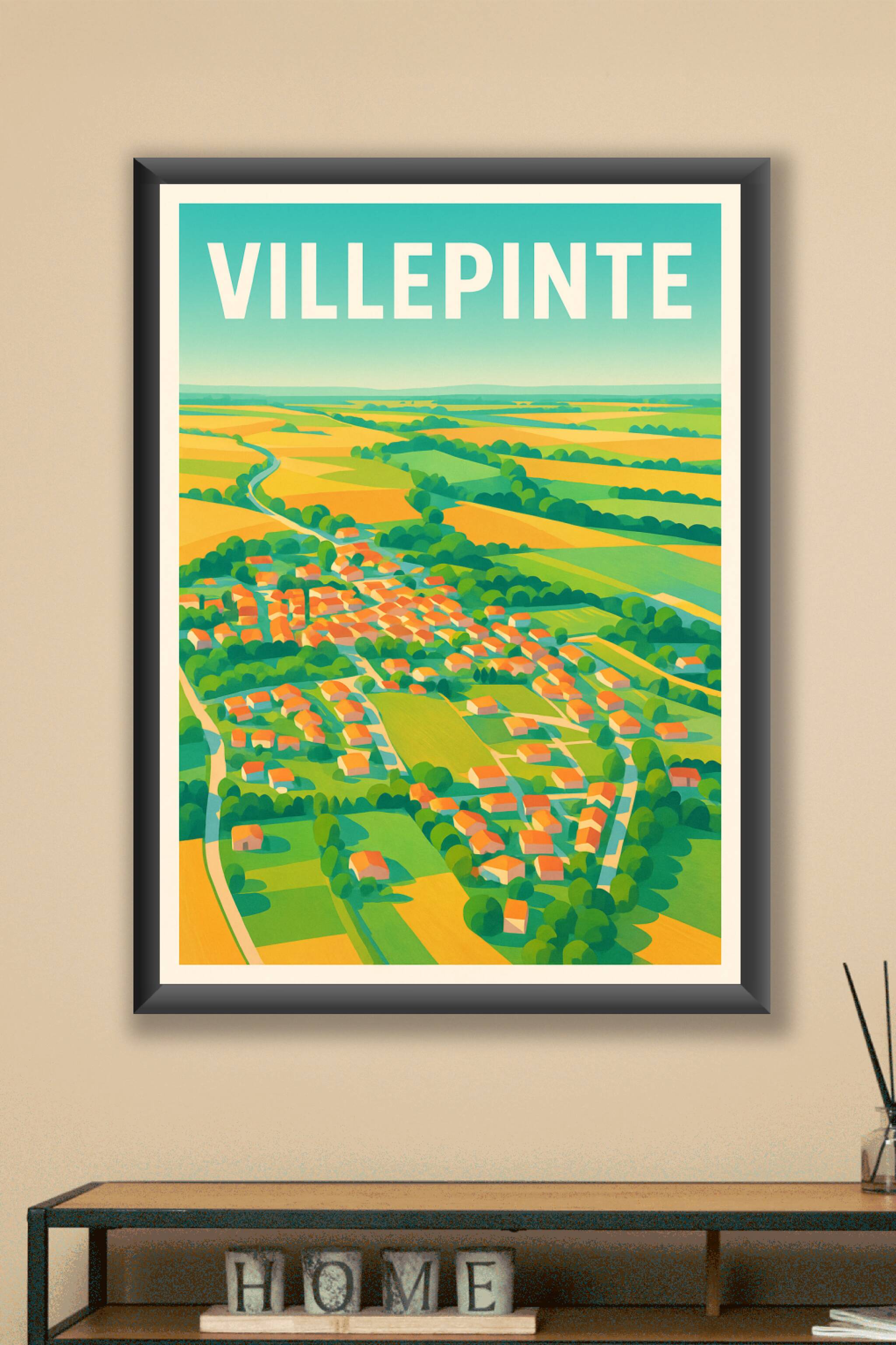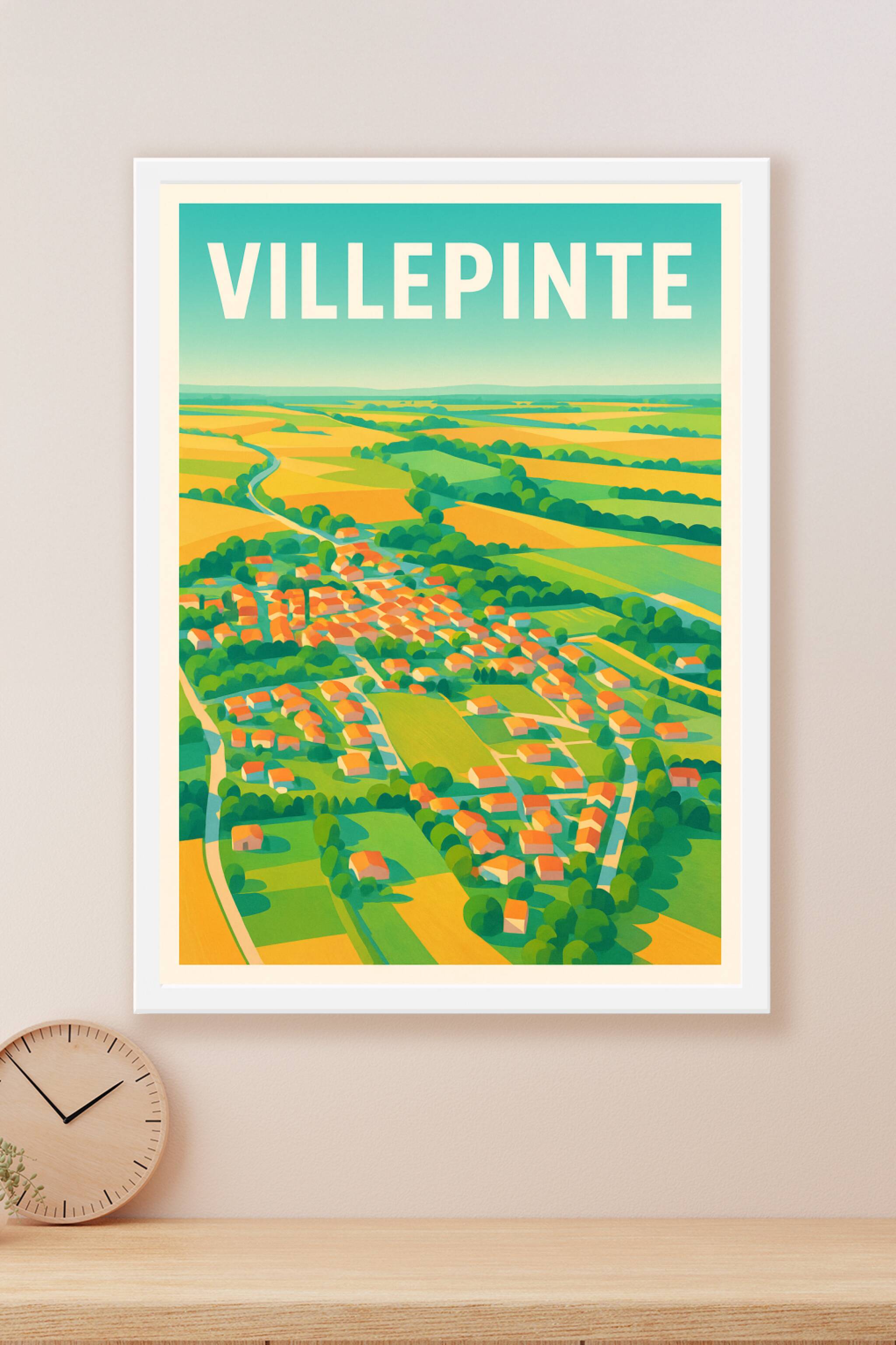 Découvrez la douceur bucolique de Villepinte à travers cette affiche au style coloré et apaisant. Cette vue aérienne minimaliste met en lumière les...