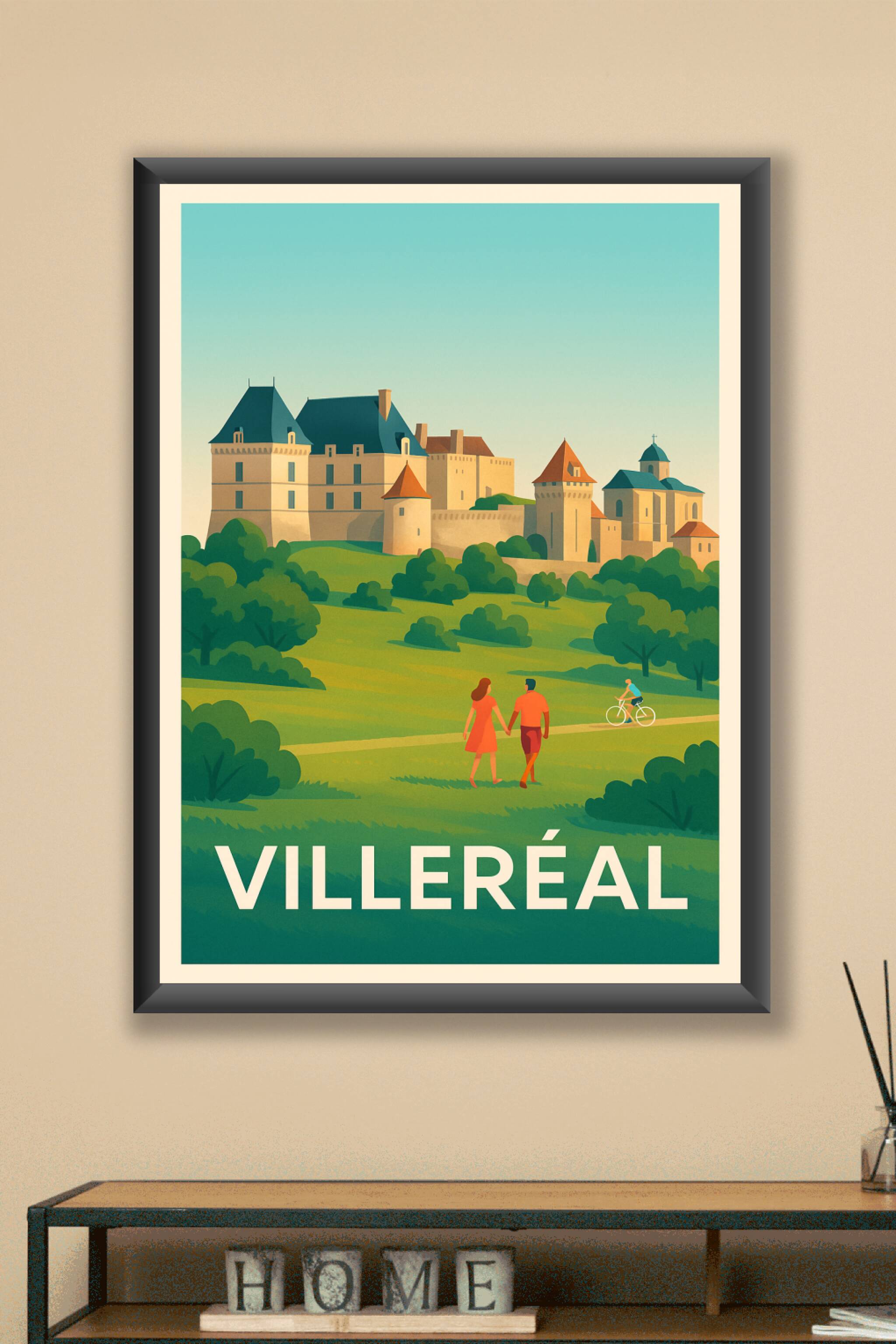 Découvrez l'élégance intemporelle de Villeréal avec cette affiche illustrée mettant en scène ses remparts et son architecture médiévale, entourés d’un paysage verdoyant et paisible. Ce poster transporte l’atmosphère romantique et pittoresque de cette bastide du Sud-Ouest de la France dans votre intérieur.Cette affiche est réalisée en tirage "Fine Art" sur papier 305g coton, garantissant une qualité d'impression exceptionnelle, des couleurs vives et une durabilité optimale. Disponible en plusieurs formats, de A1 à A4, avec ou sans cadre, ce poster s'adapte parfaitement à tous les espaces de vie.Offrez-vous ou offrez un souvenir authentique de Villeréal avec ce tirage premium 100% fabriqué en France, idéal pour sublimer votre décoration ou compléter votre collection d’affiches.