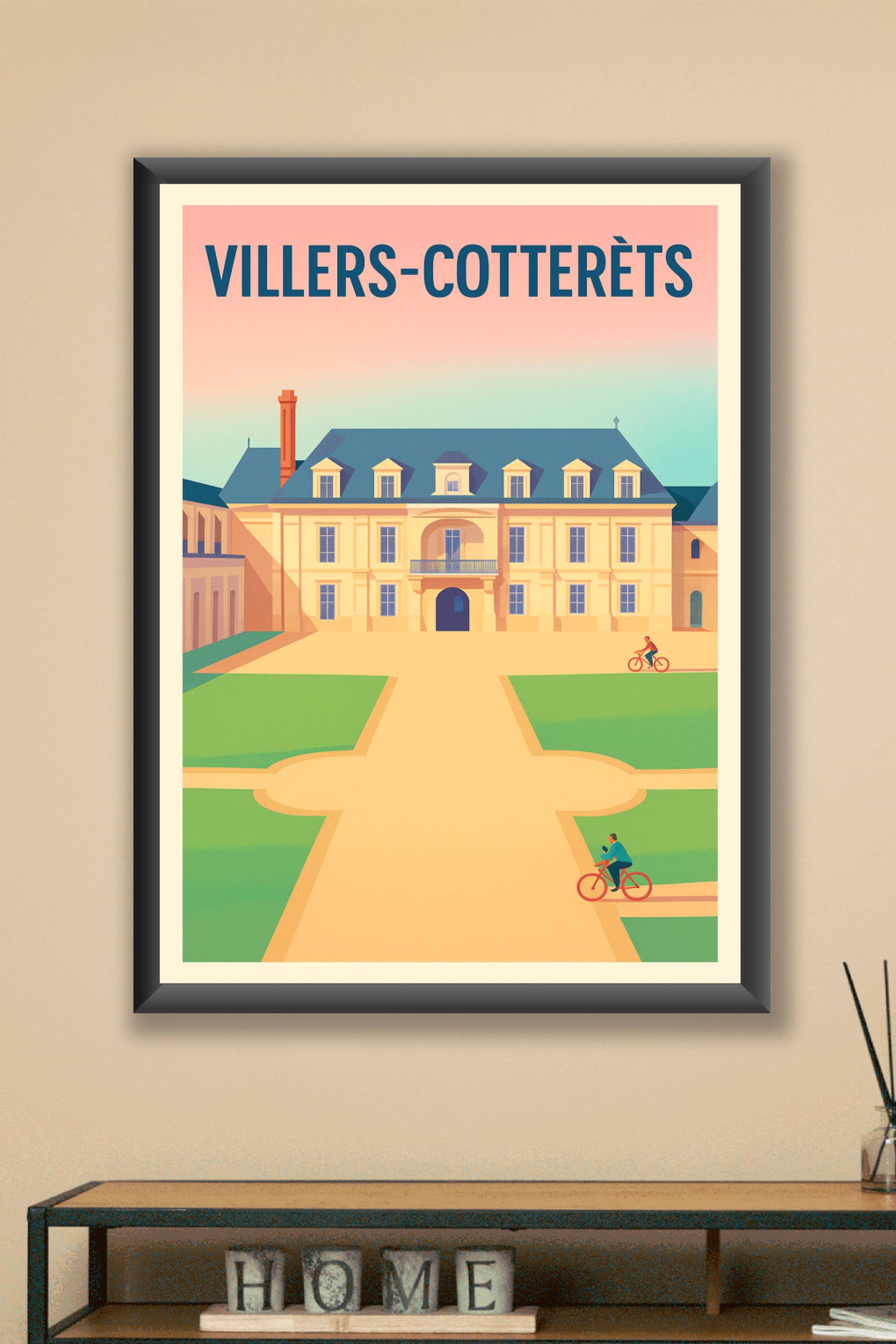 Découvrez l'élégance intemporelle de Villers-Cotterêts à travers cette affiche illustrée qui met en valeur son architecture classique et ses espaces verts apaisants. Ce poster capture la douceur de vivre dans cette charmante ville, où les balades à vélo rythment le quotidien.Cette affiche est imprimée en tirage "Fine Art" sur papier 305g coton, garantissant une qualité d'impression exceptionnelle et des couleurs éclatantes. Disponible en formats A1 à A4, avec ou sans cadre, ce poster apportera une touche d'art et d'authenticité à votre décoration intérieure. Offrez-vous une pièce unique qui célèbre le charme français, 100% fabriquée en France.