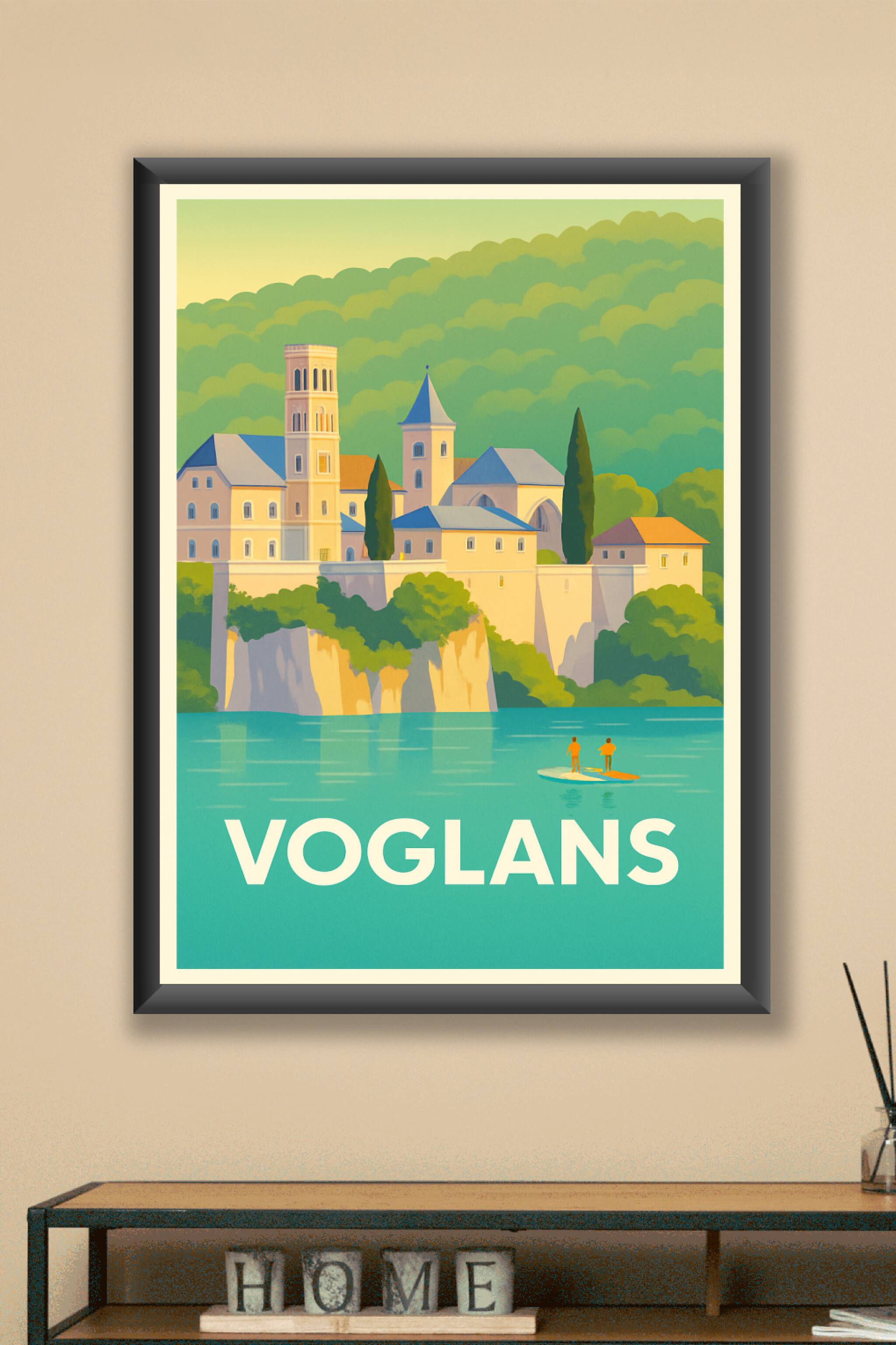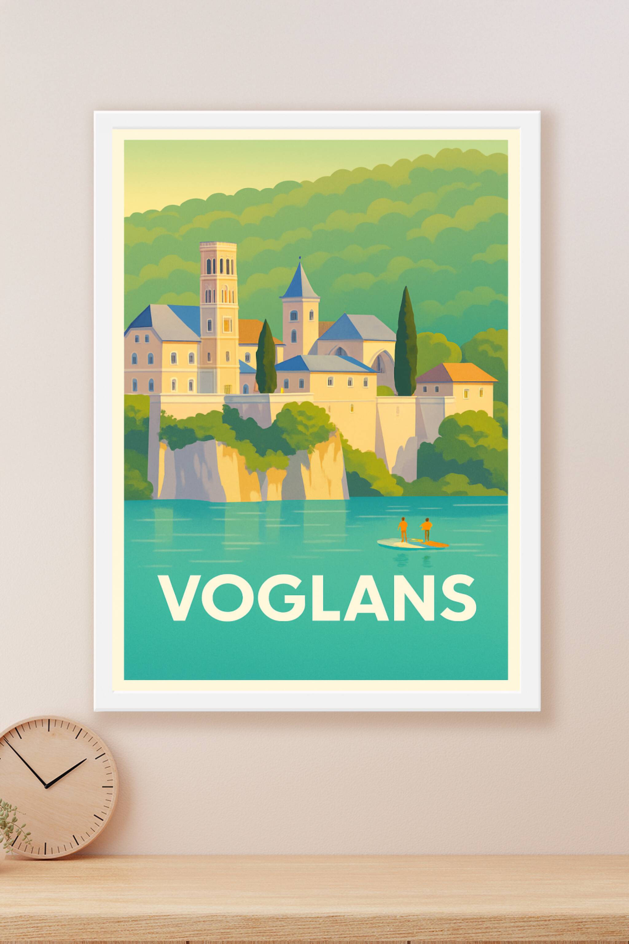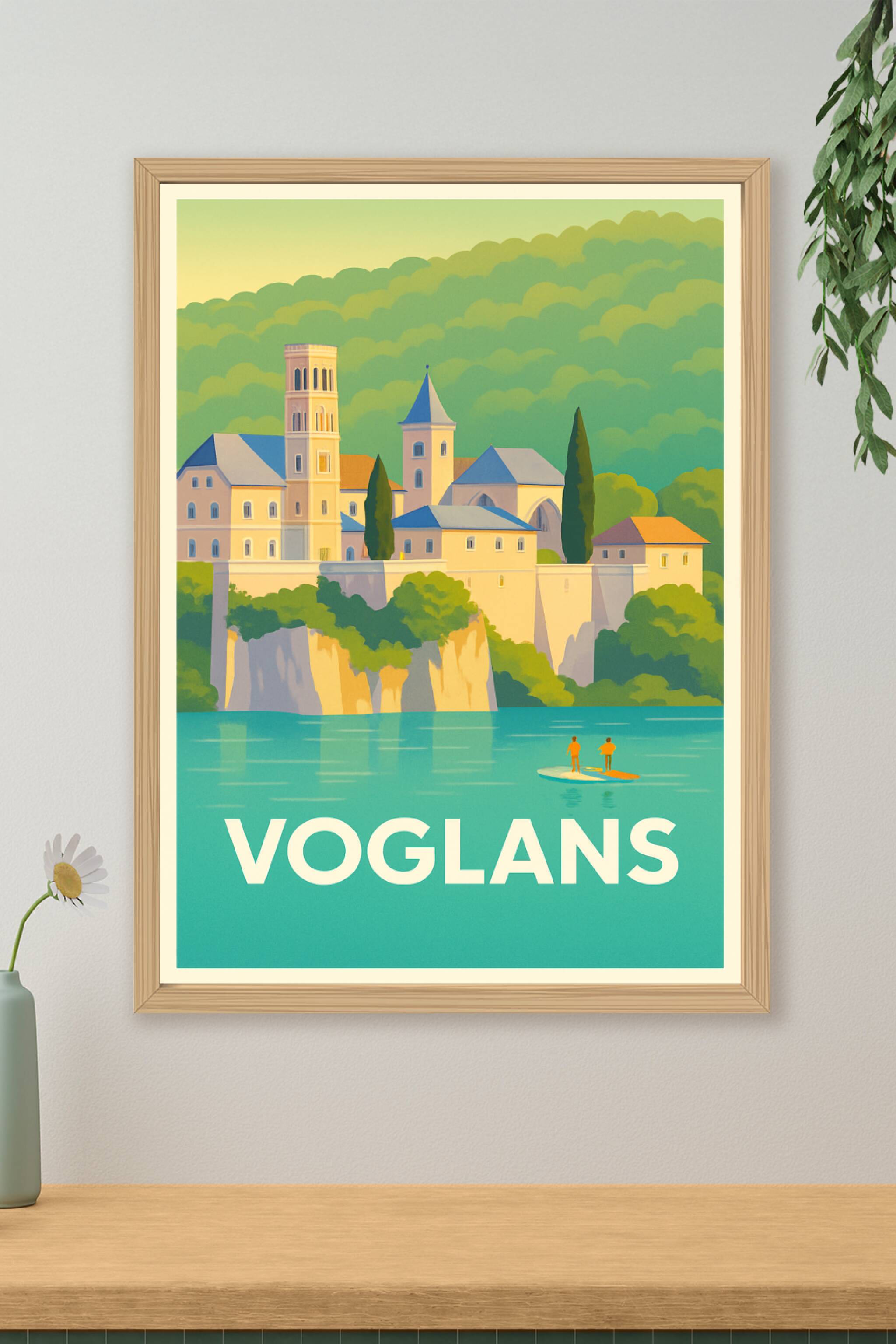 Découvrez l'atmosphère sereine de Voglans avec cette affiche élégante illustrant ses bâtisses typiques et son paysage naturel enchanteur. Ce poster...