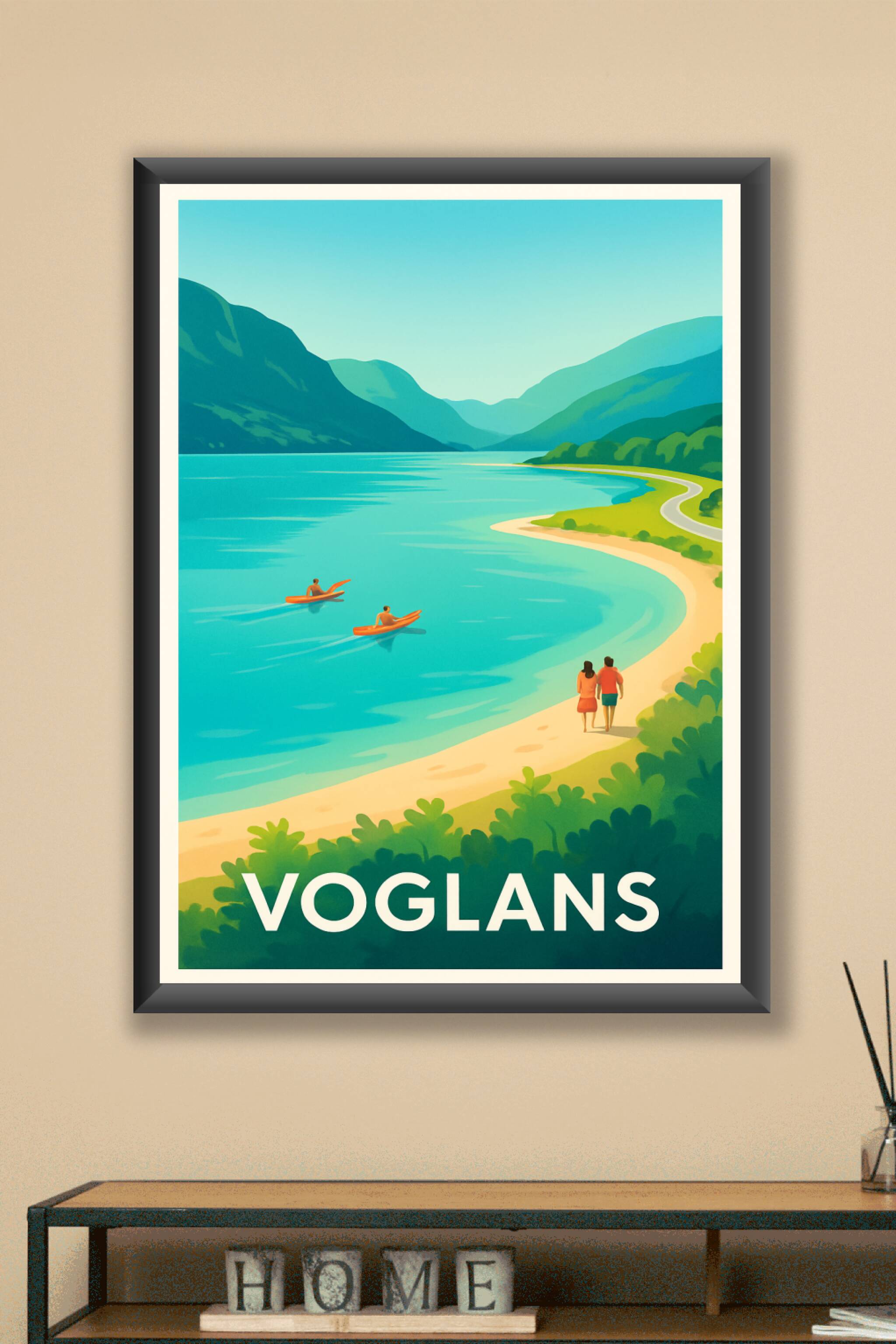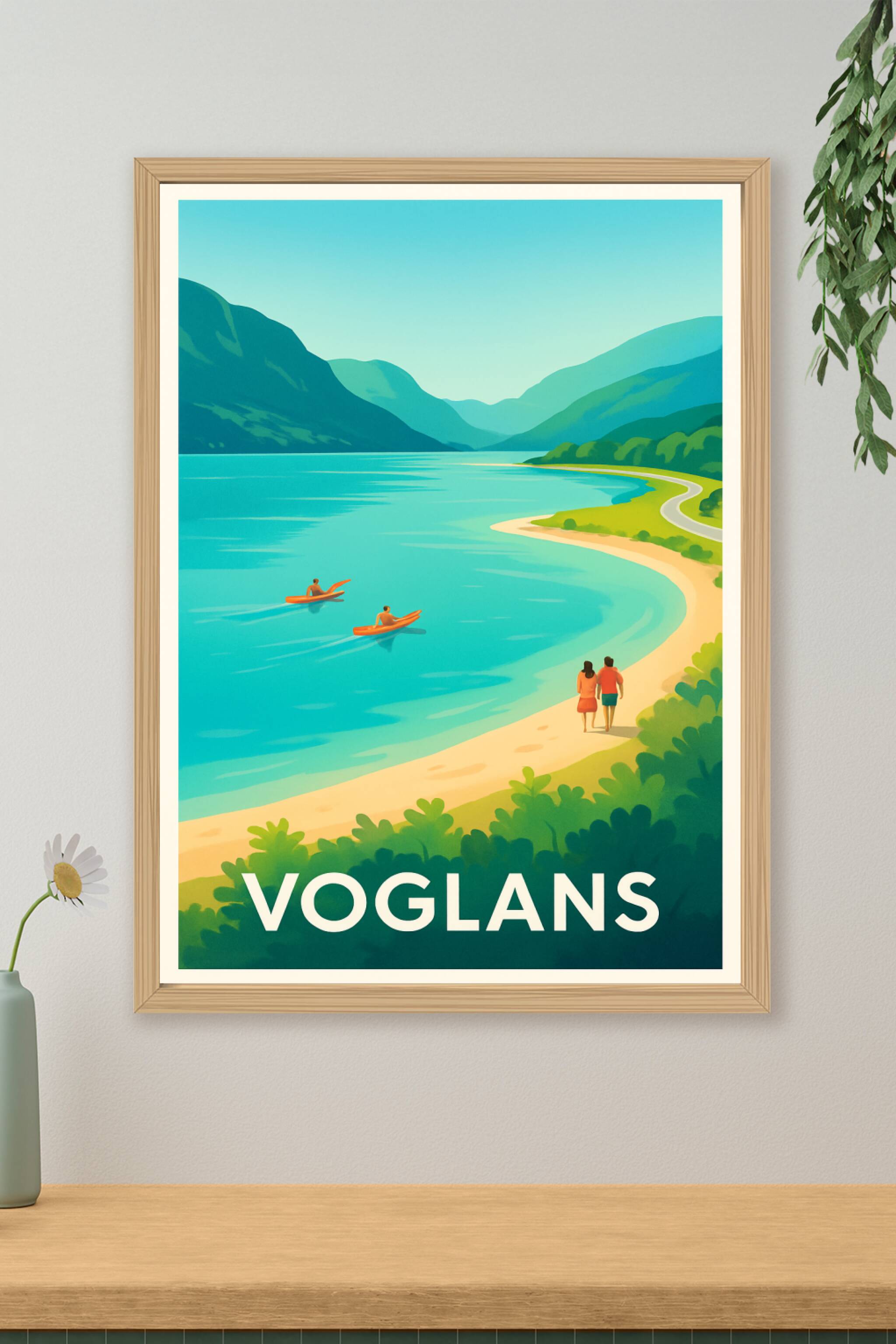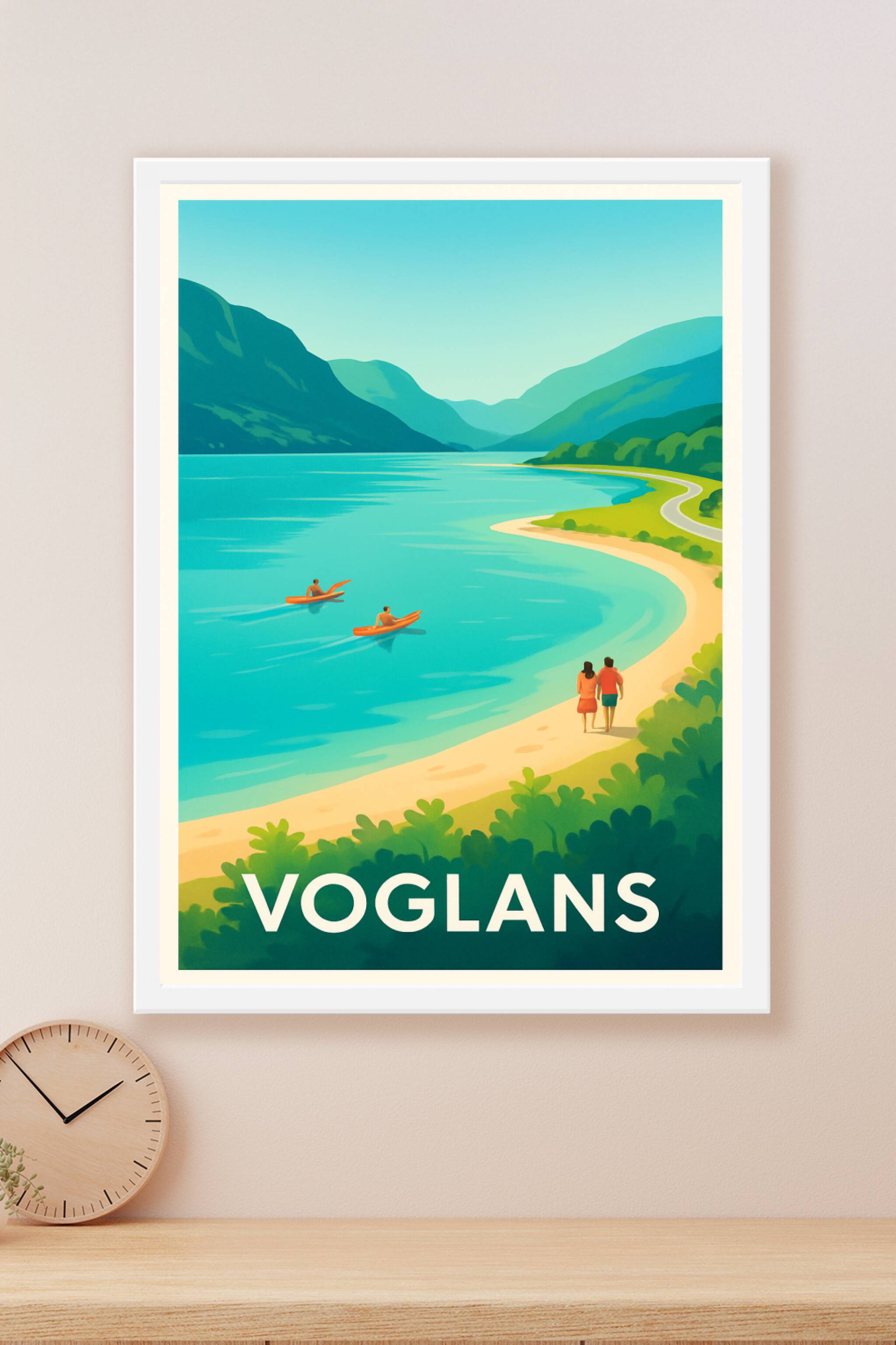 Découvrez la sérénité des eaux calmes et des paysages apaisants de Voglans avec cette superbe affiche illustrée au style vintage. Ce poster met en ...