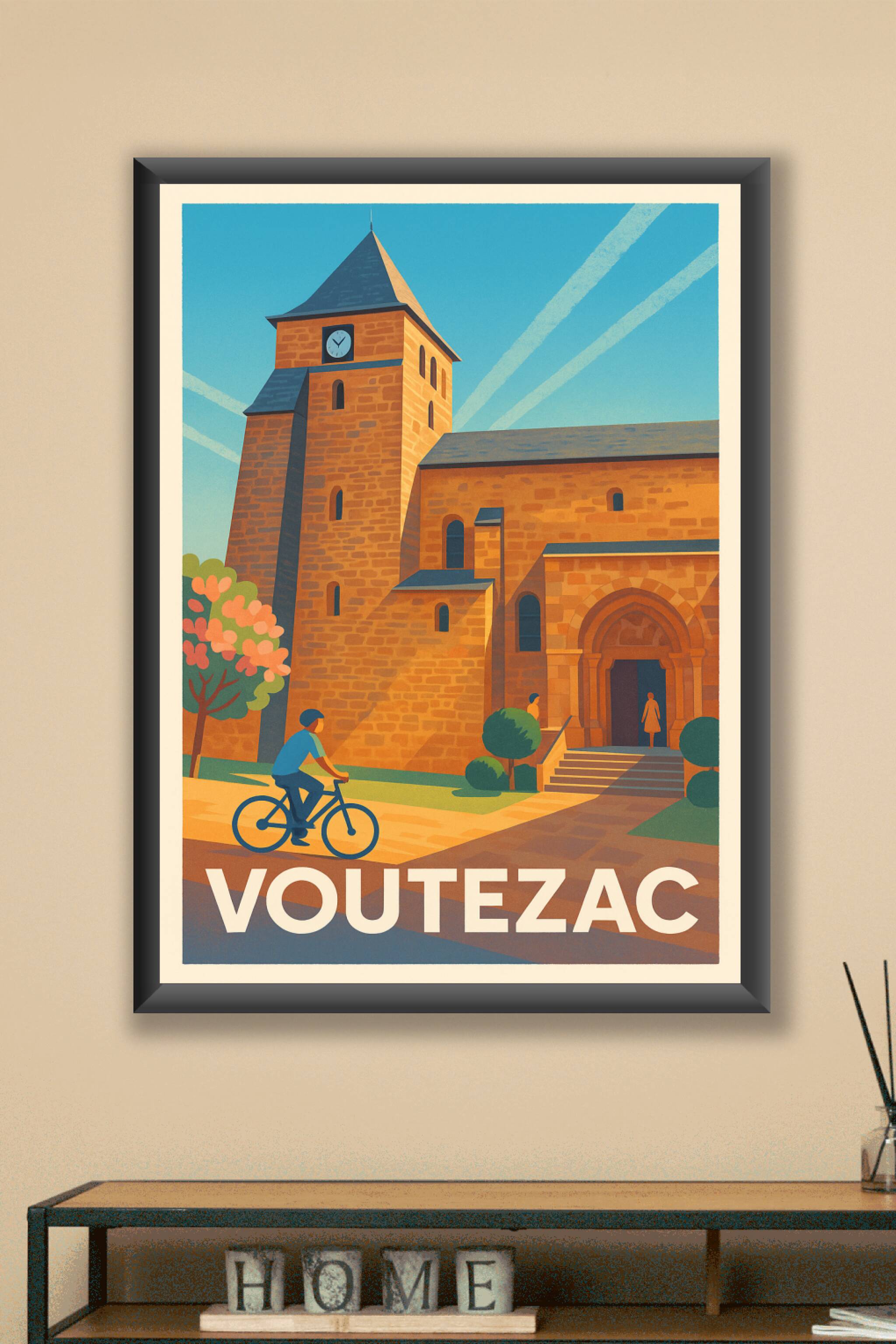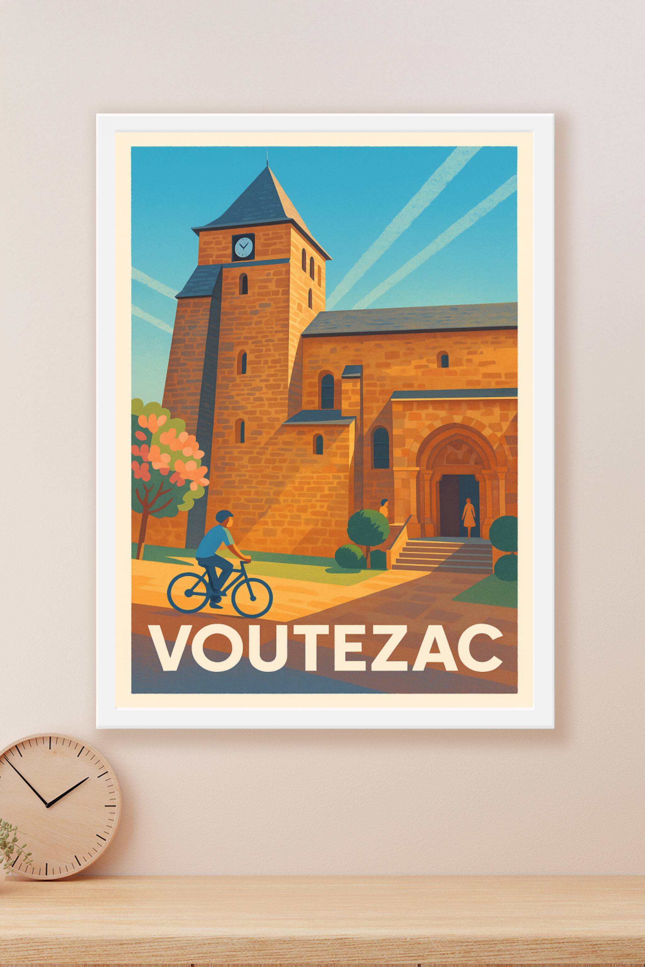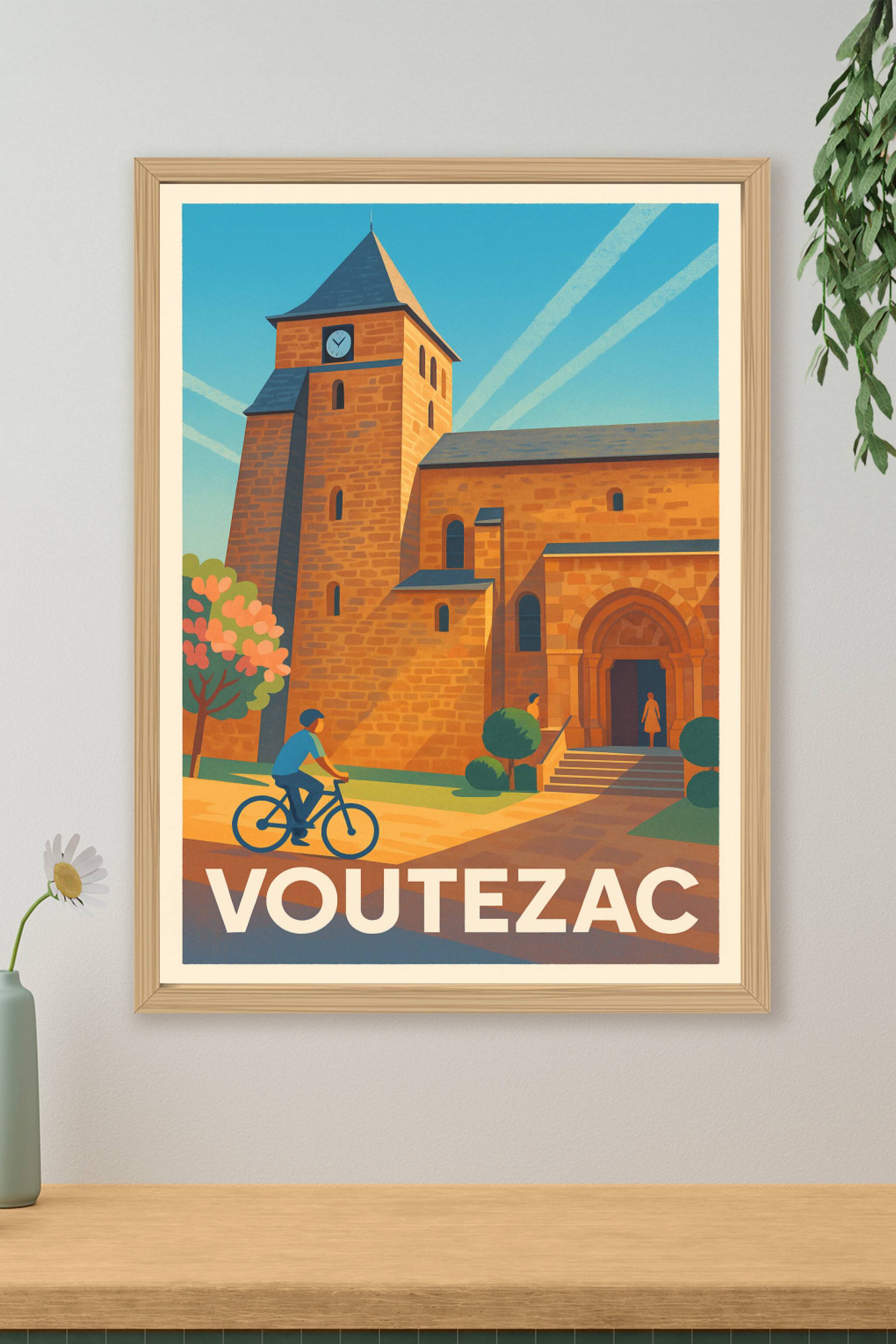Apportez une touche de douceur et d'authenticité à votre intérieur avec cette affiche illustrée représentant un monument emblématique de Voutezac s...