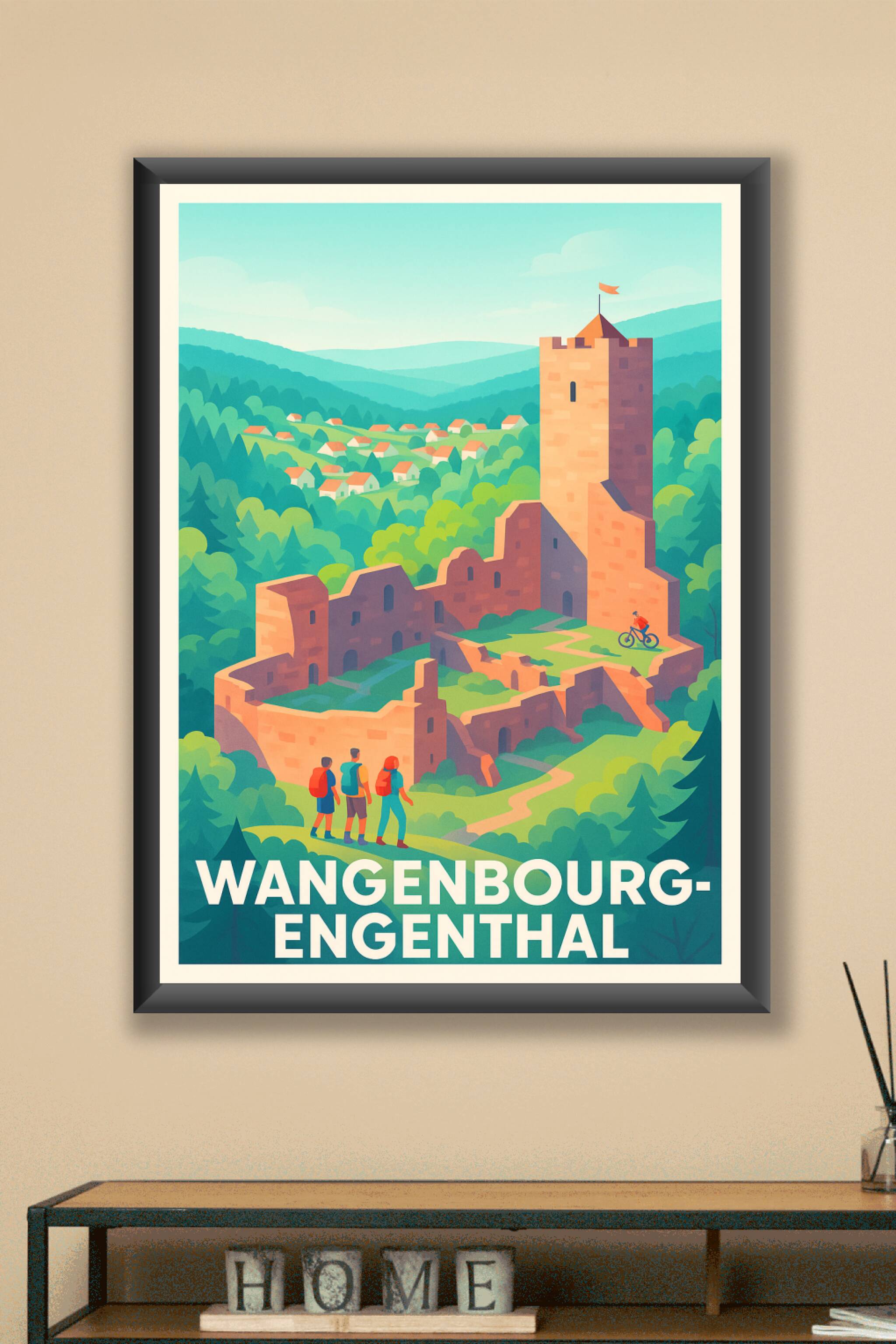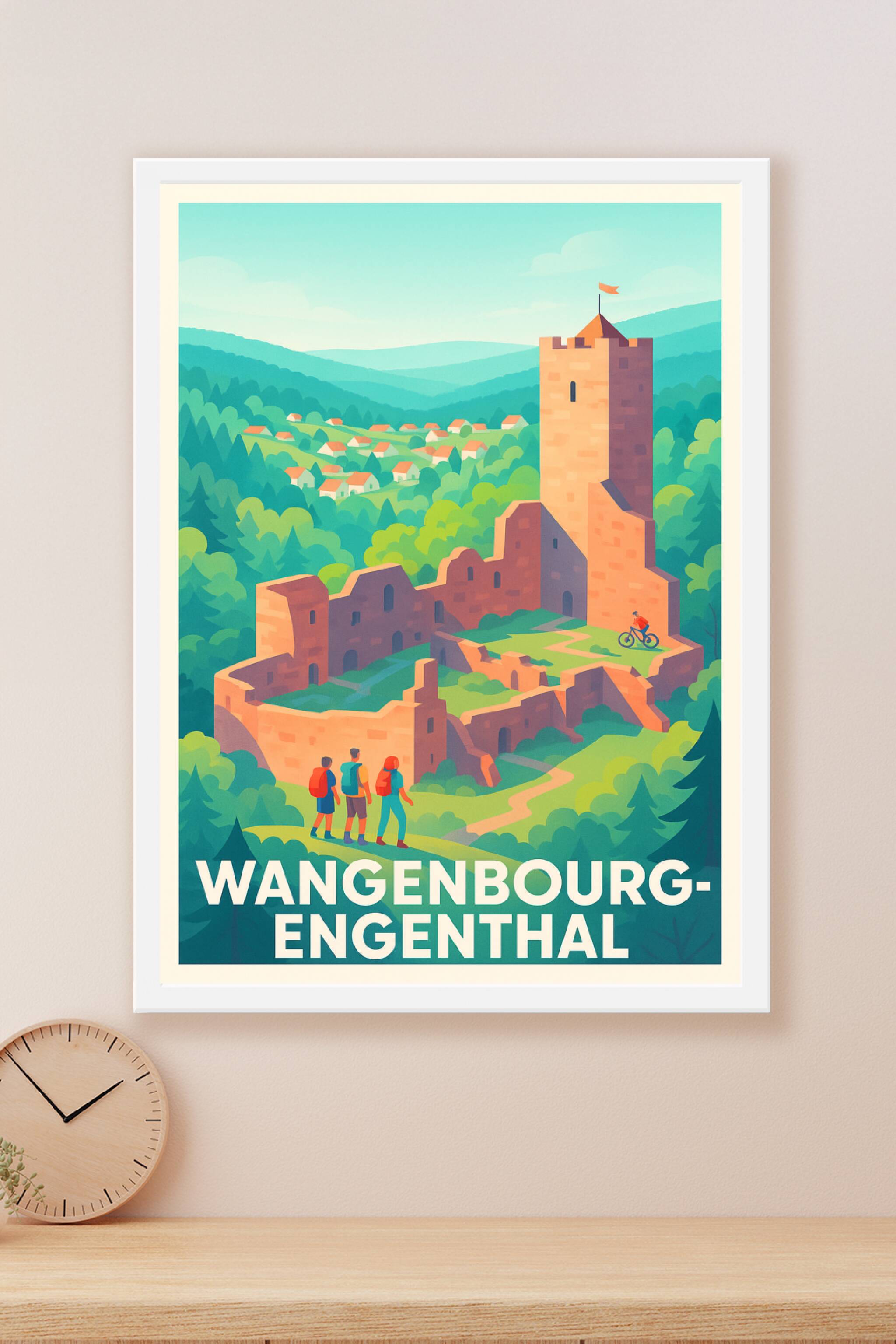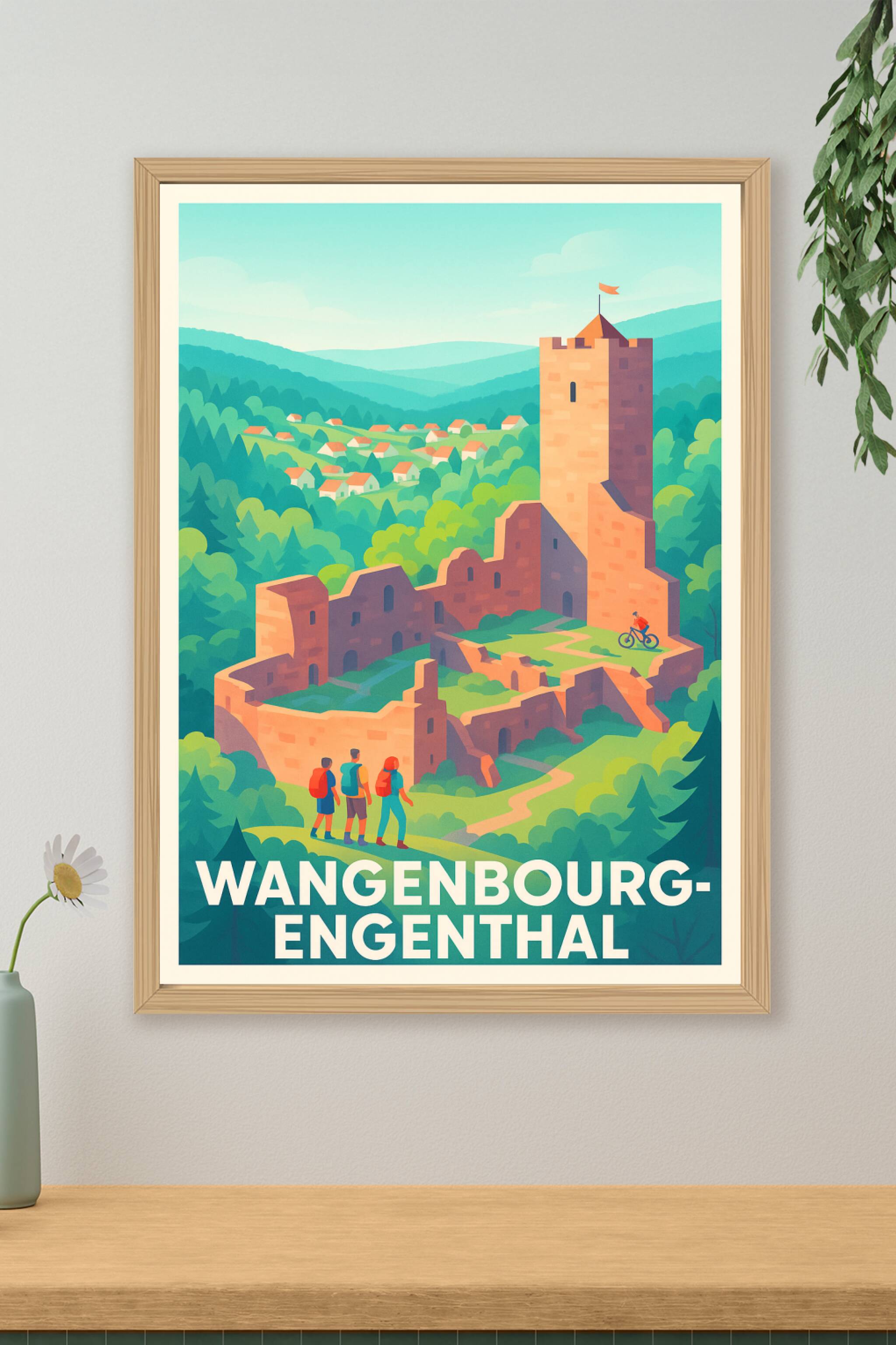 Découvrez l'affiche qui vous transporte dans le cadre paisible et enchanteur de Wangenbourg-Engenthal, avec ses ruines médiévales emblématiques nic...