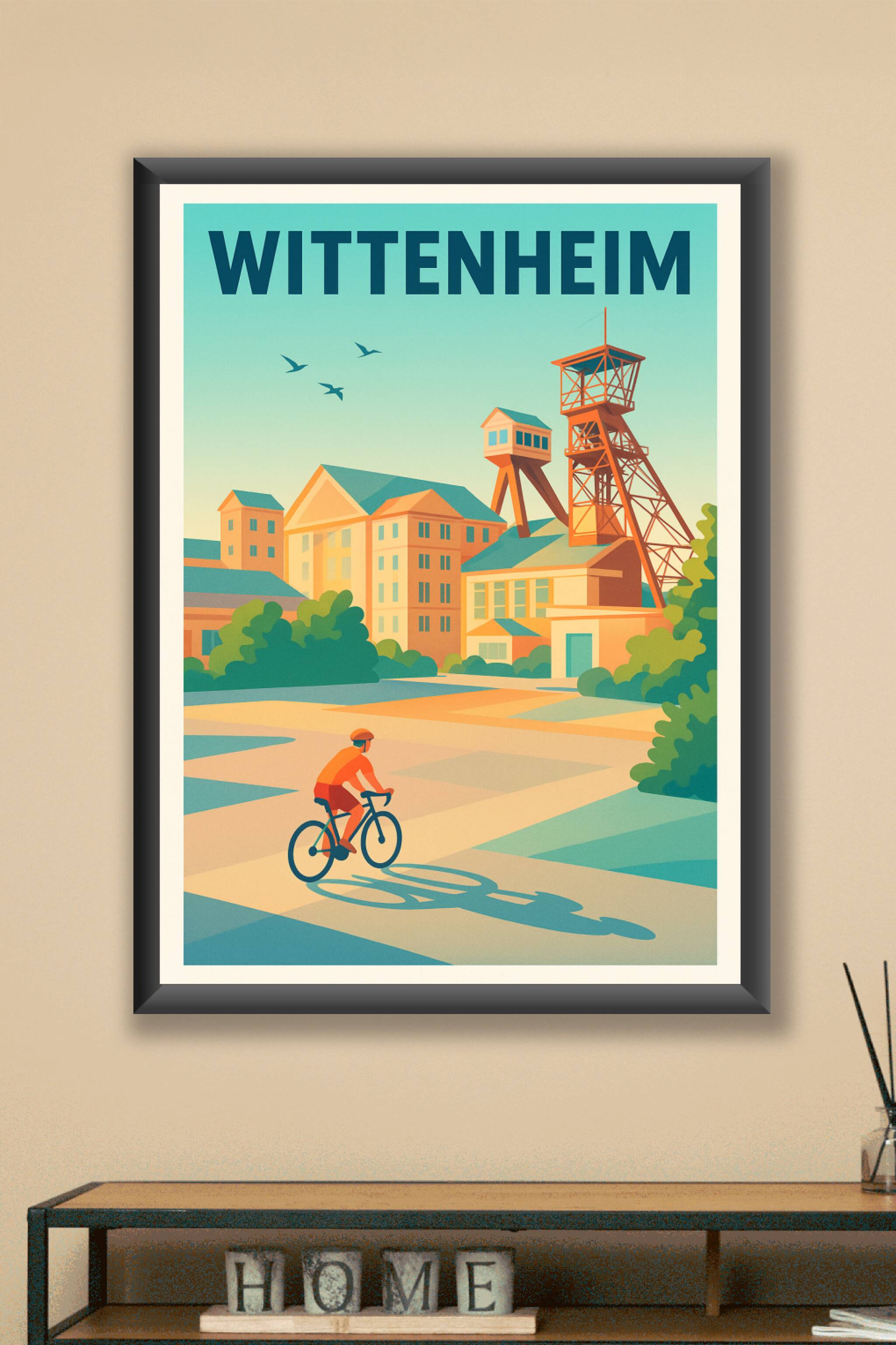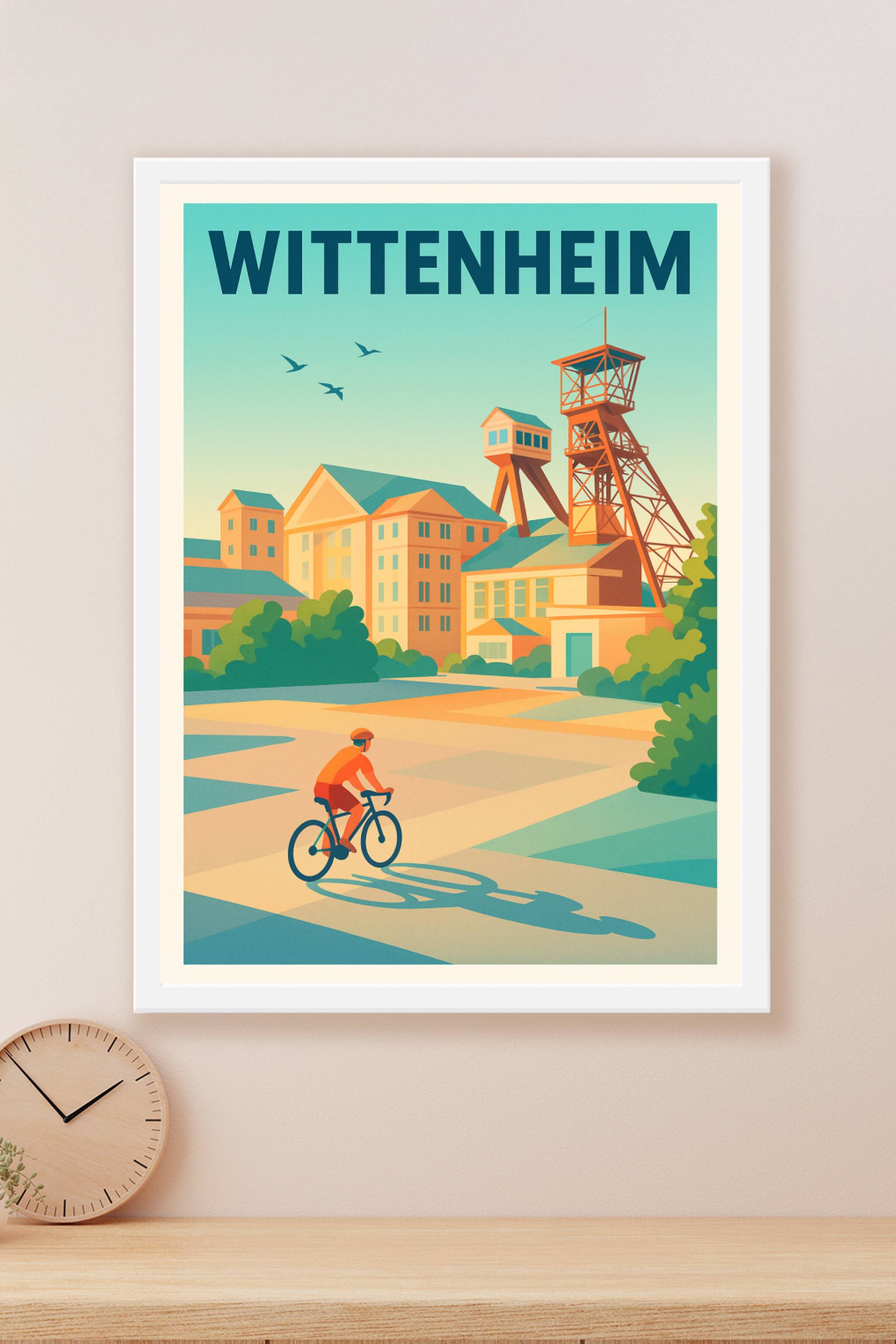 Découvrez cette affiche élégante qui capture l'ambiance unique de Wittenheim, mêlant harmonieusement son patrimoine industriel aux plaisirs simples...