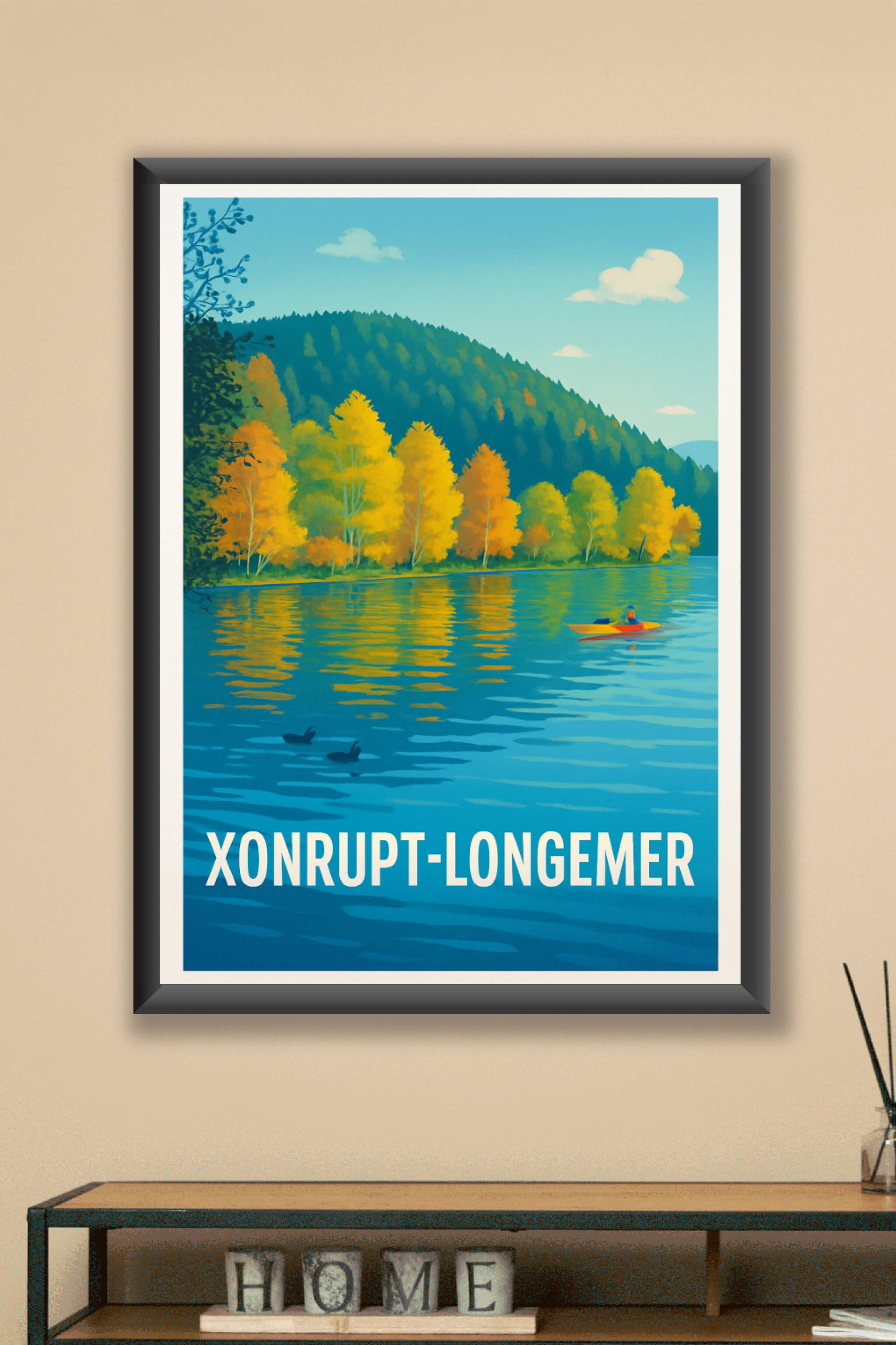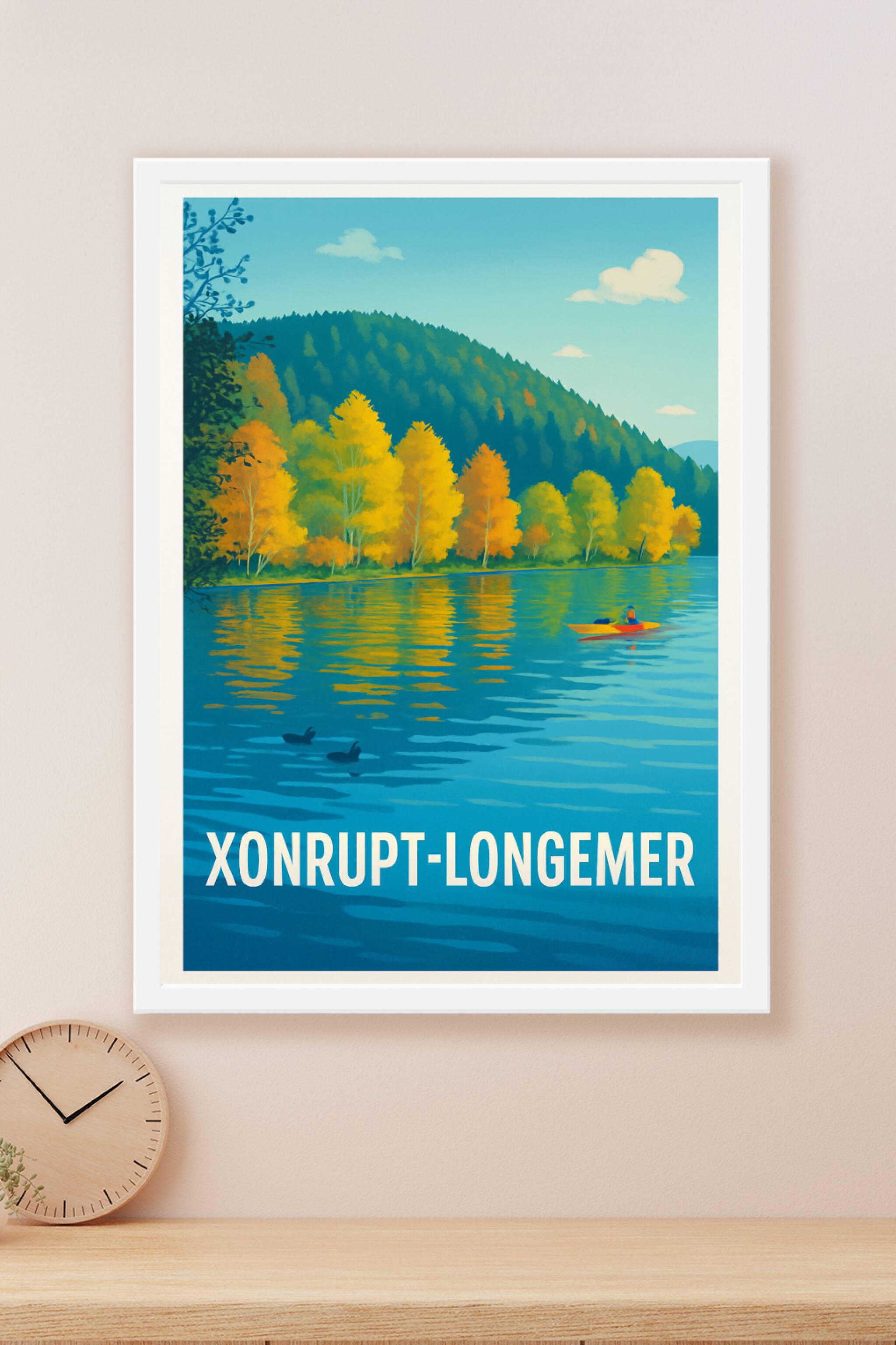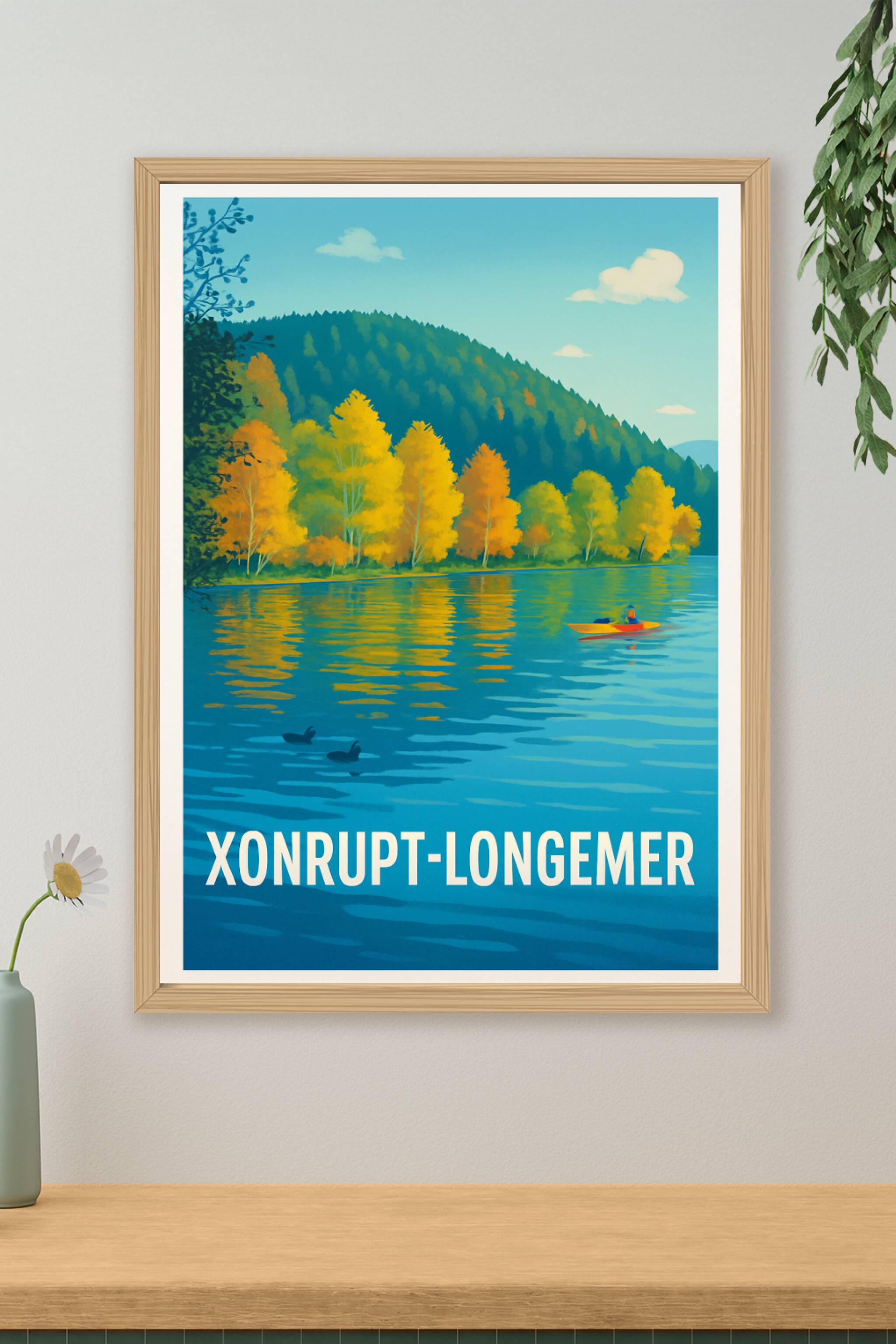 Découvrez la sérénité de Xonrupt-Longemer avec cette affiche captivante qui met en lumière les paysages apaisants du lac et des bois environnants e...
