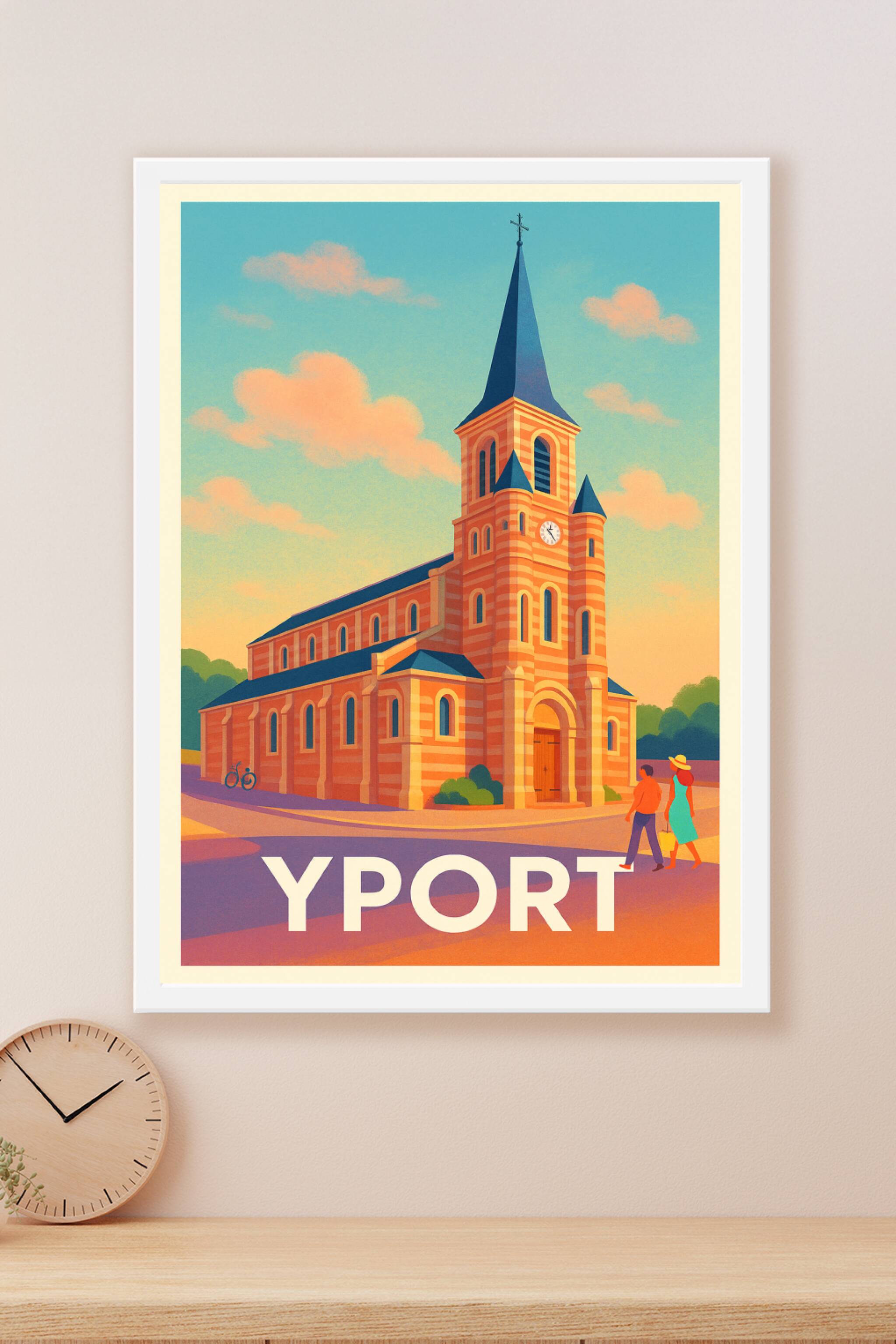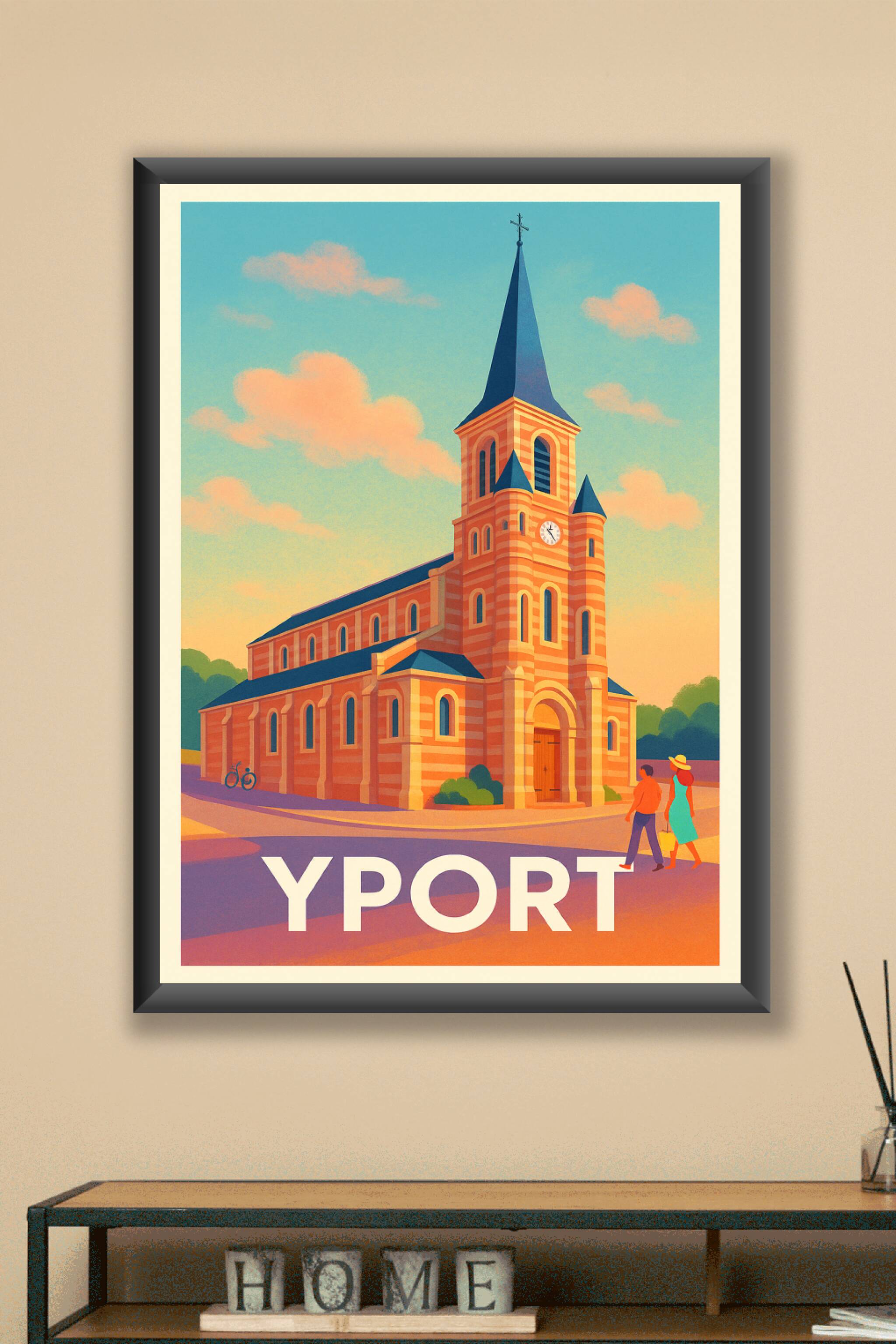 Découvrez le charme intemporel d'Yport à travers cette affiche illustrée mettant en avant l'architecture emblématique de son église aux teintes cha...
