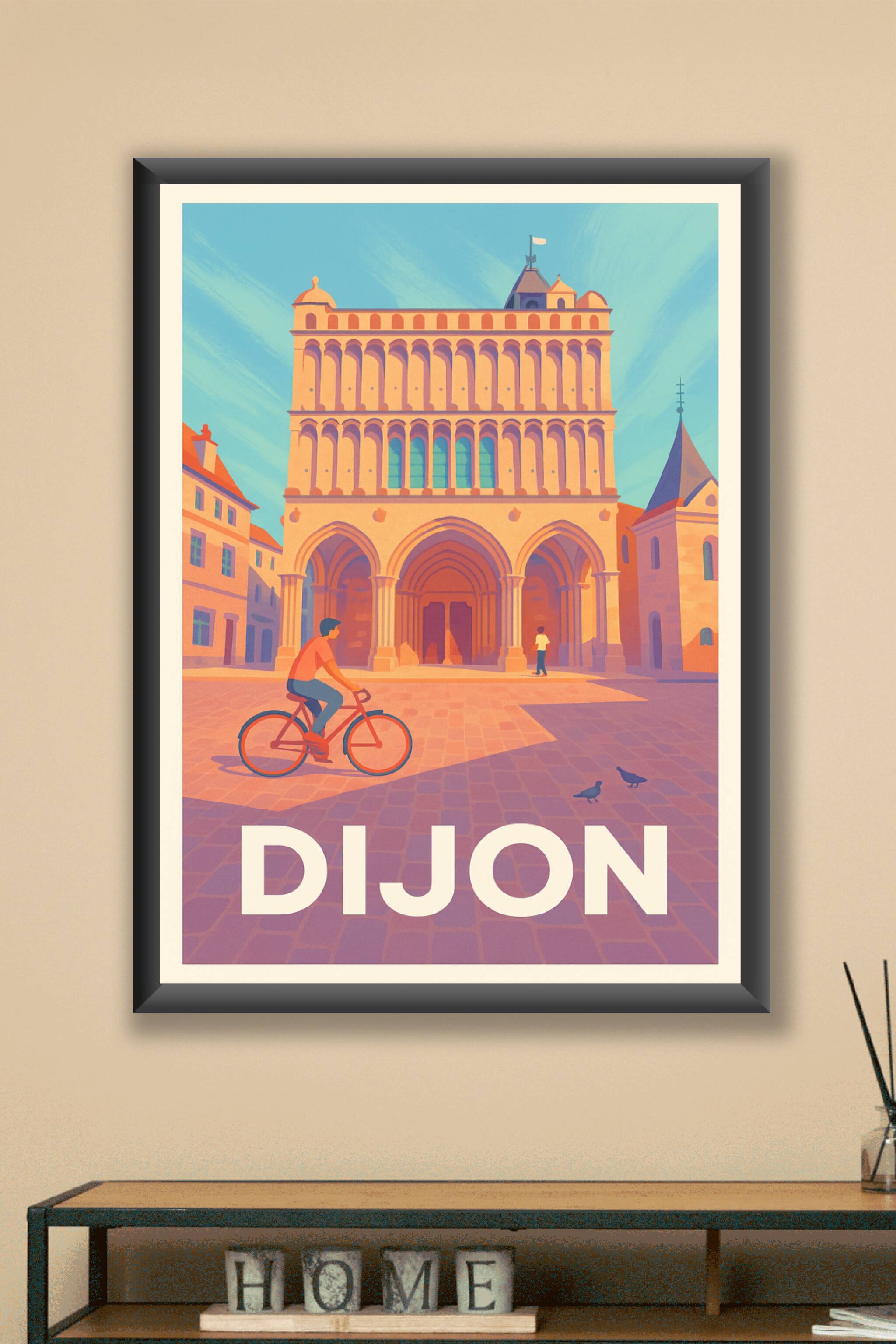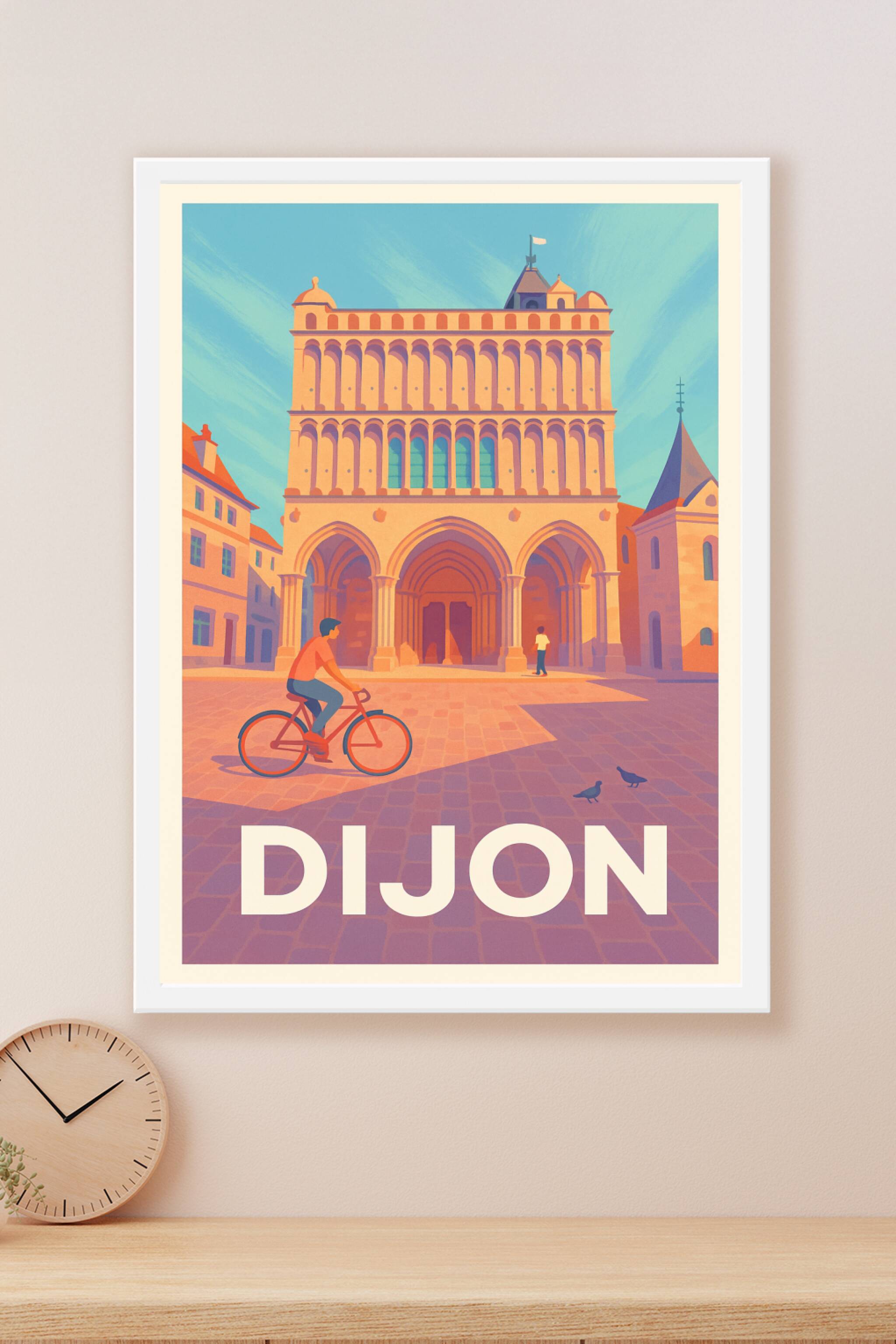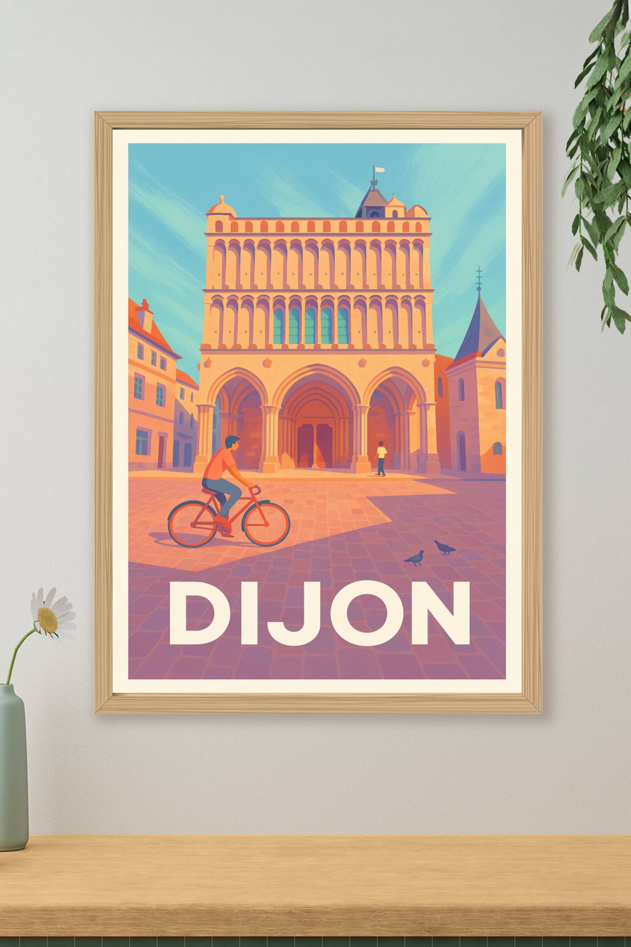 Découvrez l'élégance architecturale de Dijon avec cette affiche représentant un monument emblématique baigné dans une lumière douce et chaleureuse....