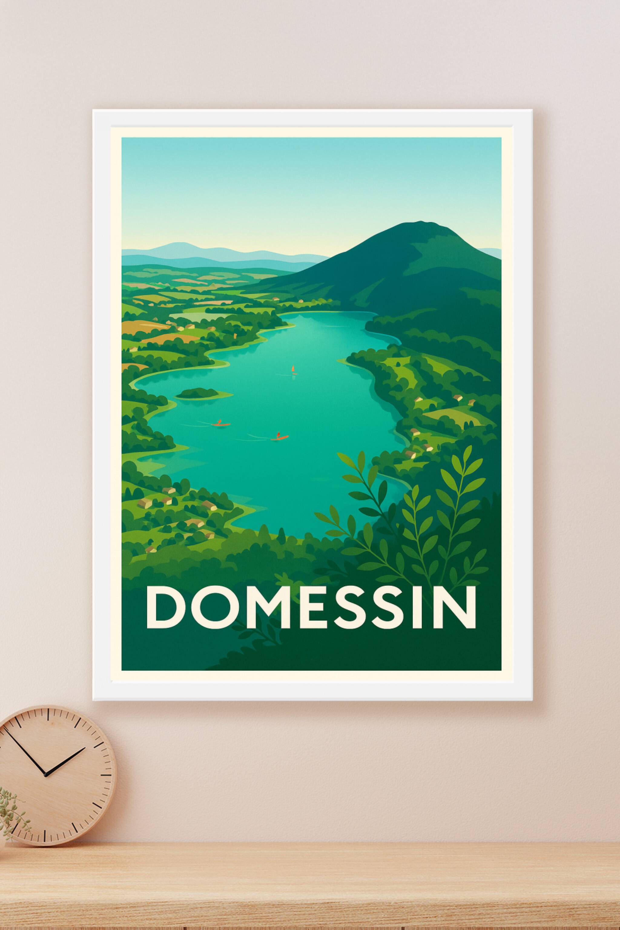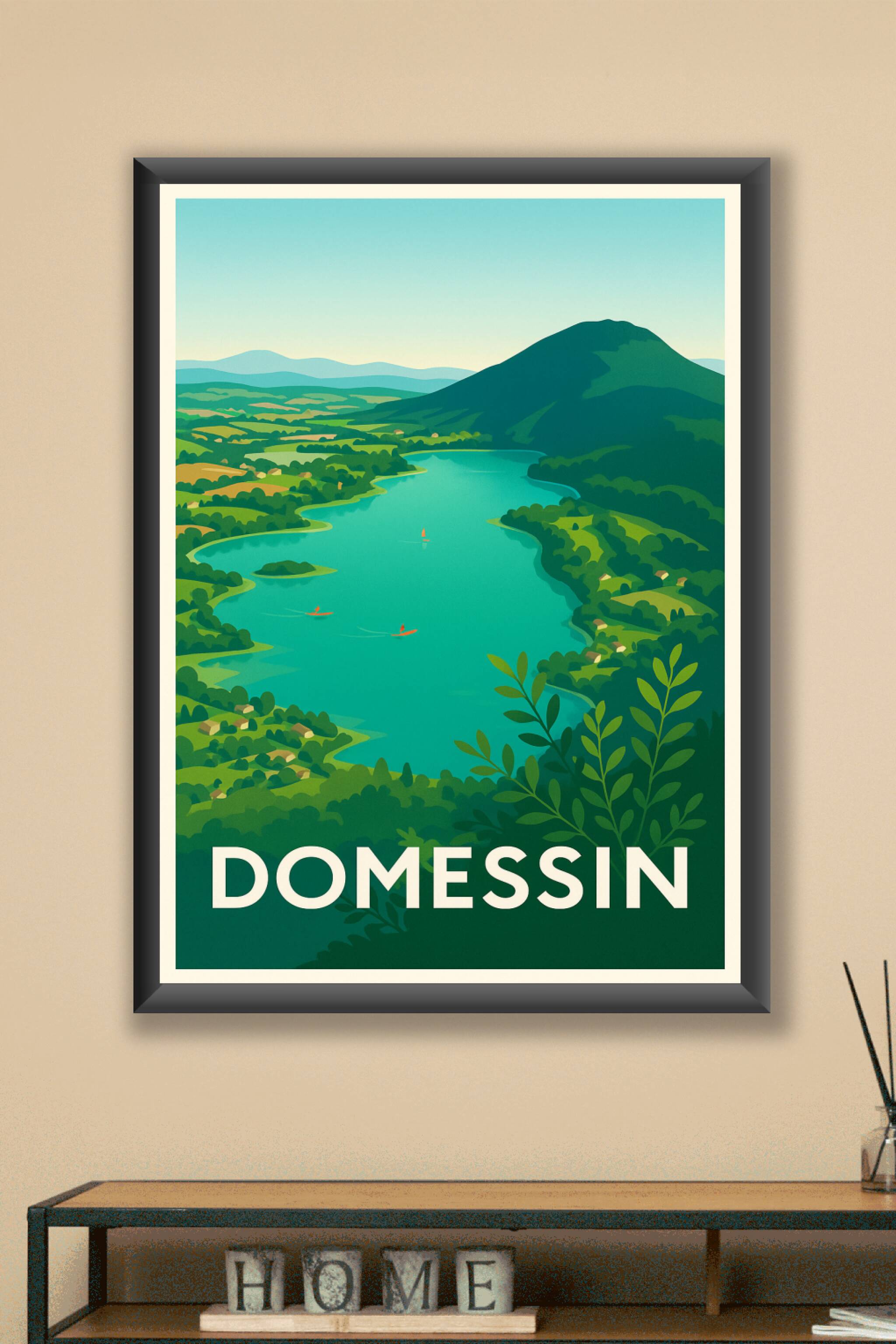 Découvrez la beauté paisible de Domessin avec cette affiche illustrée représentant un paysage naturel enchanteur entre verdure luxuriante et eau tu...